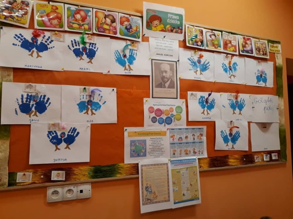 Dnia 20 listopada nasze przedszkole włączyło się w obchody 30. rocznicy uchwalenia przez ONZ Konwencji Praw Dziecka. Dzieci były ubrane w kolorze niebieskim. Wykonywaliśmy niebieską pracę plastyczną "Gołąbek pokoju". Śpiewaliśmy piosenkę "Prawa Dziecka to ważna sprawa, to nie zabawa". Oglądaliśmy prezentację multimedialną o prawach dziecka i rozmawialiśmy z dziećmi o ich prawach i możliwości jak z nich korzystać.