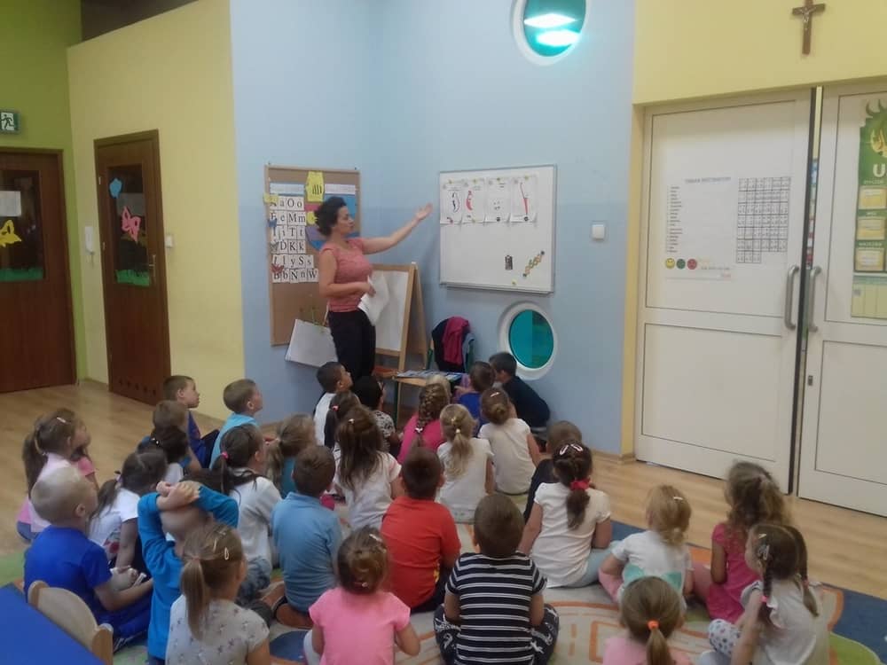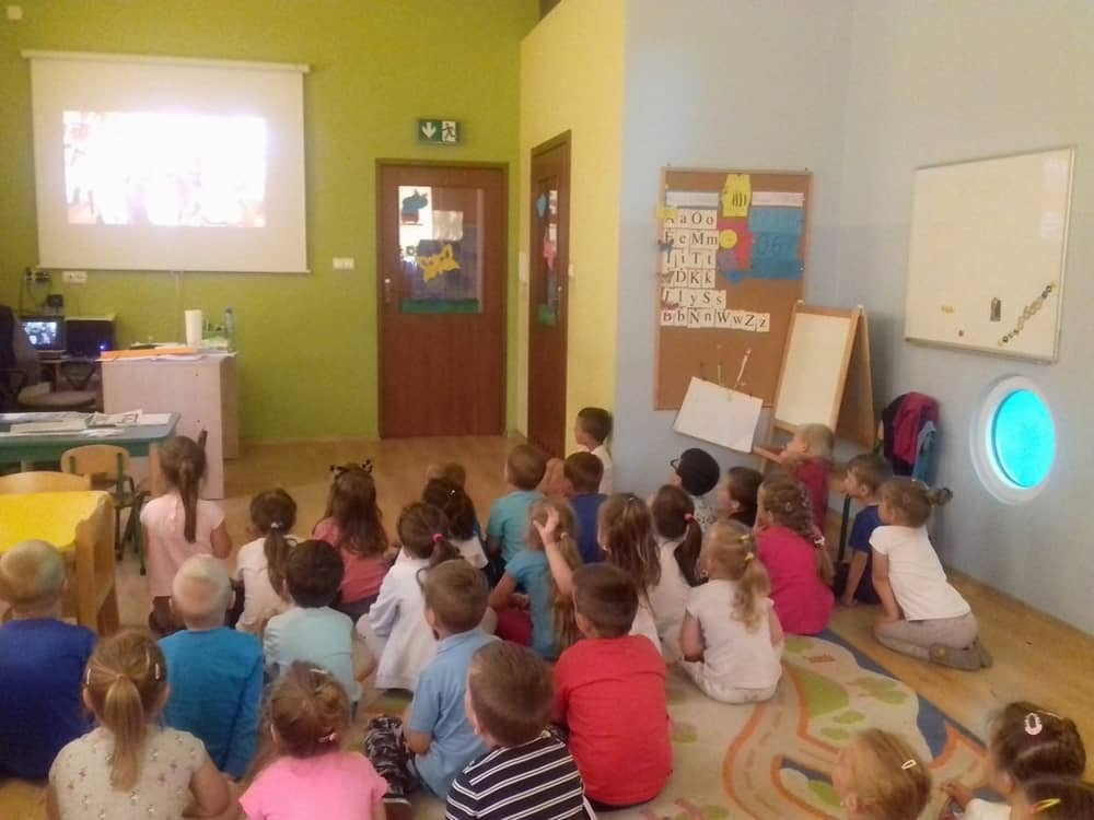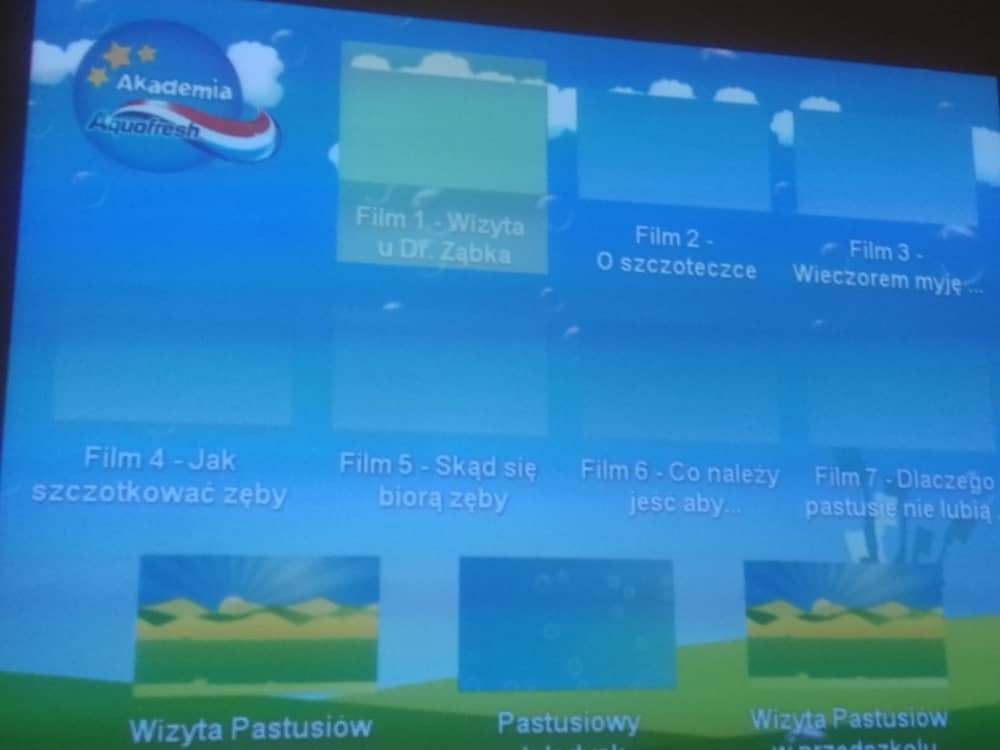 W dniu 13.06.2018 w przedszkolu zorganizowano Akcję Aquafresh, promującą zdrowy i piękny uśmiech. Dzieci przeniosły się do krainy Pastusiów i oglądnęły spektakl teatralny, zachęcający je do mycia zębów. Dzieci poznały zasady prawidłowego szczotkowania zębów i zdrowego odżywiania się, w celu zatroszczenia się o zęby i zwalczania próchnicy. Ponadto zabawa ruchowa z wykorzystaniem rekwizytów dała dzieciom mnóstwo radości i energii. Dzieci kolorowały w tym dniu postacie Pastusiów, a do domu każdy otrzymał kalendarz mycia zębów, by wspólnie z rodzicami go uzupełniać.
