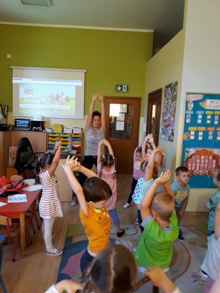 W bieżącym roku szkolnym 2019/2020 dzieci z oddziałów przedszkolnych biorą udział w Akcji Zdrowo i Sportowo. Ta wspaniała inicjatywa ma na celu nie tylko rozwijać w nich zdrowy styl życia oraz aktywność ruchową, ale także przysporzyć im wiele radości i pozytywnej energii. Właśnie w dniu 12.09.2019 zrealizowano pierwszy scenariusz „Witaj w grupie” oraz zapoznano dzieci z Akcją Zdrowo i Sportowo. Ćwiczenia i zabawy ruchowe zaktywizowały wszystkie dzieci z obu grup. To dobry początek na nowy rok.