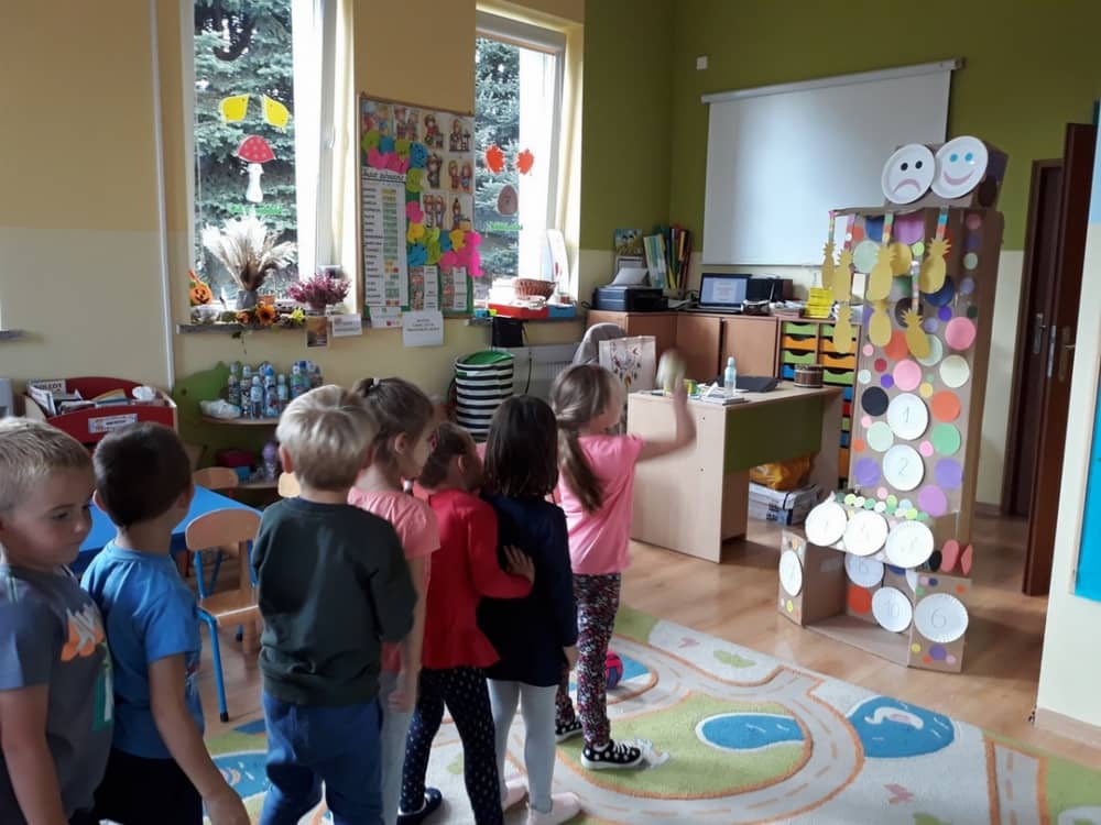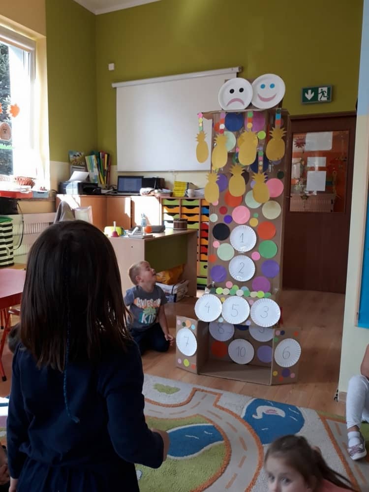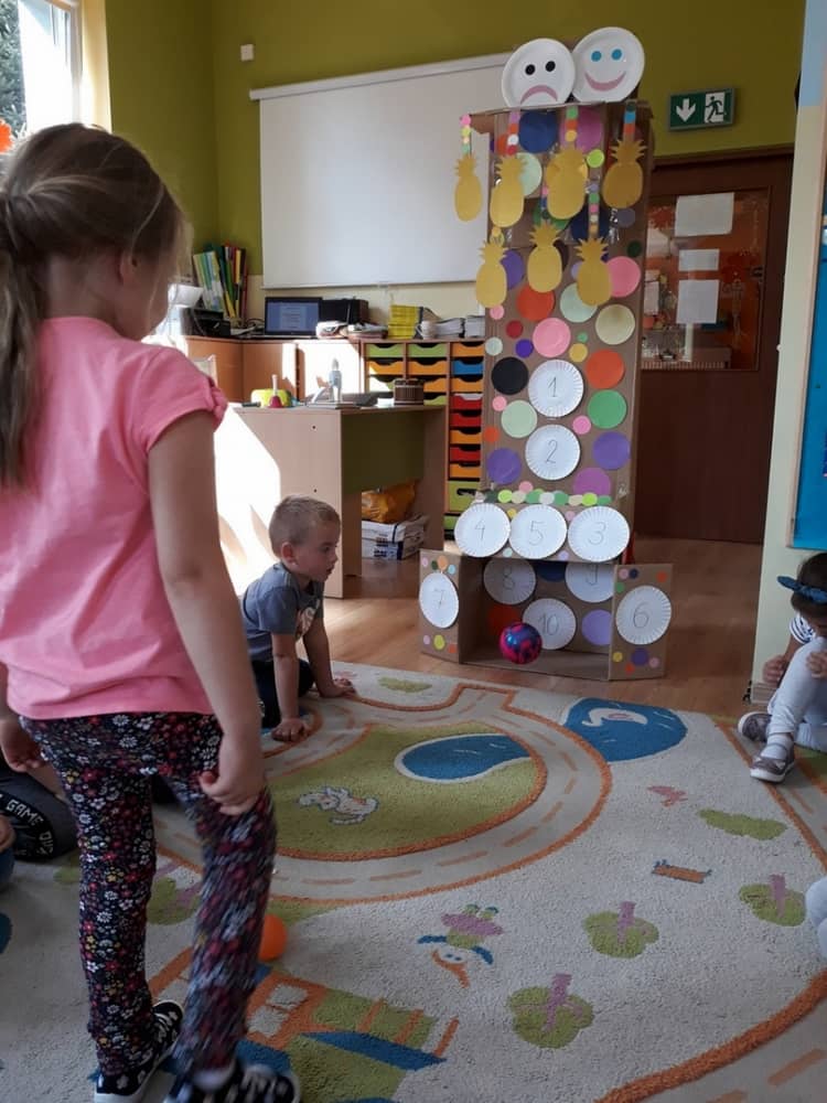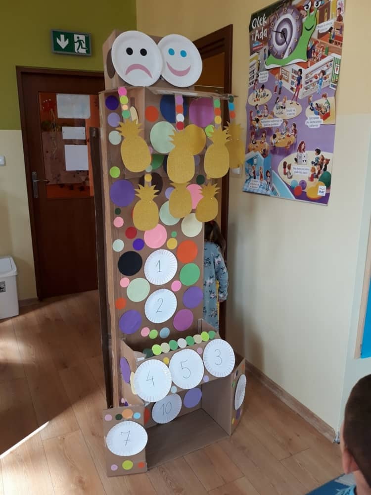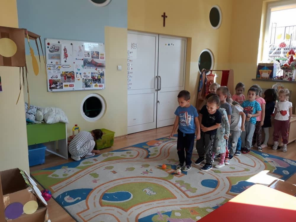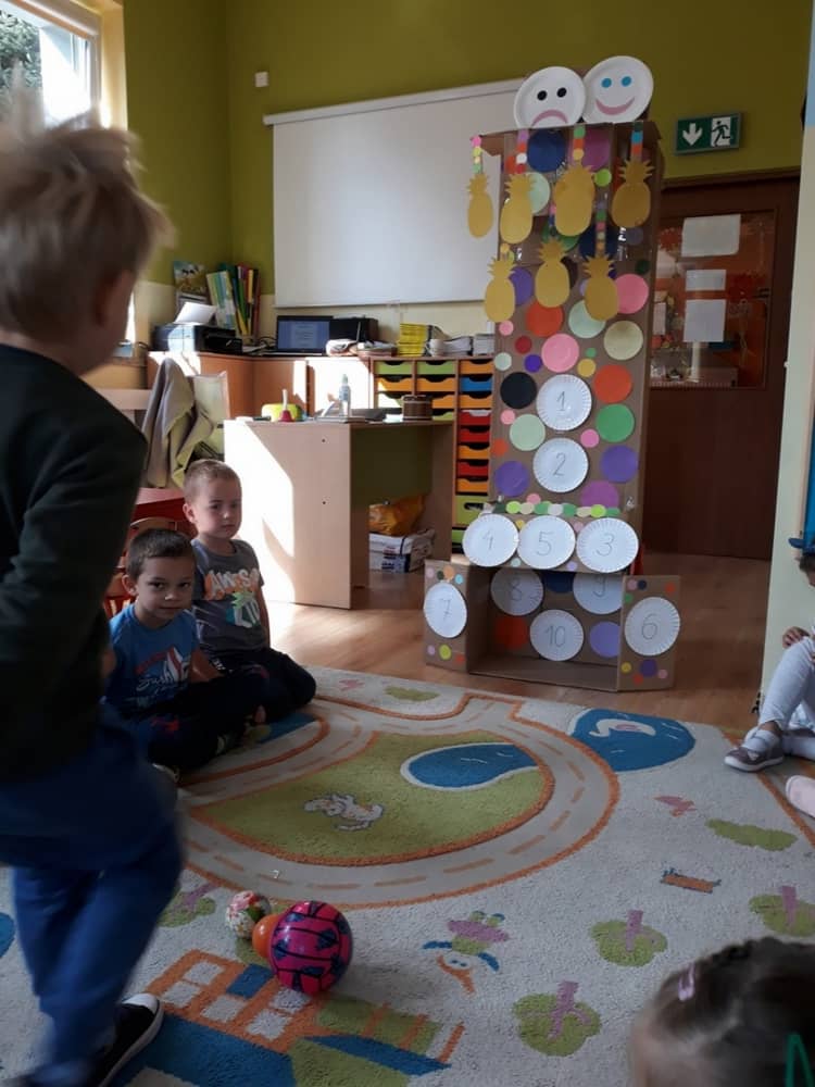 Nasze przedszkole w roku szkolnym 2019/2020 zaangażowało się w ogólnopolską Akcję „Zdrowo i sportowo”. Przystąpiło do niej 2100 przedszkoli c całej Polski. W ramach rocznego programu wzięliśmy udział w konkursie „Kreatywnie w sprawie sprzętu”. W połowie września nauczycielka Agnieszka Karcz wykonała wielofunkcyjny sprzęt sportowy, który pozwala dzieciom ćwiczyć celność rzutu, strzał na bramkę, rzut do kosza oraz dodatkowo pozwala utrwalać kolory i liczby w zakresie 10. Projekt ten został nagrodzony wyróżnieniem specjalnym w konkursie oraz nagrodą rzeczową - Piłką piankową turnball SLOW BALL ARTENGO. Równie ważne jest to, iż dzieci chętnie korzystają ze sprzętu, czerpiąc z tego wiele radości i pozytywnych, sportowych emocji. Wyróżnienie w konkursie zapewne zaowocuje udziałem w kolejnych.