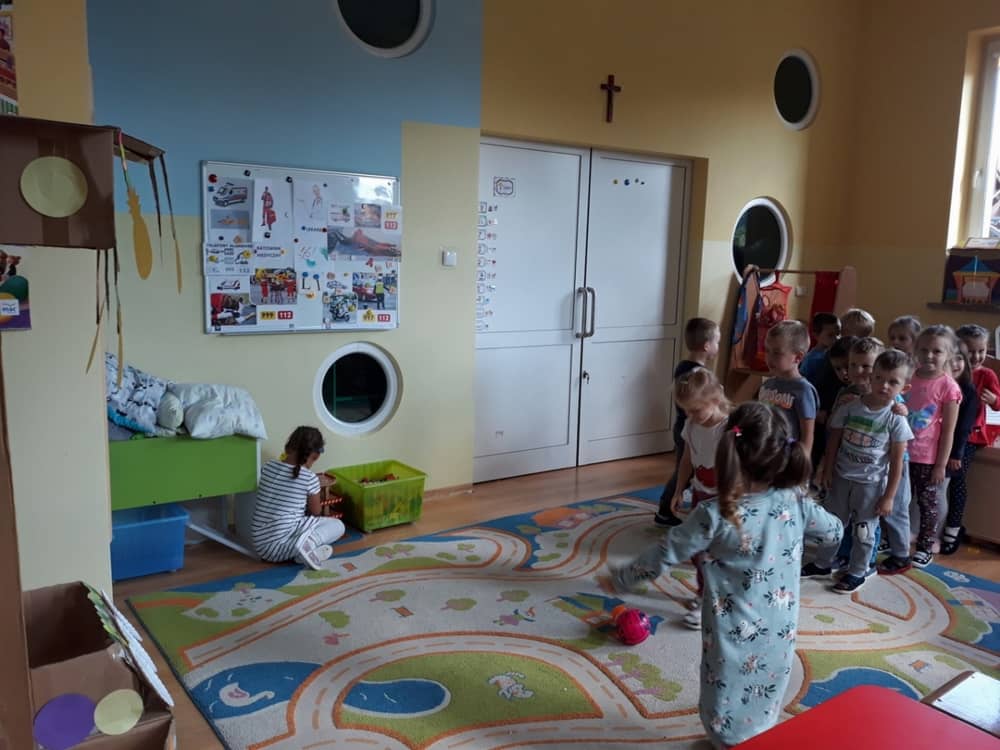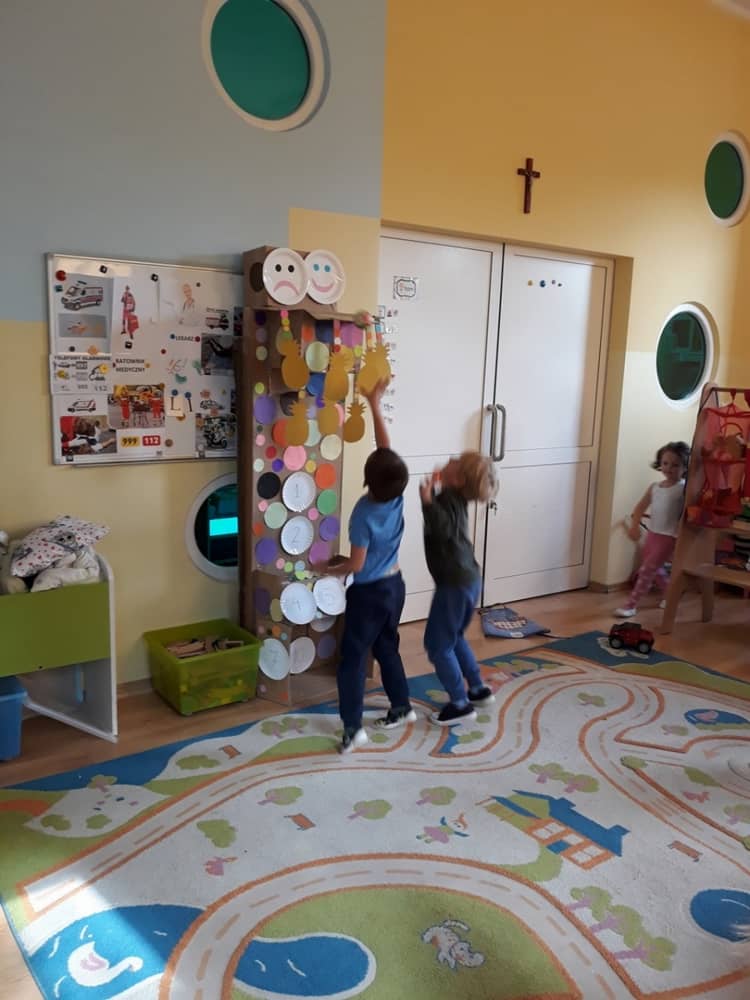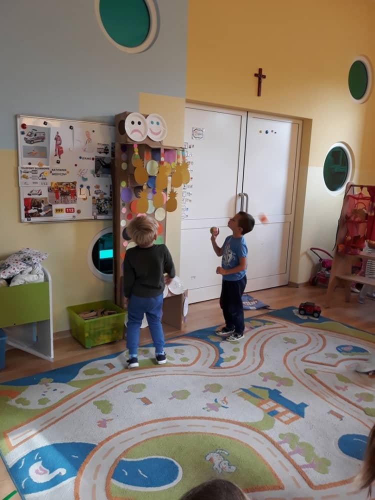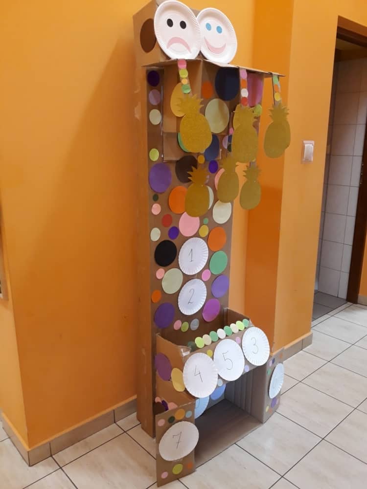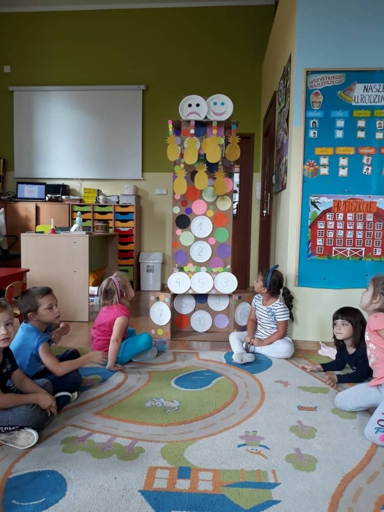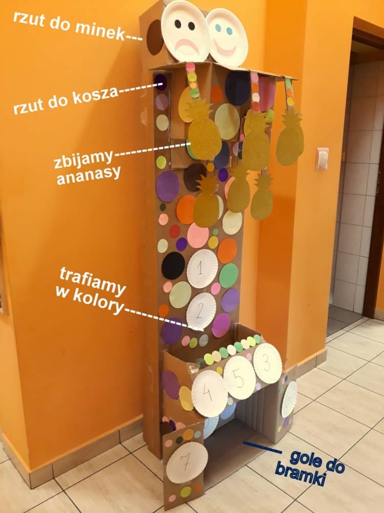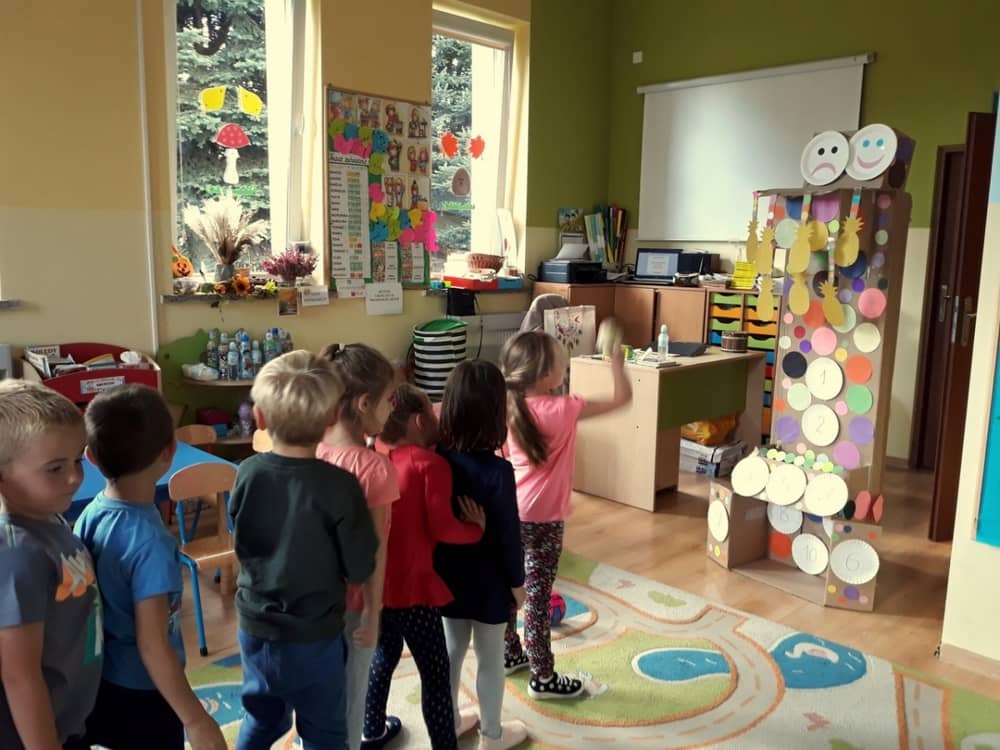 Nasze przedszkole w roku szkolnym 2019/2020 zaangażowało się w ogólnopolską Akcję „Zdrowo i sportowo”. Przystąpiło do niej 2100 przedszkoli c całej Polski. W ramach rocznego programu wzięliśmy udział w konkursie „Kreatywnie w sprawie sprzętu”. W połowie września nauczycielka Agnieszka Karcz wykonała wielofunkcyjny sprzęt sportowy, który pozwala dzieciom ćwiczyć celność rzutu, strzał na bramkę, rzut do kosza oraz dodatkowo pozwala utrwalać kolory i liczby w zakresie 10. Projekt ten został nagrodzony wyróżnieniem specjalnym w konkursie oraz nagrodą rzeczową - Piłką piankową turnball SLOW BALL ARTENGO. Równie ważne jest to, iż dzieci chętnie korzystają ze sprzętu, czerpiąc z tego wiele radości i pozytywnych, sportowych emocji. Wyróżnienie w konkursie zapewne zaowocuje udziałem w kolejnych.