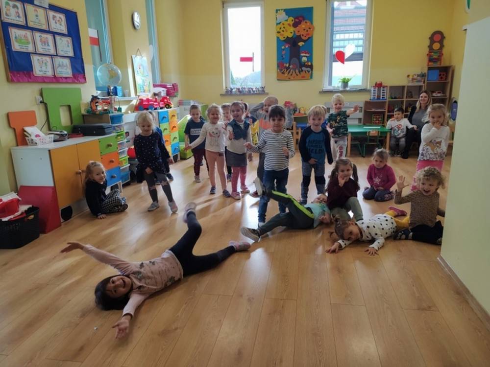 Akcja „Zdrowo i Sportowo” to już stały element w naszym przedszkolu. W dniu 06.11.2020 zrealizowaliśmy w grupie Pszczółek i Tygrysków scenariusz pt. „Legendy polskie”. Wszystkie zabawy ruchowe były jednocześnie krótką opowieścią o znanych polskich legendach. Dzieci odkryły w zabawach smoka wawelskiego, złotą kaczkę, bazyliszka i Pana Twardowskiego. Zaciekawienie i zaangażowanie dzieci było widoczne na każdym kroku.