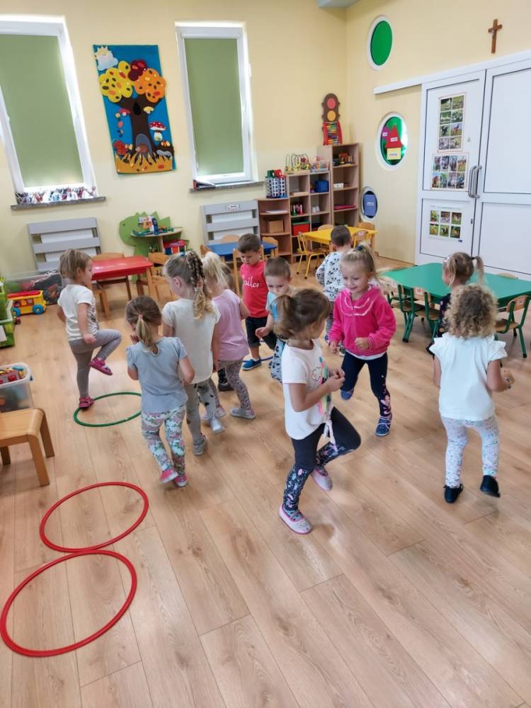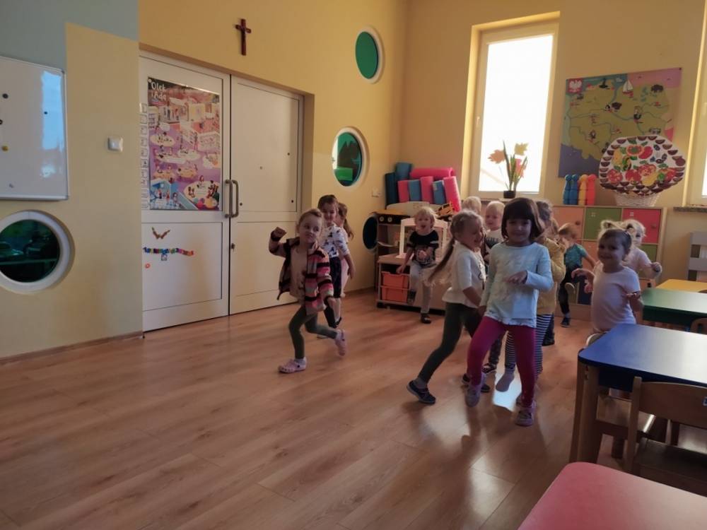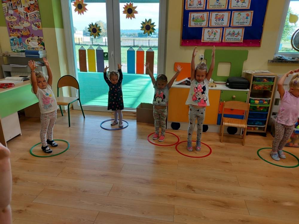 W dniu 25.09.2020 zrealizowany został drugi scenariusz zajęć ruchowych w ramach „Akcji Zdrowo i Sportowo”. Tym razem motywem przewodnim były kolory. Dzieci ćwiczyły swoją zwinność, refleks oraz precyzję. Zabawy ruchowe oprócz wyzwań dały dzieciom okazję do współpracy. Radość i zadowolenie z działania to podstawa wszelkie motywacji. Dziś o tym na pewno przekonały się wszystkie dzieci.
