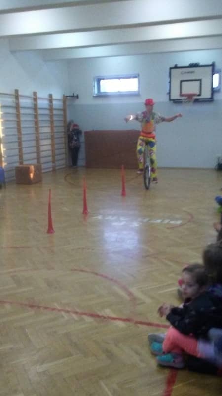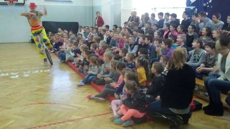 Dnia 17 stycznia naszą Szkołę odwiedził cyrk. Przedszkolaki z naszego przedszkola przez około godzinę miały okazję zapoznać się z różnymi cyrkowymi sztuczkami, akrobacjami oraz poznały bardzo śmiesznego klauna, który uatrakcyjniał cały występ. Dzieci miały okazje z bliska podziwiać tresurę ptaków, a także węża boa, ponadto dzieci mogły z pomocą cyrkowców brać czynny udział w sztuczkach i trikach. Na koniec całego przedstawienia swoje zdolności taneczne zademonstrował wielki polarny niedźwiedź, który swoim zabawnym występem rozweselił wszystkich. Za występy wszyscy artyści wraz z misiem otrzymali wielkie brawa. Radość dzieci była ogromna.