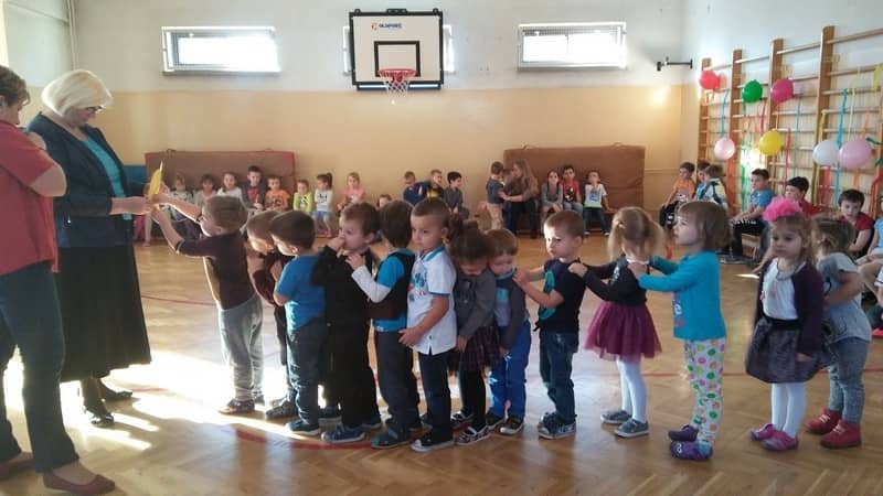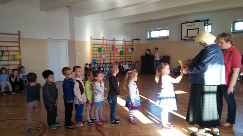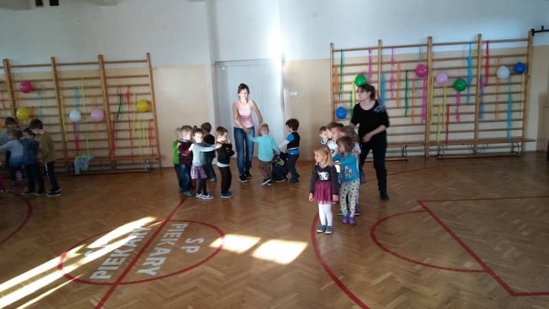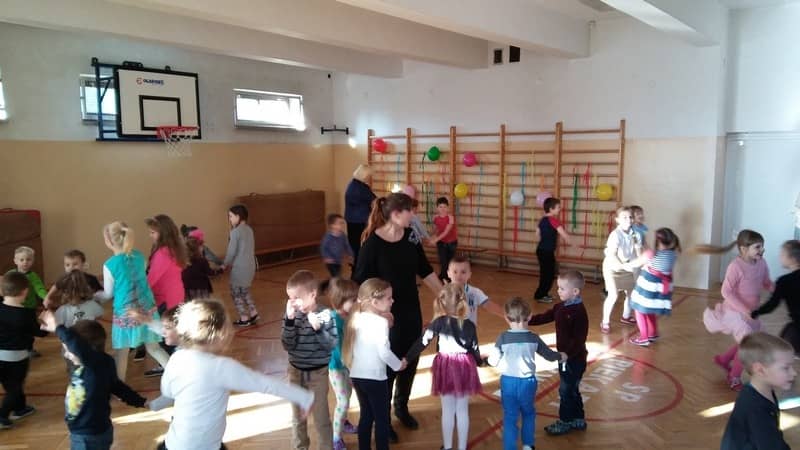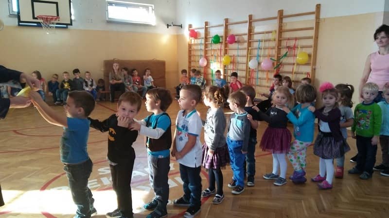 Przedszkolaczki z grupy „Tygrysków” i „Pracowitych pszczółek” zostały zaproszone przez dzieci ze Szkoły Podstawowej na zabawę Andrzejkową. Wszyscy razem świetnie się bawili.