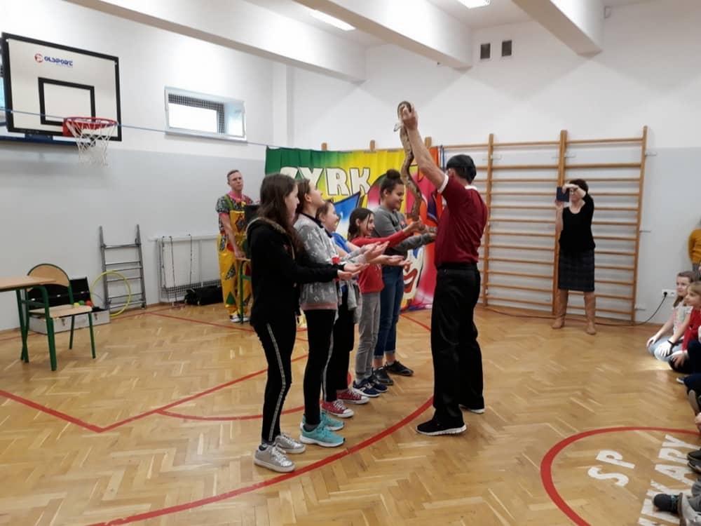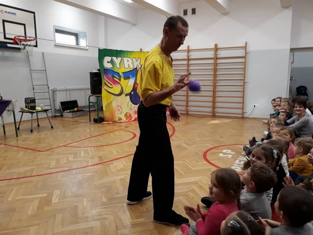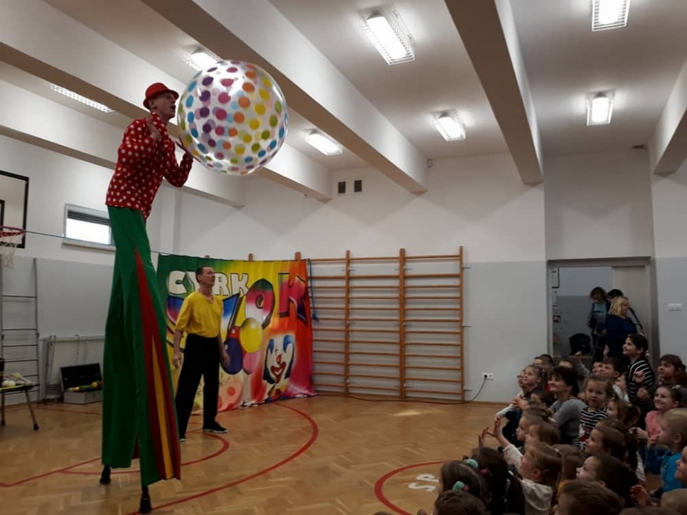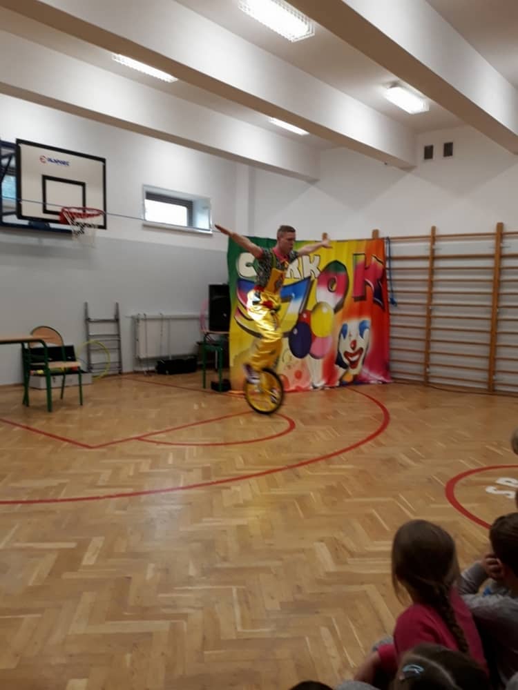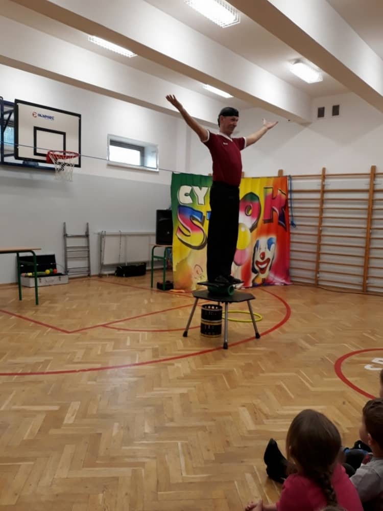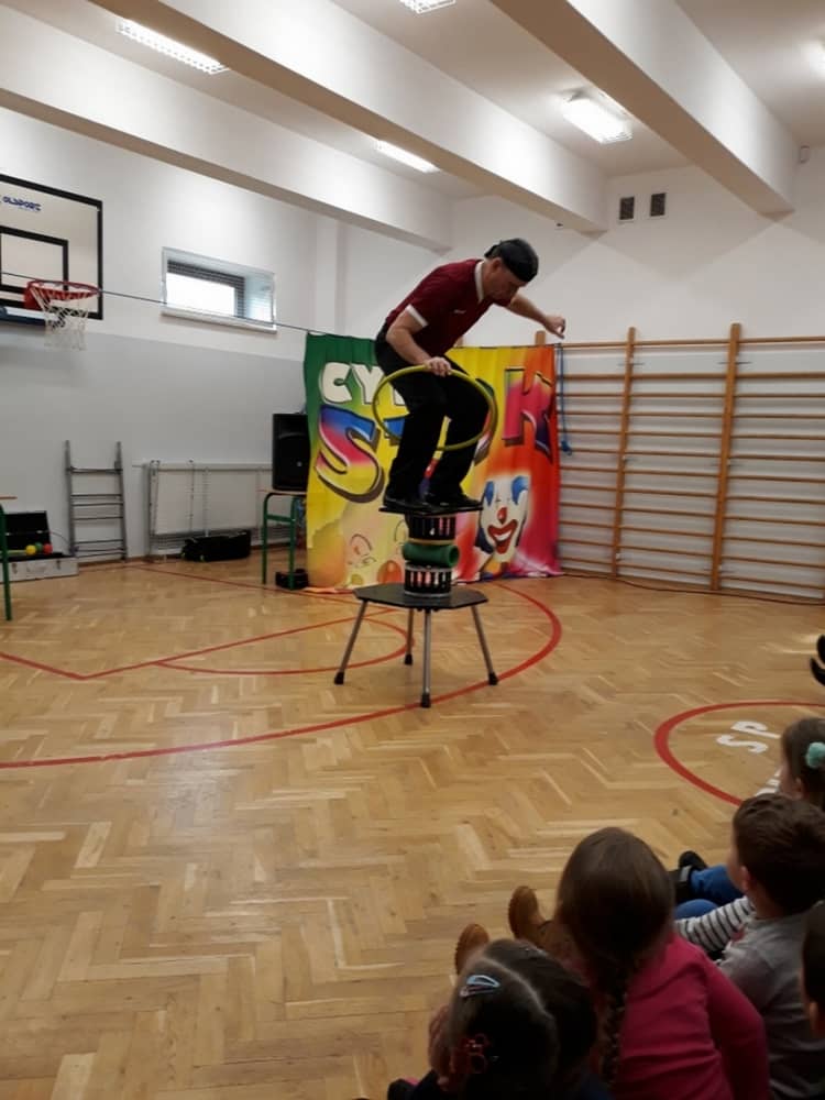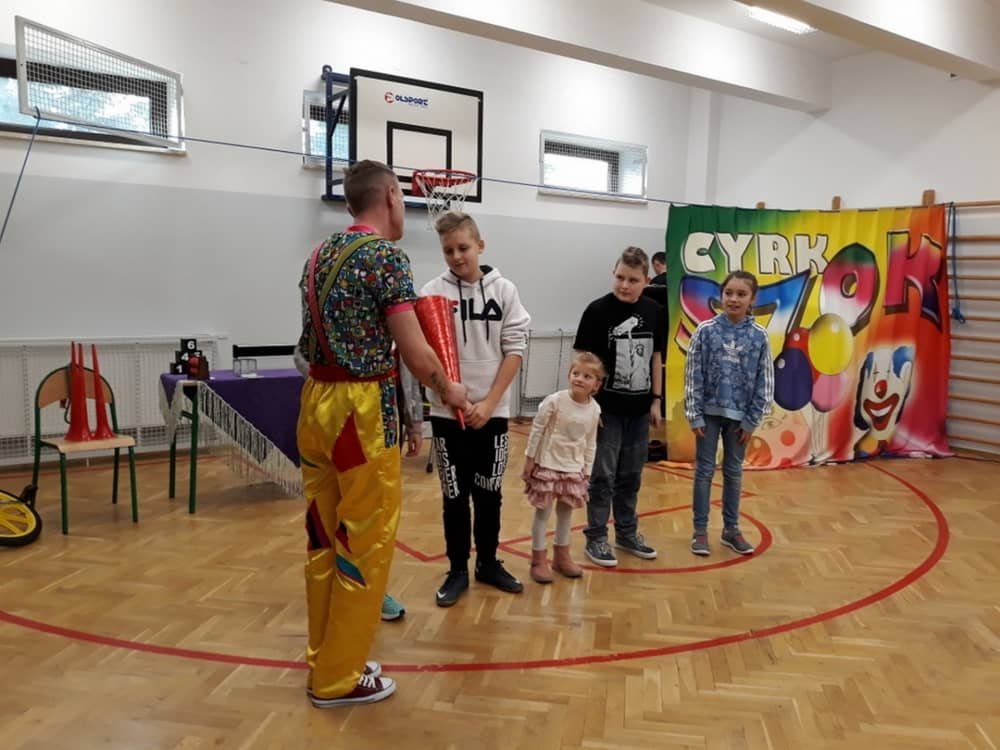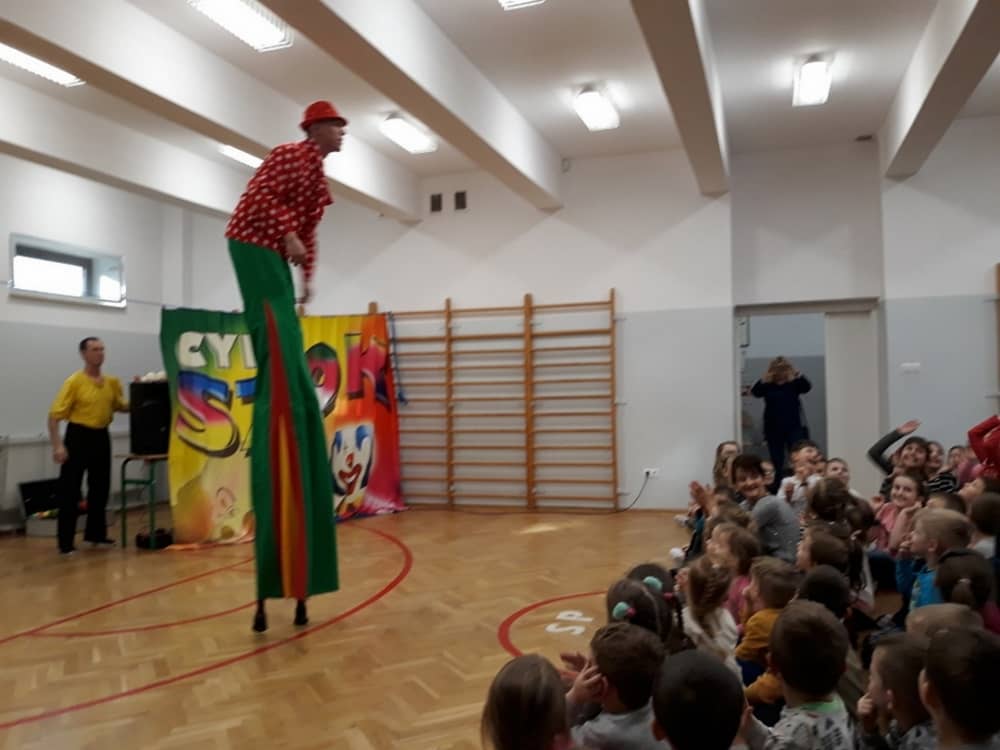 W dniu 13.01.2020 w naszej szkole wspaniałego pokazu i wiele radości dostarczył nam Cyrk Szok. Zaprezentowane umiejętności akrobatyczne, sztuczki iluzjonistyczne oraz szereg zabawnych aktorskich scen, nagradzane były wielkimi brawami. Wiele dzieci zaangażowało się w wydarzenie i wystąpiło przed widownią. Były wśród nich odważne przedszkolaki. Śmiech, radość i uznanie dla umiejętności cyrkowców, towarzyszył nam przez cały występ.