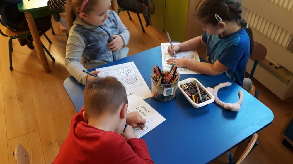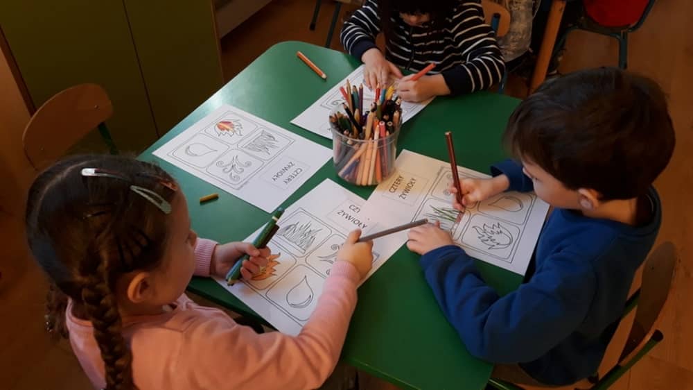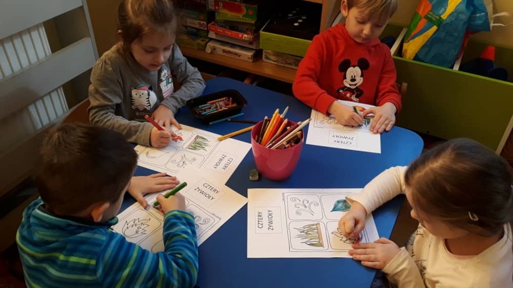 W dniu 05.03.2020 odbyły się kolejne zajęcia z serii „Przyroda to przygoda”. Tym razem dzieci odkrywały cztery główne żywioły ziemi- wodę, powietrze, ogień i ziemię. Inspiracją do zgłębienia tej tematyki był wiersz Agnieszki Karcz zatytułowany „Cztery żywioły”. Po rozmowie na temat treści utworu, dzieci obejrzały pokaz multimedialny. Dzięki niemu odkryły znaczenie żywiołów dla życia człowieka. Następnie w ramach zabawy ruchowej wcieliły się w cztery żywioły, które panują na planecie. Zwieńczeniem zajęć była praca plastyczna.