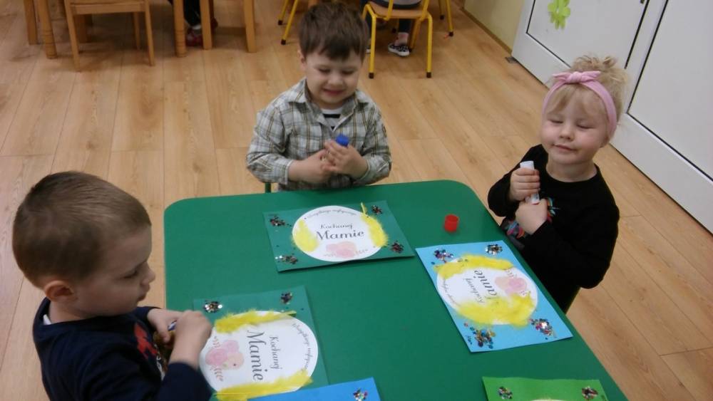 W dniu 26 maja przedszkolaki obchodziły Dzień Mamy. Z tej okazji nauczyły się wiersza pt. ,,Kochana Mamo” oraz wykonały samodzielnie prace plastyczne dedykowane swoim Mamusiom. Na koniec uroczyście zaśpiewały piosenkę pt. ,,Jesteś Mamo skarbem mym”, podkreślając w ten sposób, jak bardzo kochają swoje Mamy. Świętowanie zakończyło się wspólnymi zdjęciami i prezentacją wykonanych przez dzieci upominków.