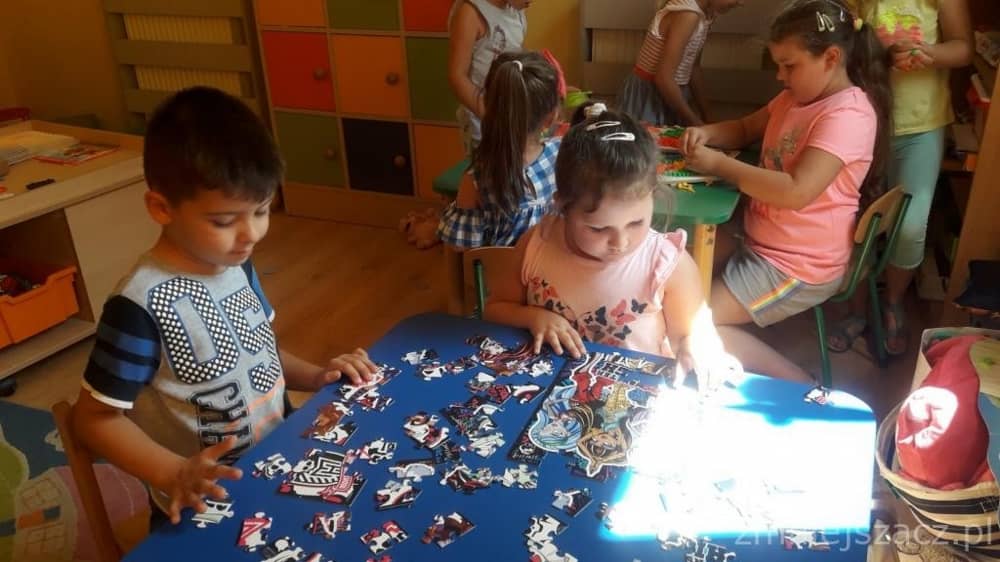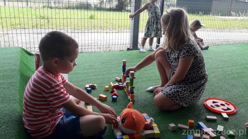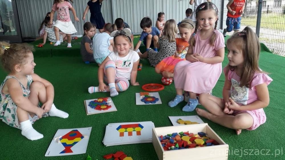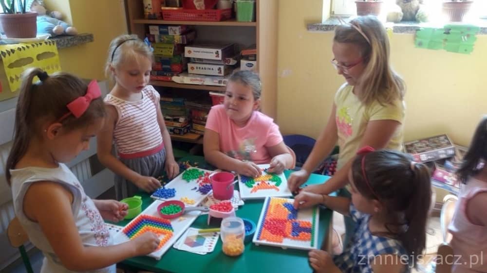 Dzieci bardzo licznie uczęszczały w wakacje do przedszkola. Tematyką drugiej połowy lipca były kolory. Towarzyszyła nam piosenka pt: „Śpiewaj razem z nami – kolory”. Czytaliśmy „Inspirujące bajki” Agnieszki Antosiewicz i inne opowieści związane z kolorem danego dnia. Mieliśmy dzień: czerwony, niebieski, zielony, żółty, biały, różowy, czarny, fioletowy, brązowy, złoty i pomarańczowy. Dzieci wykonywały prace plastyczne w danym kolorze. Każde dziecko było zainteresowane proponowanymi zabawami.