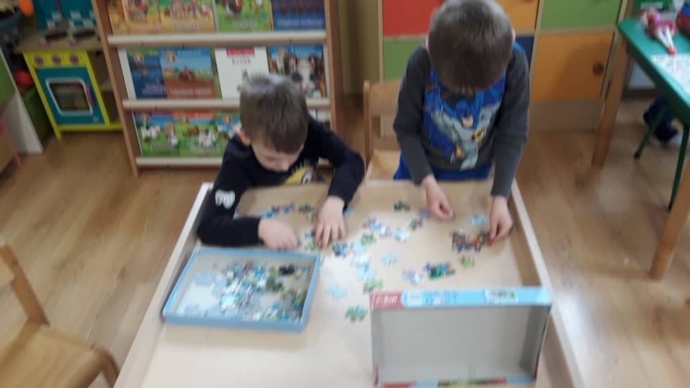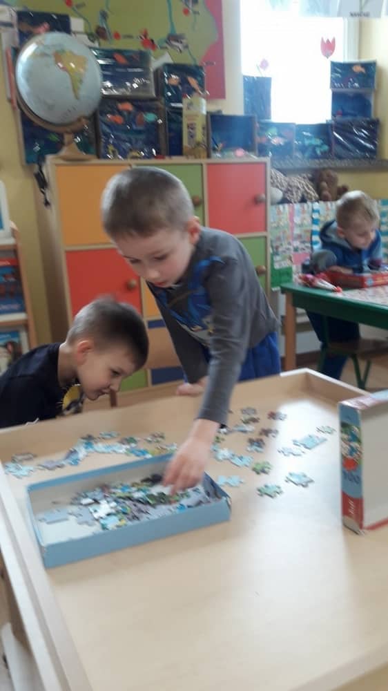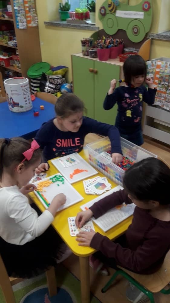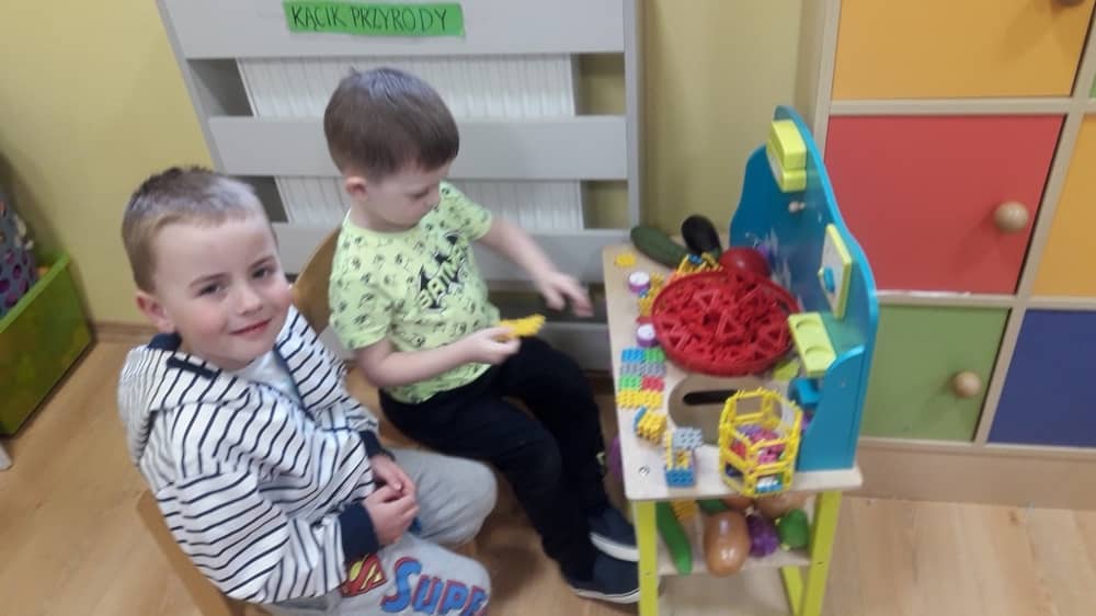 W naszym przedszkolu nie brakuje ciekawych zabawek, które przyciągną uwagę małego odkrywcy. U nas nikt się nie nudzi. Dzieci wykonują prace plastyczne, uczą sie gry na keyboardzie, układają koraliki pyssli, puzzle, nawlekanki. Ciekawym miejscem jest kącik języka angielskiego, gdzie bawimy się we 'Fruit shop' - kupujemy i sprzedajemy owoce. Dzieci lubią również zabawy w domek, gotowanie, układanie torów kolejowych i gry planszowe. Każde dziecko znajdzie coś dla siebie.