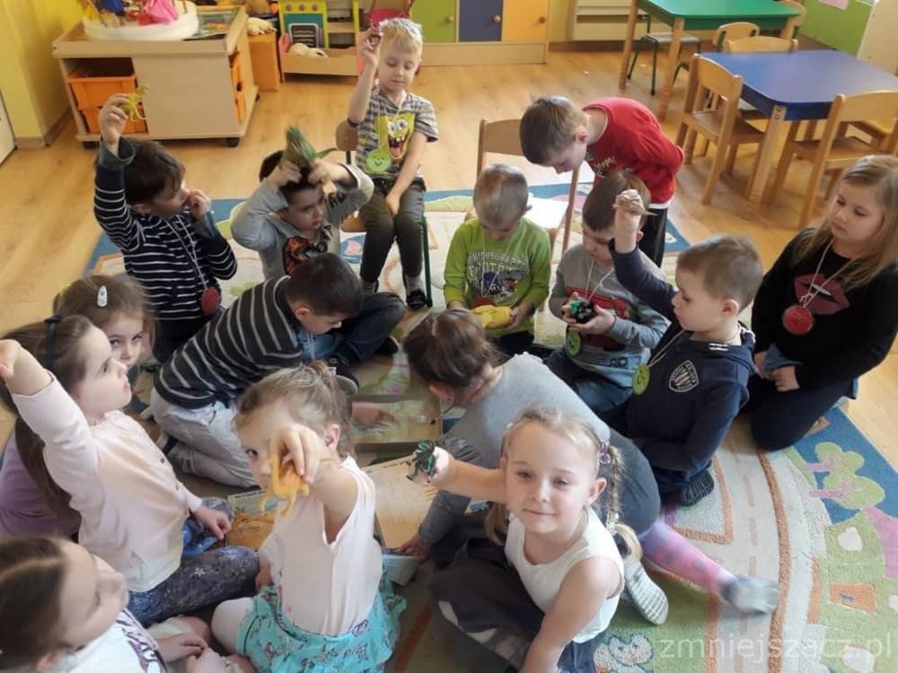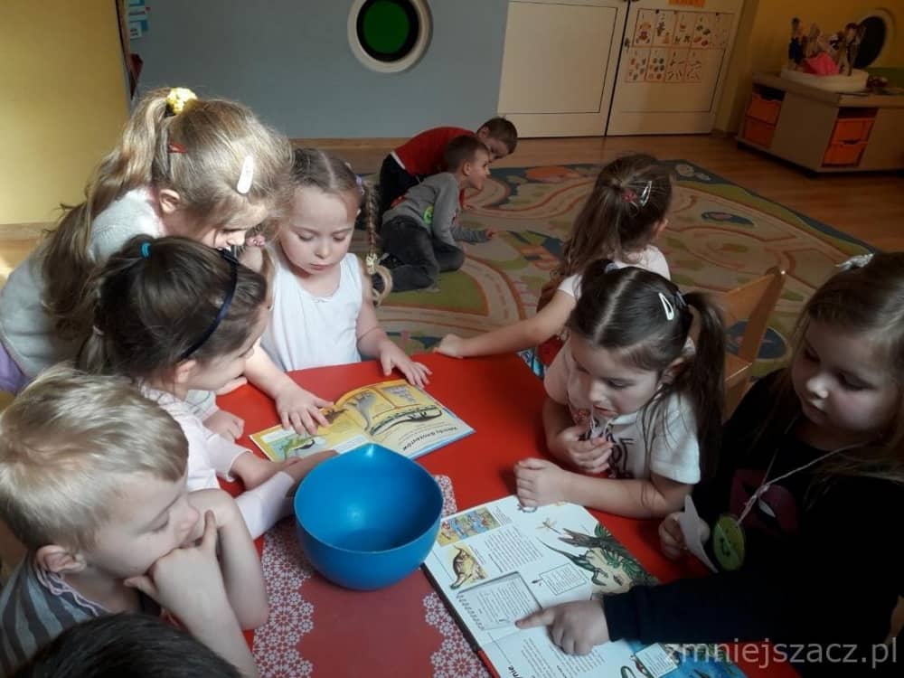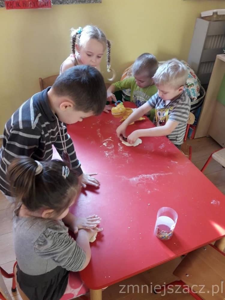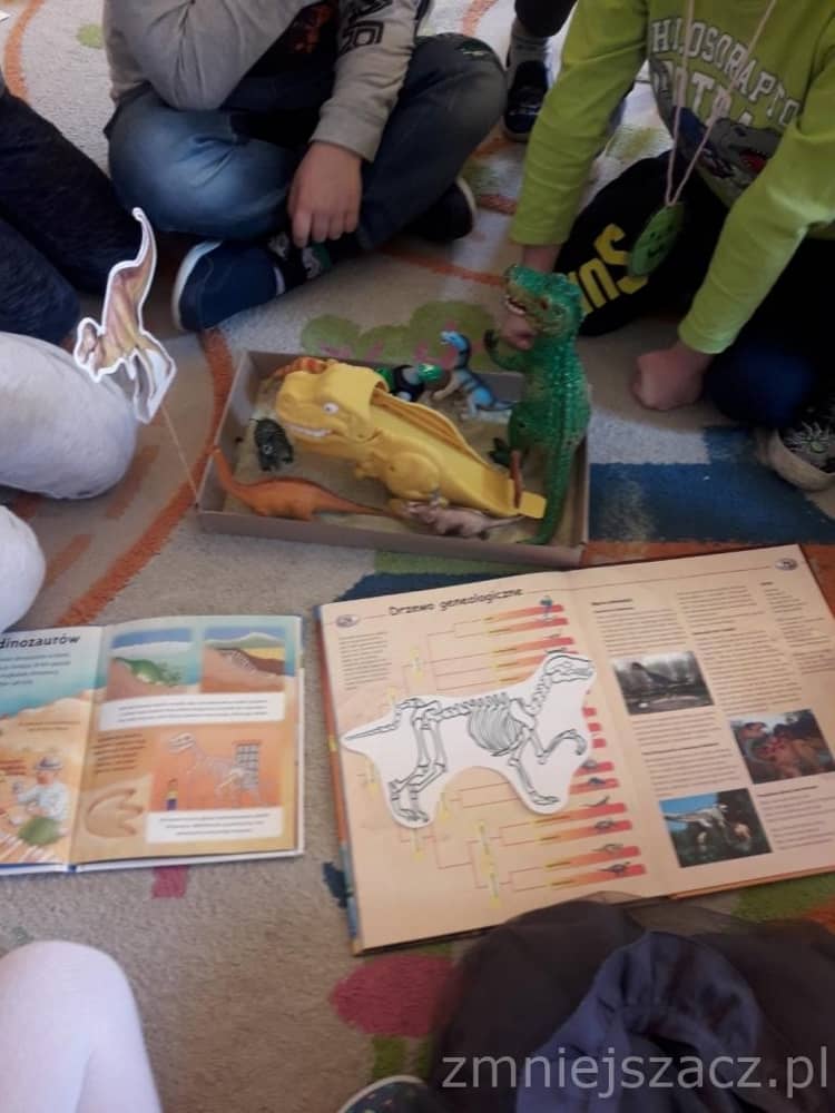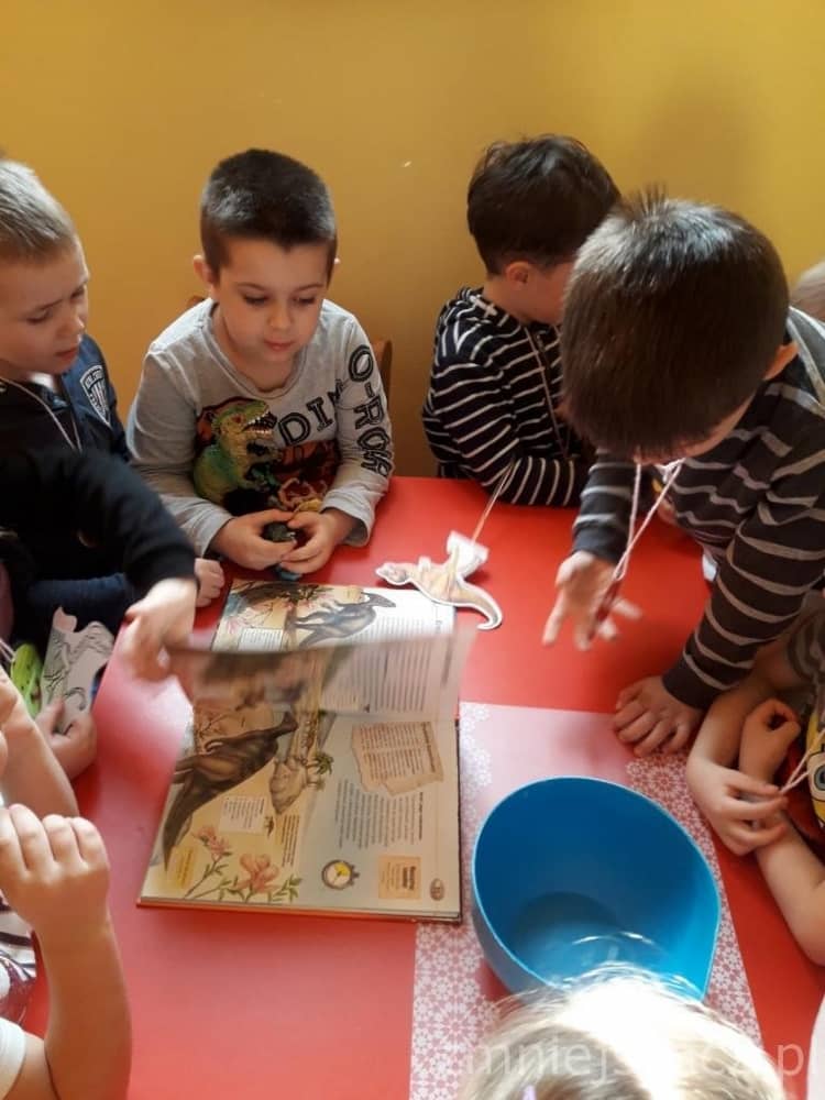 Dnia 26 lutego obchodziliśmy Dzień Dinozaura. Choć dinozaury dawno już wyginęły to nie przestają fascynować ludzi w tym w sposób szczególny dzieci z naszego przedszkola. Święto tych prehistorycznych stworzeń można spędzić na wiele sposobów – poczytać o ich zwyczajach albo oglądnąć kolekcje miniaturowych dinozaurów. Nasi przedszkolacy znają wiele ciekawostek o życiu dinozaurów, ich nazwach, wielkości, o tym gdzie mieszkają i czym się żywią. Dzieci bawiły się w paleontologa, odkrywając szkielet dinozaura ukryty w piasku. Następnie lepiły z masy solnej i odbijały różne ślady z tamtych czasów. Na koniec słuchały piosenki o 10 dinozaurach.
