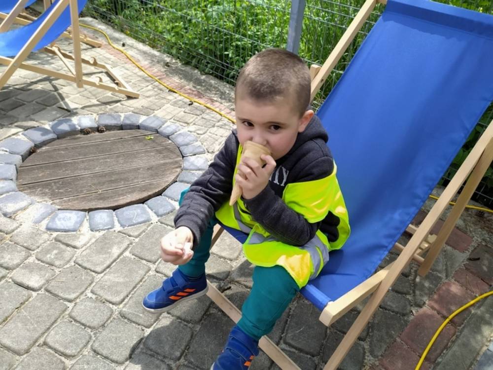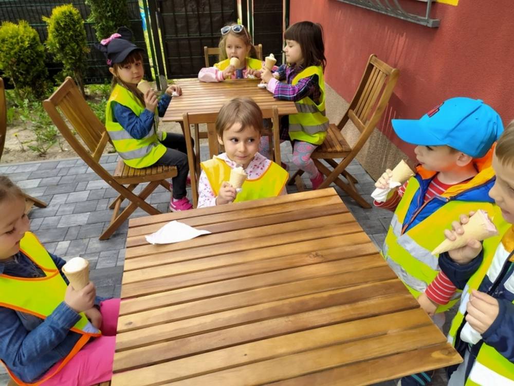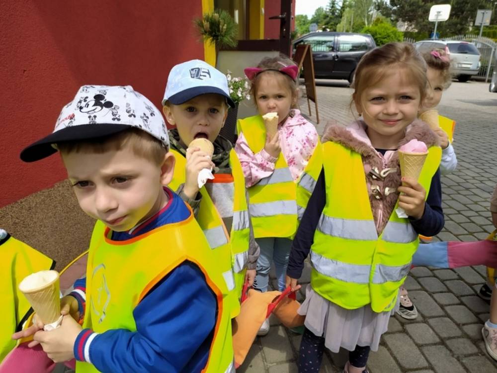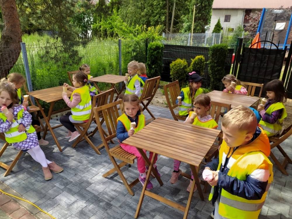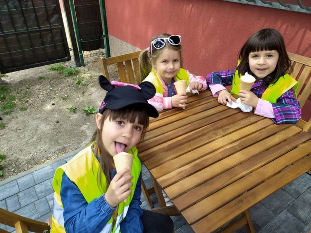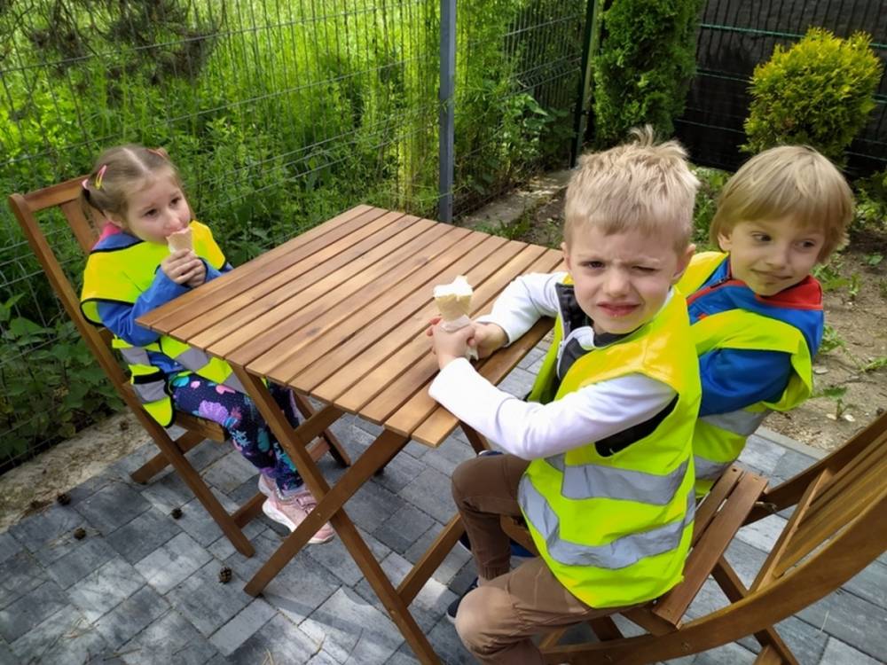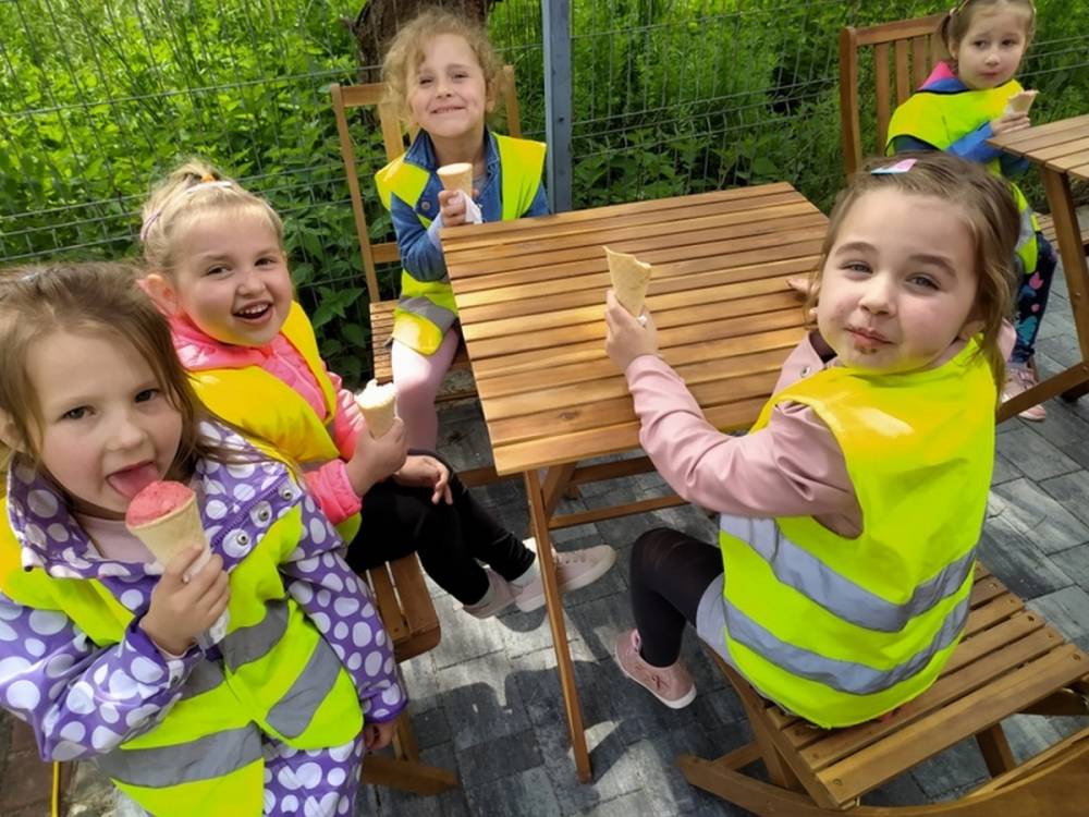 Dzień Dziecka w naszym przedszkolu trwał naprawdę długo. Już kilka dni przed 1 czerwca dzieci otrzymały bardzo fajne zabawki tarasowe, które przez kolejne dni umilały im czas. W Dniu swojego święta dzieci smakowały pysznych batoników zafundowanych przez Radę Rodziców oraz udały się z nauczycielkami na wycieczkę do lodziarni. Oprócz smacznych lodów czekała na nich jeszcze jedna atrakcja- „dmuchaniec”. Niespodzianka sprawiła dzieciom dużo radości. Jak same stwierdziły: „To nie był fajny dzień, to był super dzień”.