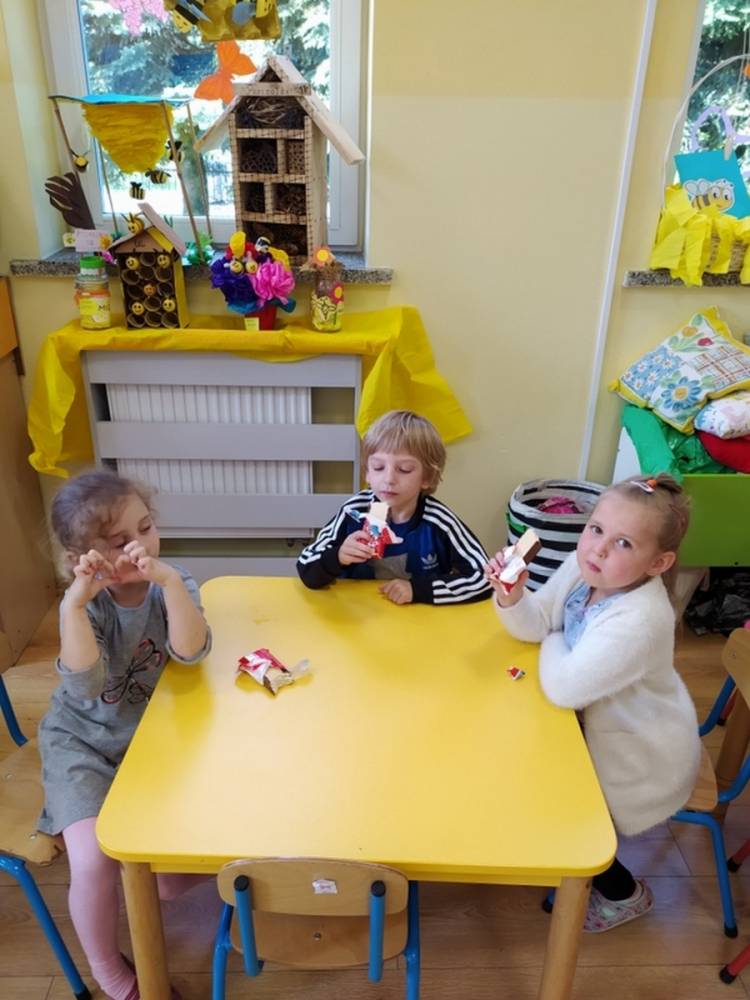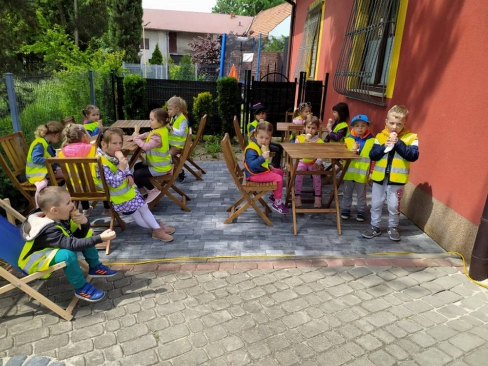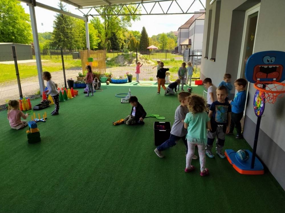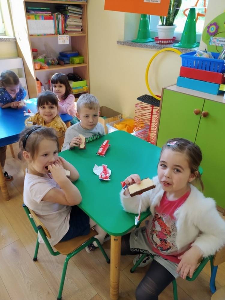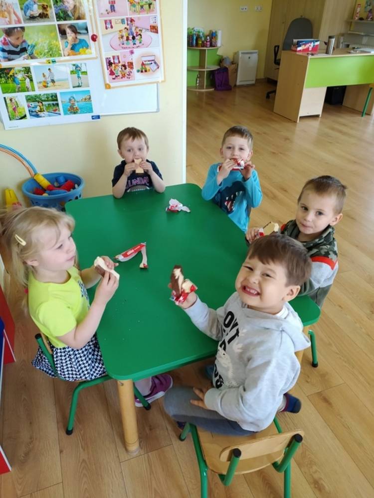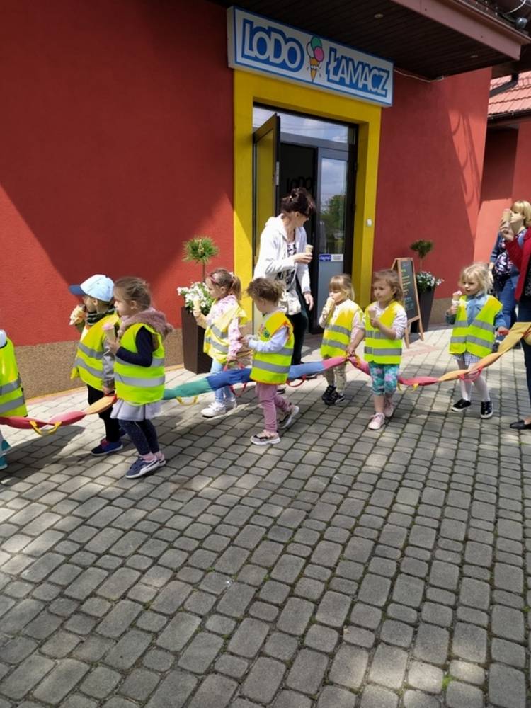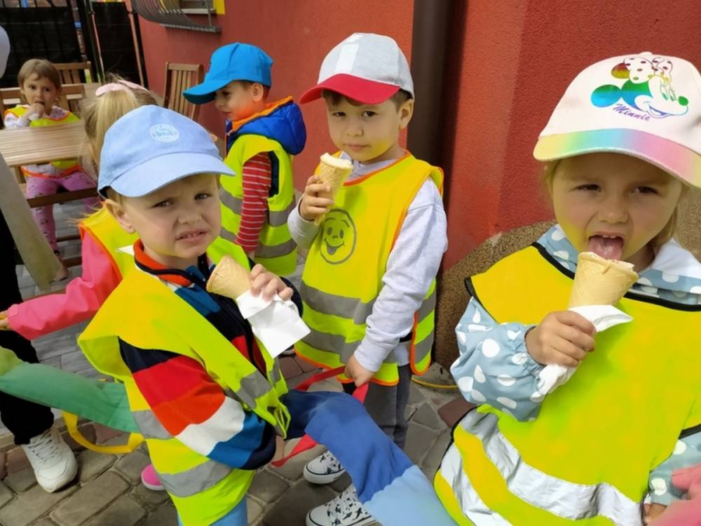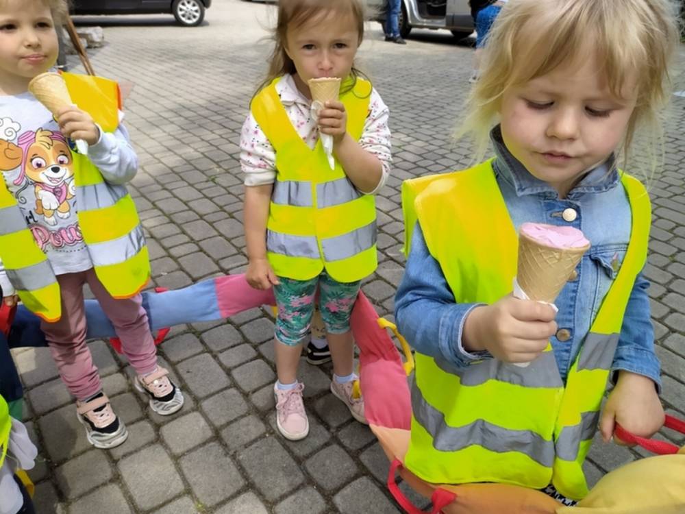 Dzień Dziecka w naszym przedszkolu trwał naprawdę długo. Już kilka dni przed 1 czerwca dzieci otrzymały bardzo fajne zabawki tarasowe, które przez kolejne dni umilały im czas. W Dniu swojego święta dzieci smakowały pysznych batoników zafundowanych przez Radę Rodziców oraz udały się z nauczycielkami na wycieczkę do lodziarni. Oprócz smacznych lodów czekała na nich jeszcze jedna atrakcja- „dmuchaniec”. Niespodzianka sprawiła dzieciom dużo radości. Jak same stwierdziły: „To nie był fajny dzień, to był super dzień”.