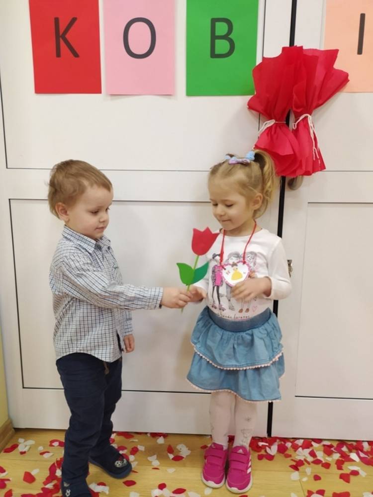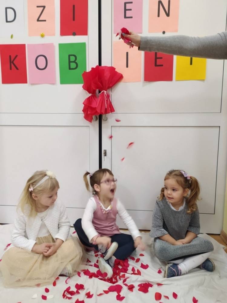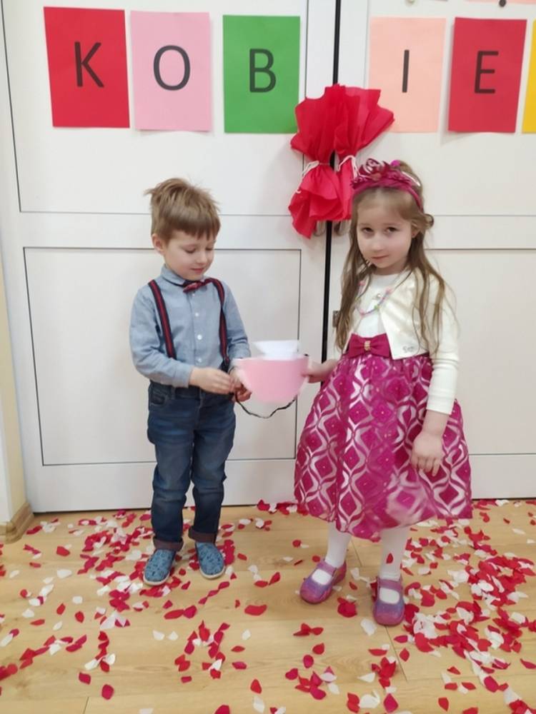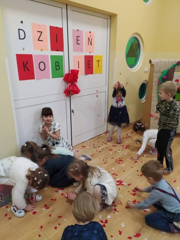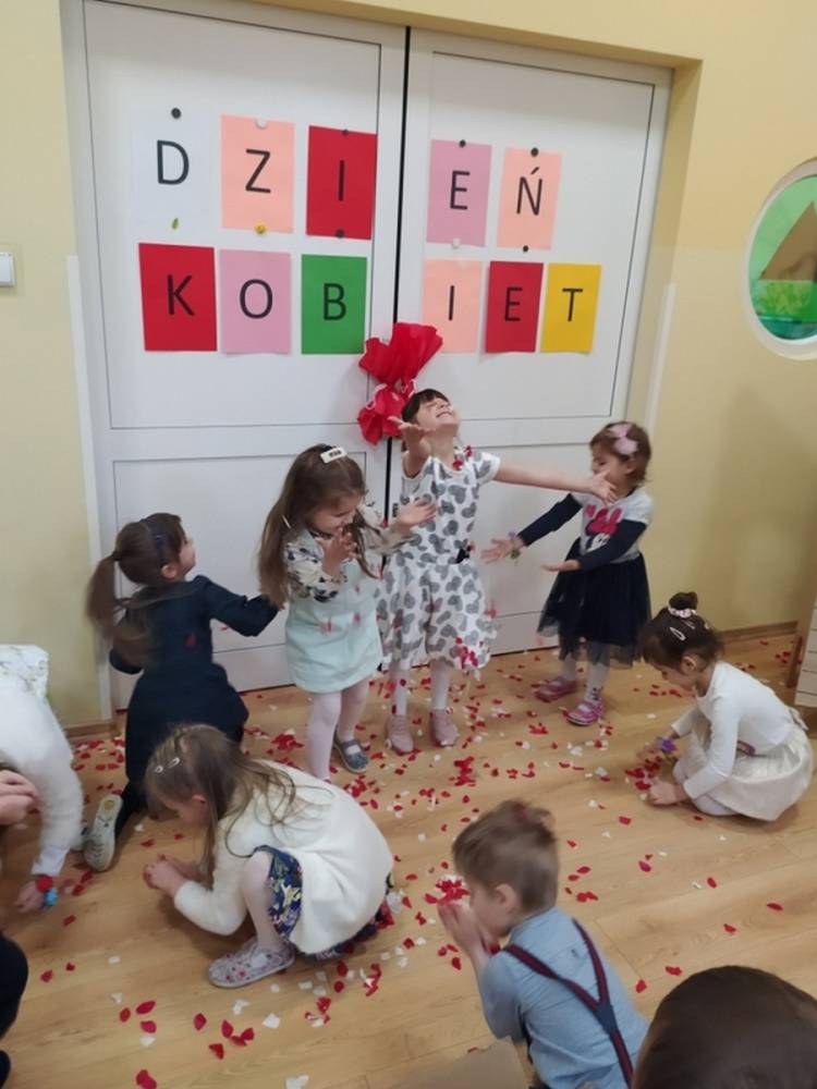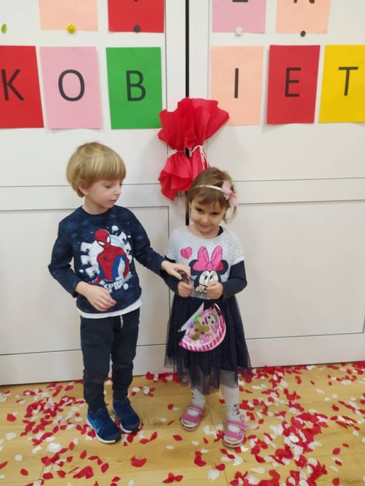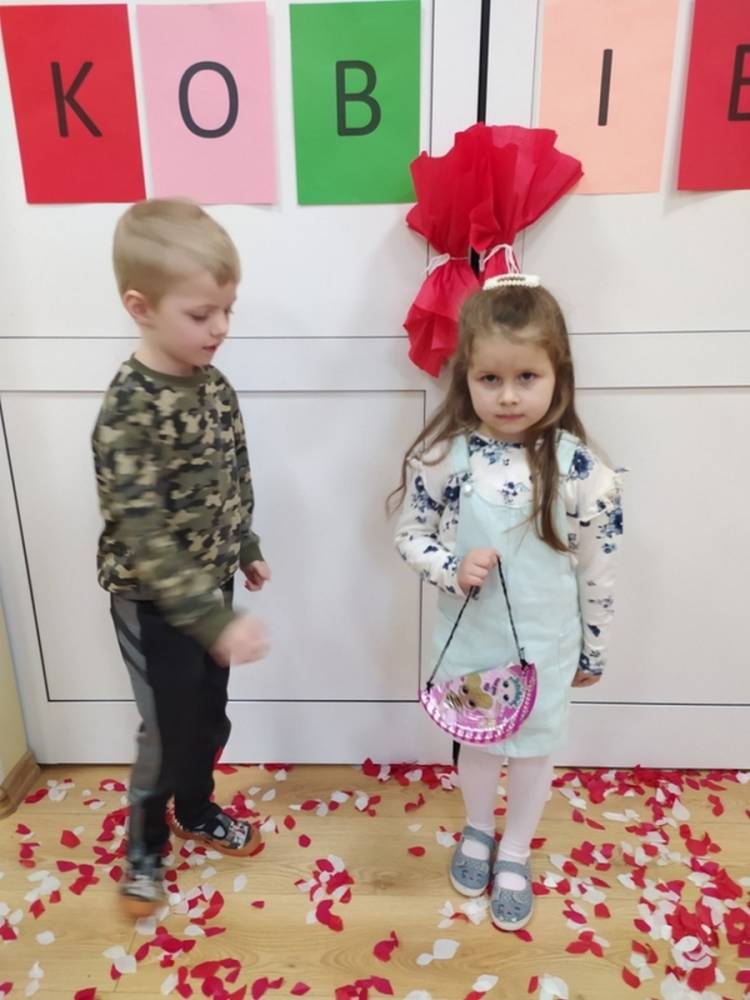 Wszystkie przedszkolaki 8 marca świętowały Dzień Kobiet. Dziewczynki przyszły ubrane w ulubione sukienki, spineczki i brokatowe dodatki. Chłopcy założyli koszule, krawaty i muszki. W ramach Dnia Kobiet odbyła się sesja zdjęciowa w stylu „Księżniczki”. Był dywan skąpany w płatkach kwiatów, a na zakończenie chłopcy wręczyli dziewczynkom upominki. Każda „Mała” Kobietka poczuła się doceniona i wyróżniona.