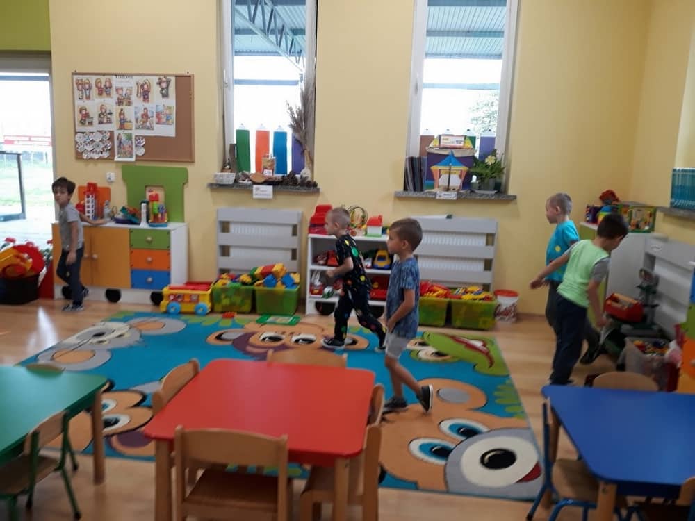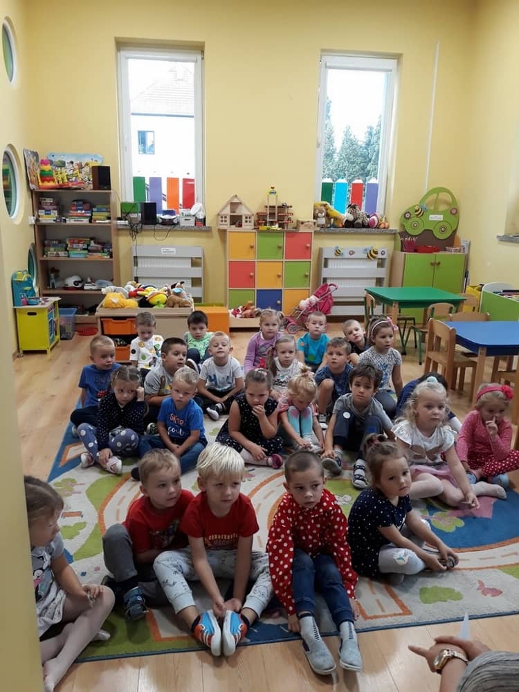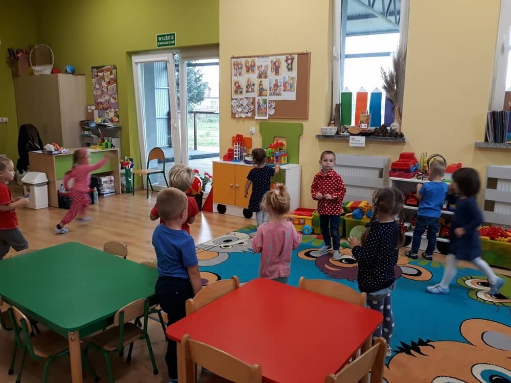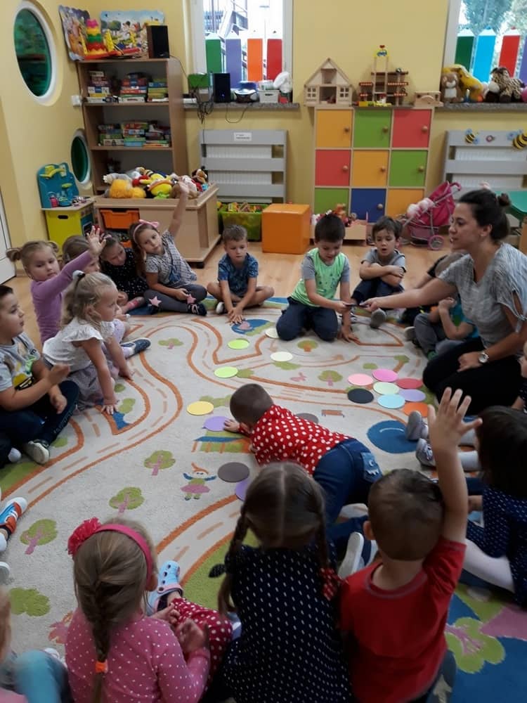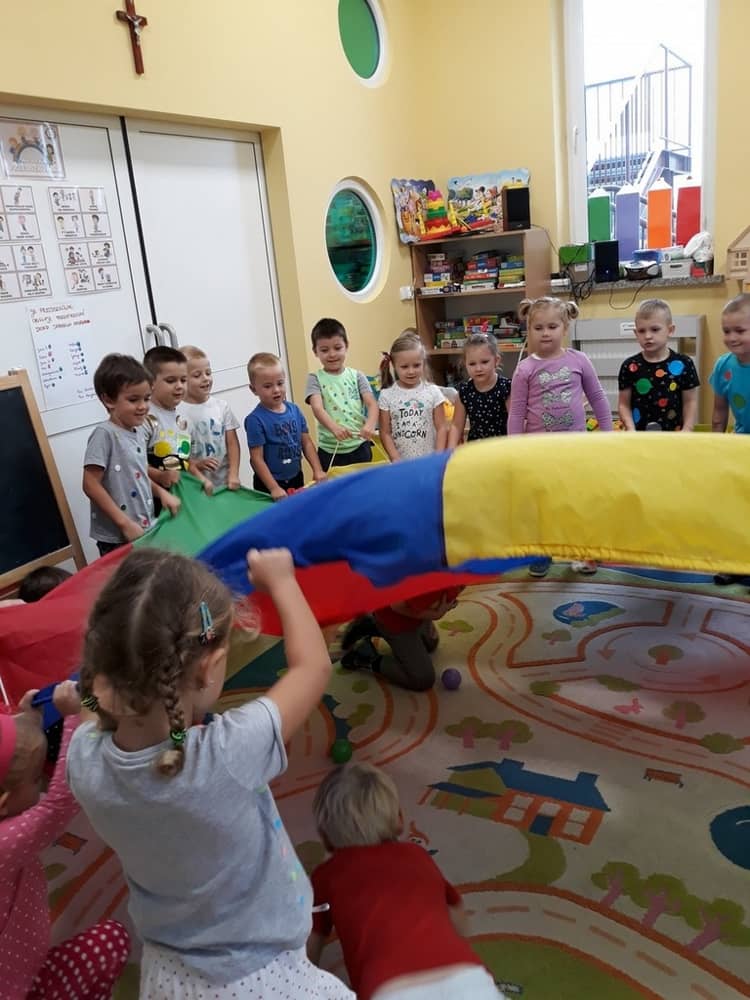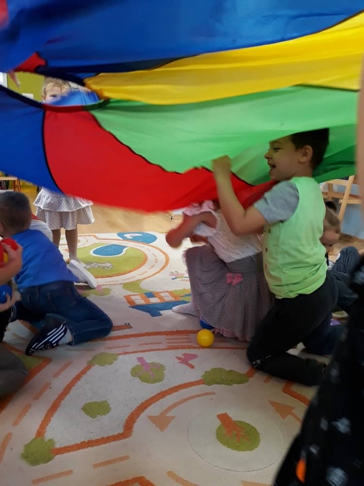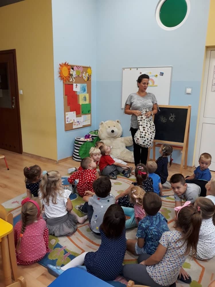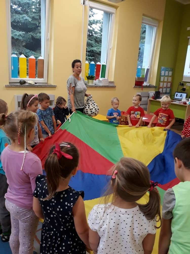 W dniu 14.09.2018 w naszym przedszkolu obchodziliśmy DZIEŃ KROPKI. Prawie wszystkie obecne dzieci miały na swoich ubraniach różnokolorowe kropki, a w przedszkolu poruszały się szlakiem różnokolorowych filcowych kół. W trakcie zajęć dzieci poznały bohaterkę książki Vasthi, dla której Kropka stała się motywacją w życiu, by uwierzyć w swoje możliwości. Następnie dzieci z radością i entuzjazmem uczestniczyły w zabawie muzyczno- ruchowej z chustą animacyjną i piłeczkami. Układały na dywanie wspólną kompozycje z kolorowych kół. W trakcie „Zabawy z kropeczkami” dzieci z obu grup szukały ukrytych w Sali kropek. Dodatkowo odbyły się „Zabawy matematyczne”: •przeliczanie