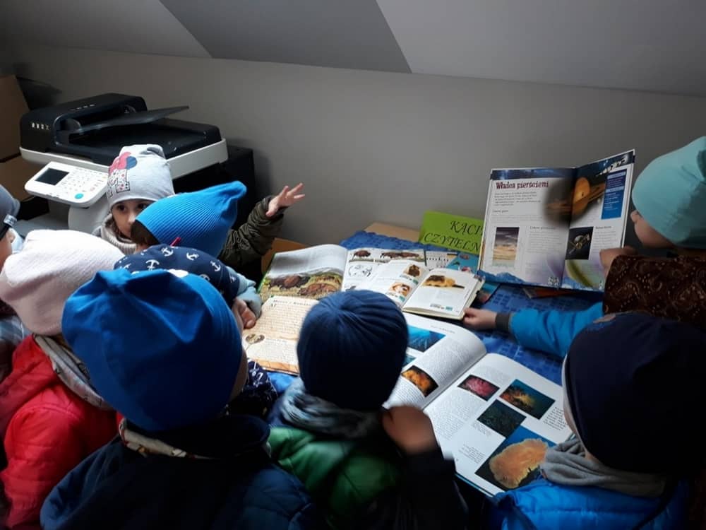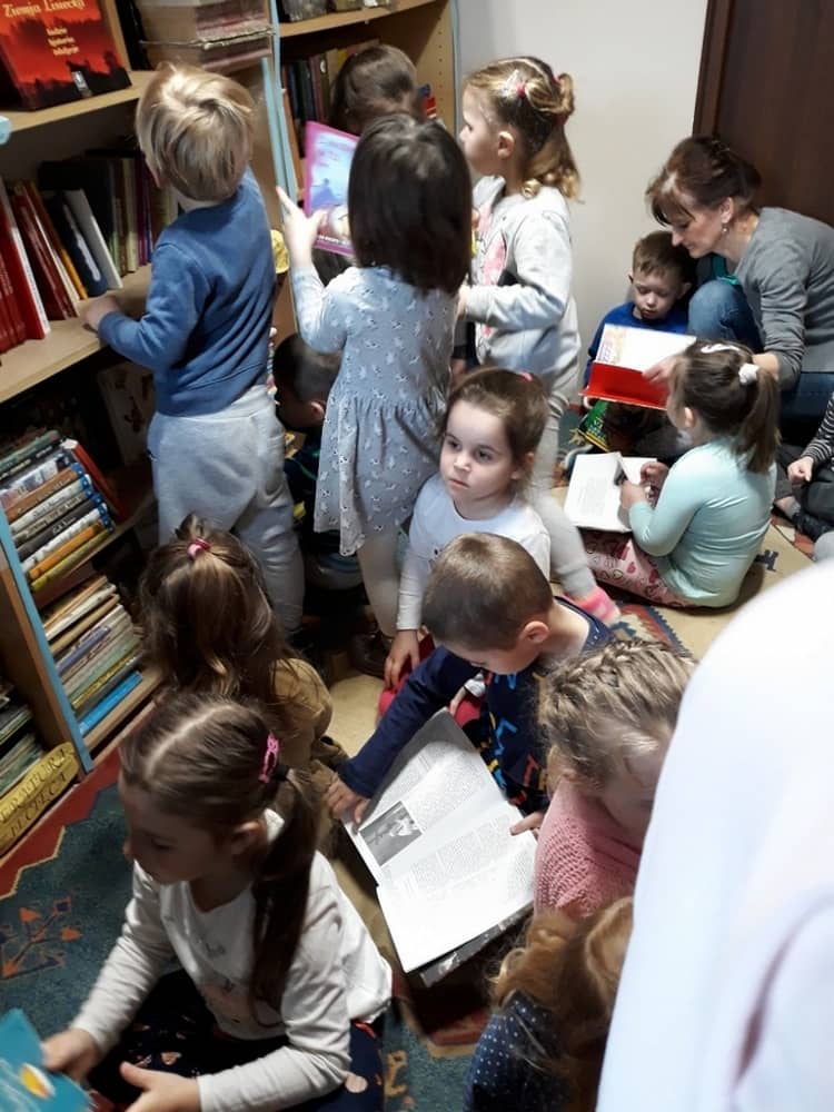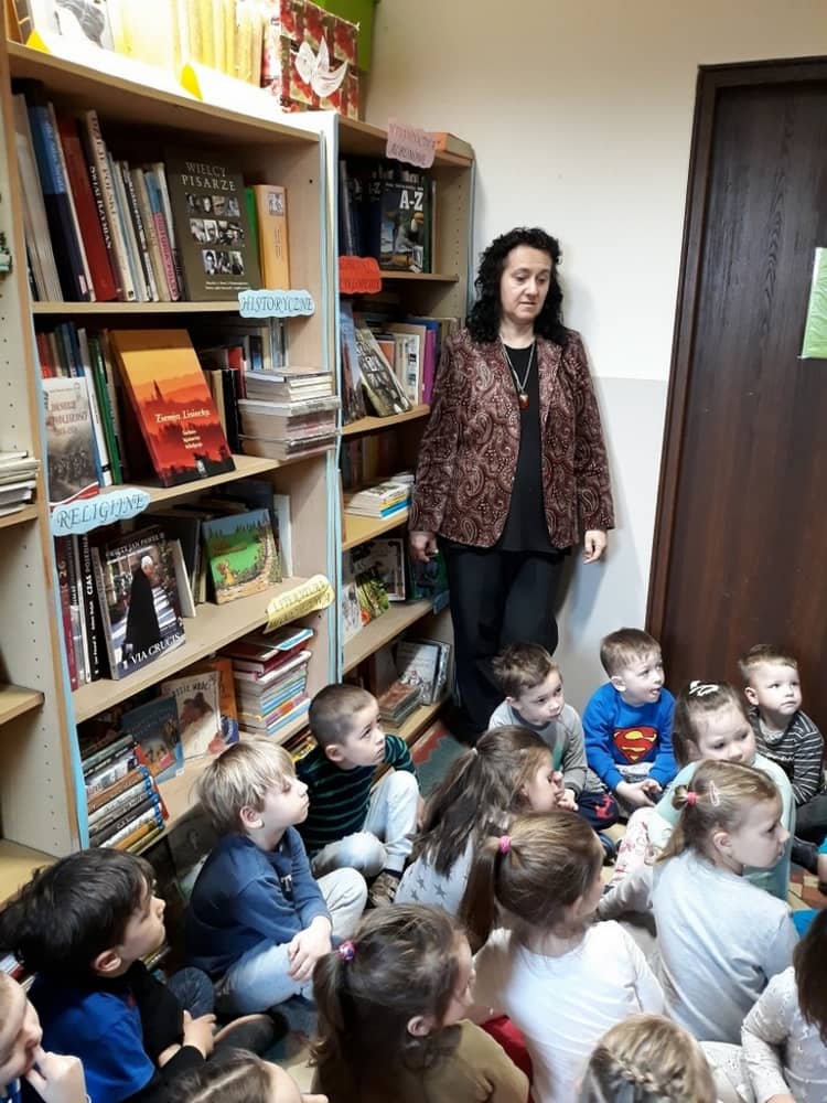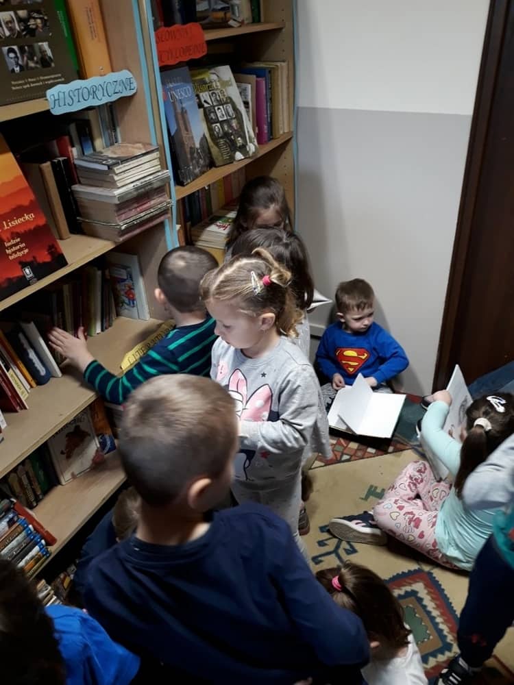 Z okazji dnia książki wszystkie dzieci z przedszkola wybrały się w dniu 04.04.2019 do szkolnej Biblioteki. Zajęcia poświęcone tematyce książek przeprowadziła Pani Bibliotekarka. W tym dniu dzieci odkryły świat książek z perspektywy pracy bibliotekarza. Mogły dowiedzieć się, w jaki sposób wygląda jego praca, a także, w jaki sposób korzystają z biblioteki uczniowie szkoły. Wszelkie zasady zachowania się w bibliotece na pewno przydadzą się im w przyszłych latach nauki. Dzieci poznały również mądrą prawdę, iż książka jest największym przyjacielem człowieka. Mogły pooglądać zbiory książek i wybrać tą, która ich najbardziej zaciekawi. Po powrocie do przedszkola nauczycielki przybliżyły dzieciom jeszcze tematykę książek, a Pracowite Pszczółki wykonały zakładki do książek. Wycieczka do biblioteki zapewne stanowiła zachętę dla dzieci by w przyszłości korzystały z tego miejsca by odkrywać świat.