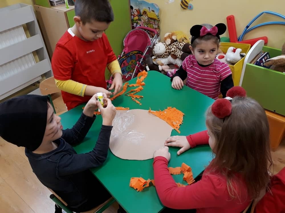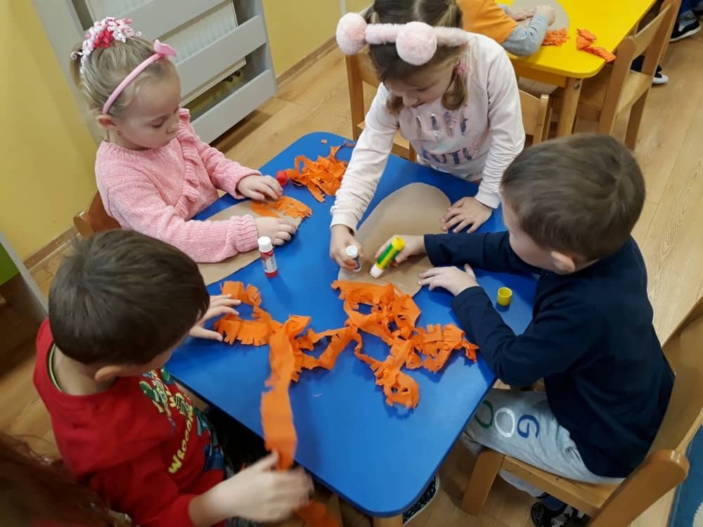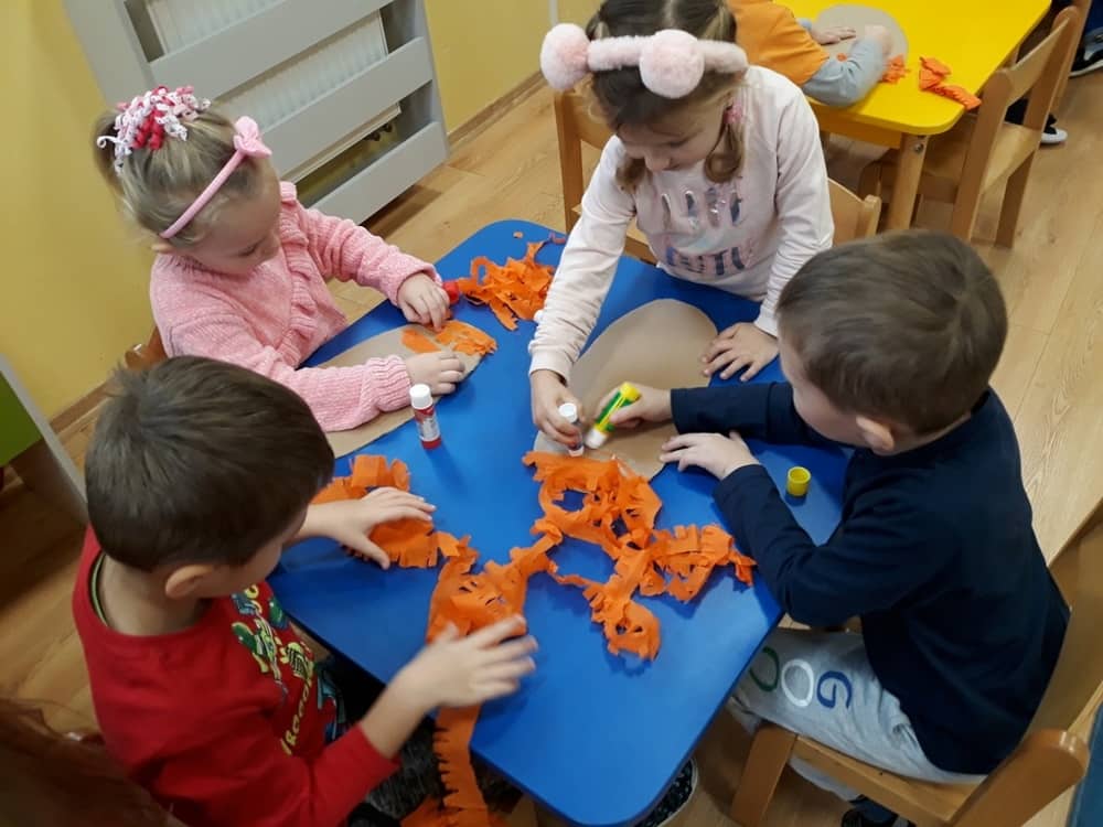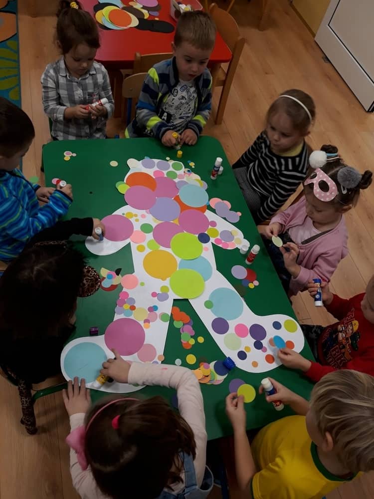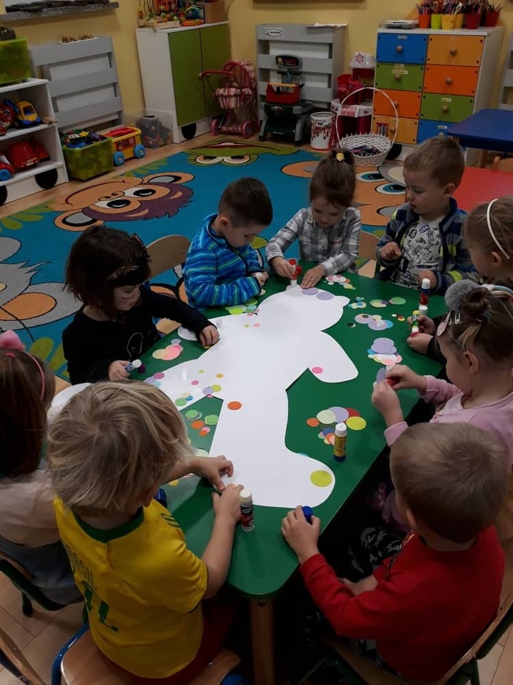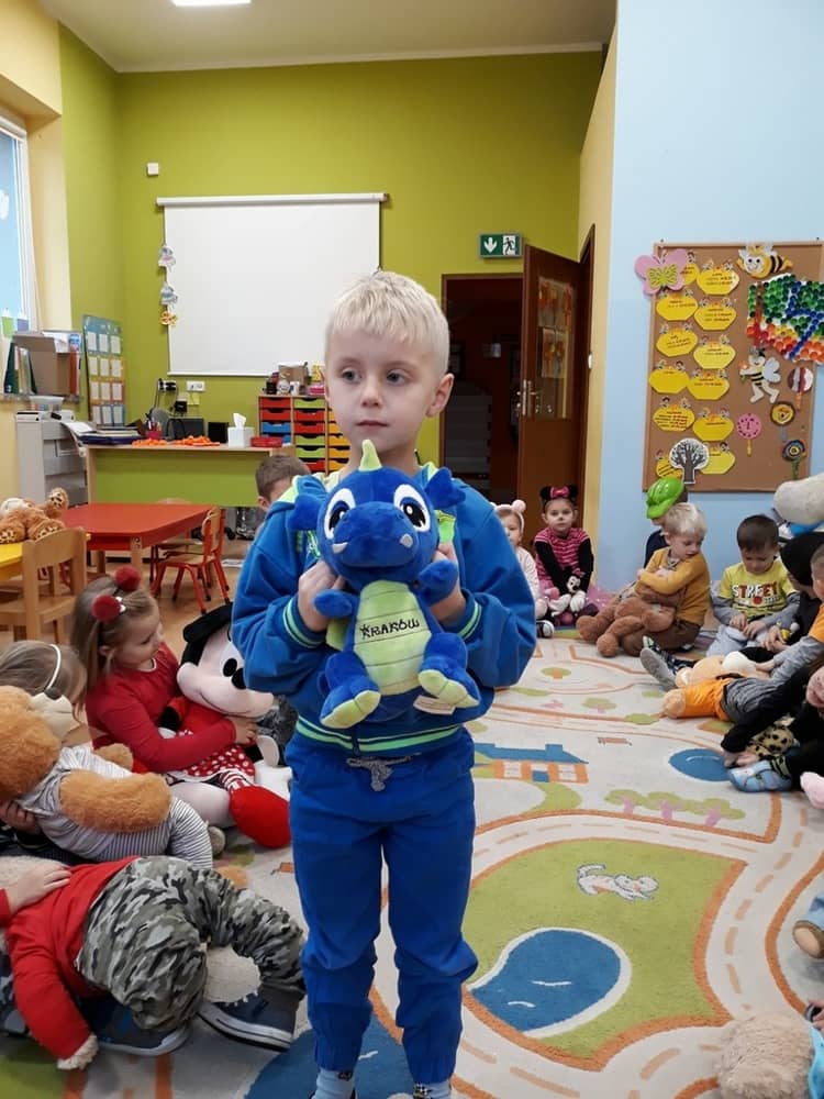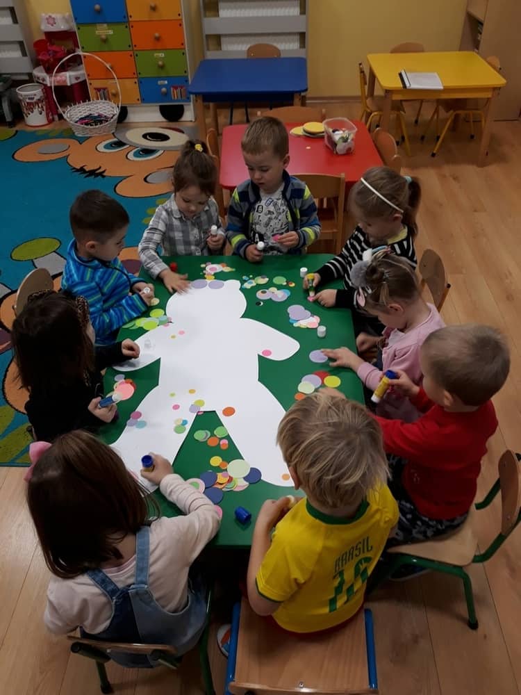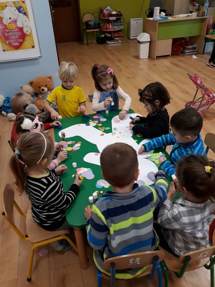 W dniu 23.11.2018 w naszym Przedszkolu świętowaliśmy Dzień Pluszowego Misia. Na ścianach korytarza i na drzwiach wejściowych przedszkola zawieszono piękne prace plastyczne z postacią Misia, które w zeszłym roku wykonały dzieci wraz z rodzicami. Wszystkie dzieci w tym dniu przyszły do przedszkola ze swoimi ulubionymi przytulankami. Głównym założeniem było to, aby dzieci i ich przytulanki były ubrane w podobne stroje. Zajęcia rozpoczęły się od recytacji wiersza pt. „Kochać misia”, którego autorką była Pani Agnieszka Karcz. Wiersz zwrócił uwagę na poszanowanie zabawek i troszczenie się o to, co jest dla nas ważne. Następnie odbył się pokaz i prezentacja misiów na tle grupy. Kolejnym atrakcyjnym dla dzieci momentem był taniec z misiem. Wszyscy bawili się wesoło w rytm muzyki. W ramach odpoczynku dzieci wzięły udział w głosowaniu na najfajniej przebranego misia i jego właściciela. Głosowanie przebiegało bardzo zgodnie. Zwycięzca został nagrodzony wielkimi brawami. W tym dniu dzieci uczyły się także rymowanki autorstwa Pani Agnieszki Karcz pt. „Kołysanka”. Na końcu dzieci wykonały prace plastyczne techniką wyklejanki. Była to praca zespołowa. Ostatnią atrakcją był poczęstunek Misiowy- wafelki z konfiturą.