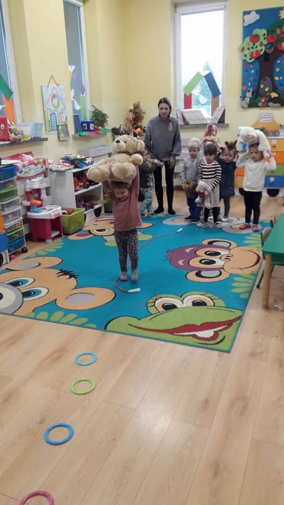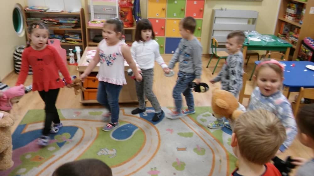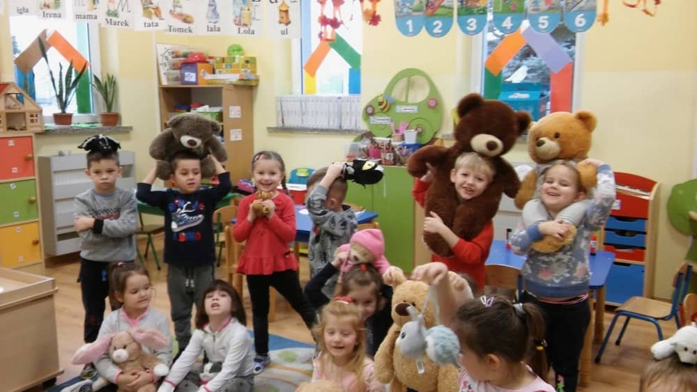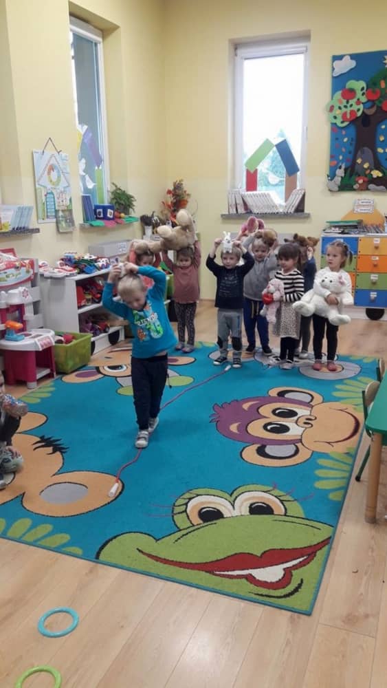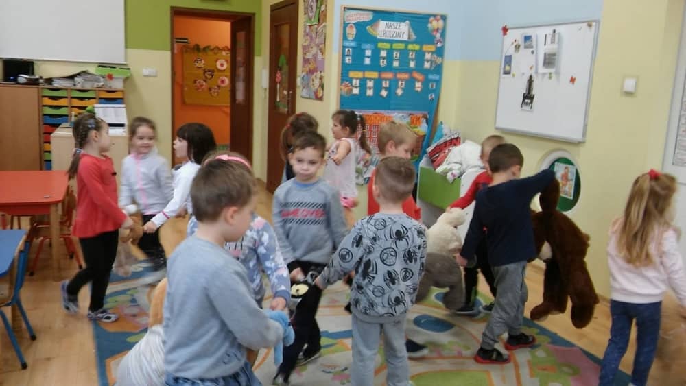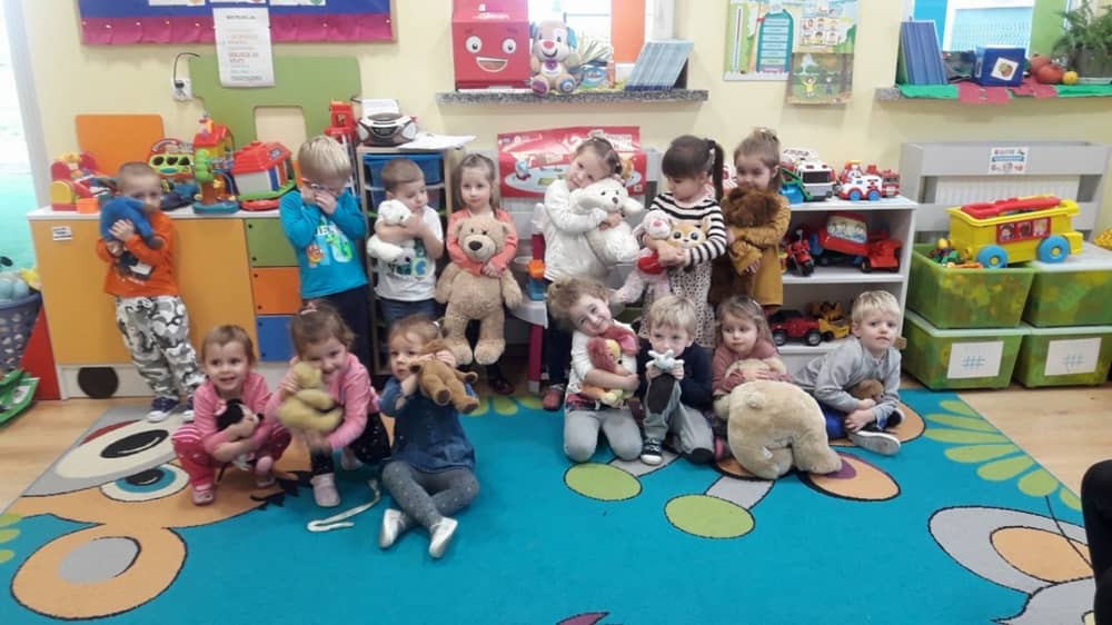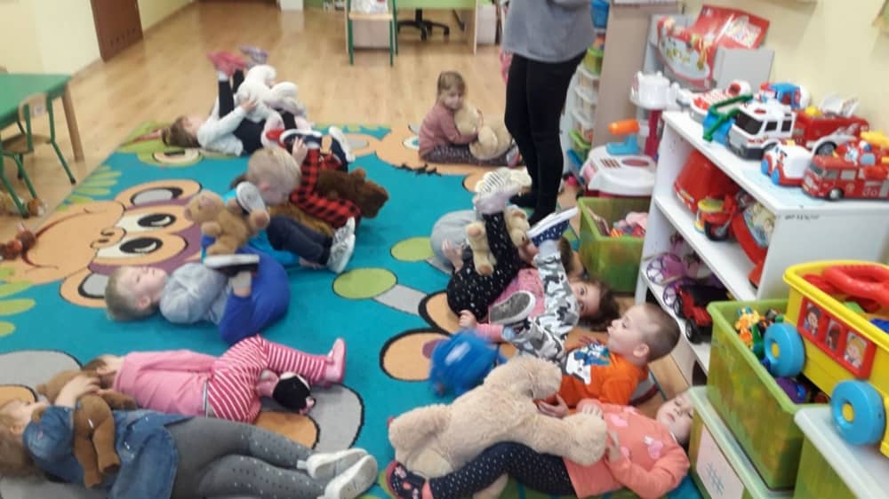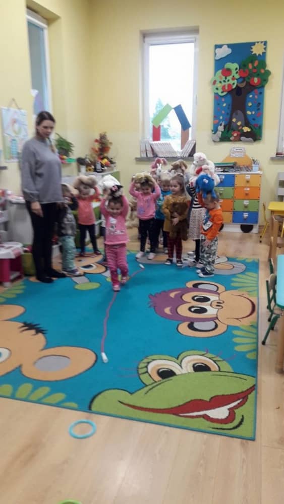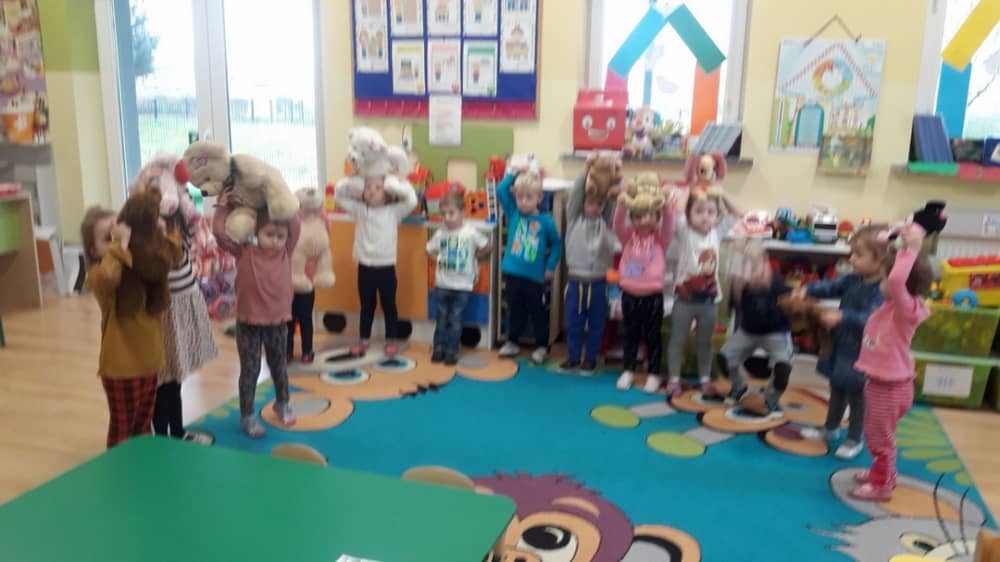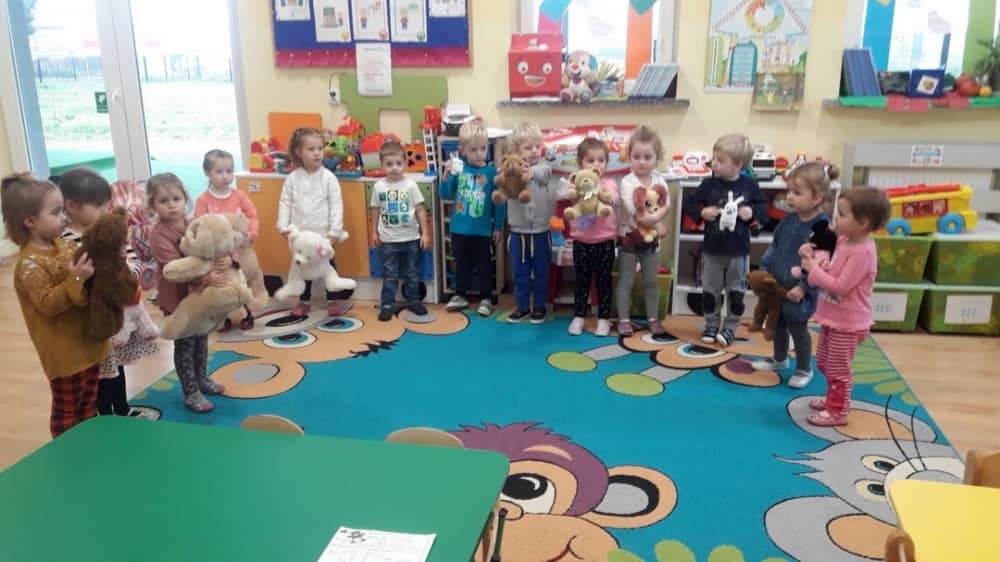 Dzień 25 listopada był radosnym Dniem Pluszowego Misia - ulubieńca każdego malucha. W tym dniu wszystkie teksty literackie, piosenki, zabawy dydaktyczne, ćwiczenia ruchowe i prace plastyczne dotyczyły głównego bohatera dnia. Dzieci zabrały do przedszkola swoje ulubione pluszaki, aby wspólnie z nimi bawić się przez cały dzień. W tym dniu realizowałyśmy również scenariusz "Pluszowy miś" z Akcji Zdrowo i Sportowo. Były takie ćwiczenia gimnastyczne jak: Berek Miś, Marsz misiów, Mis akrobata, Znajdź swojego misia oraz Miś siłacz, mające na celu rozwijanie sprawności ruchowej, wzmocnienie mięśni brzucha, doskonalenie równowagi ciała.