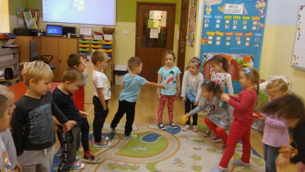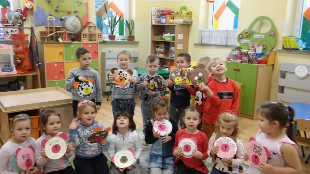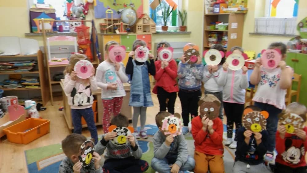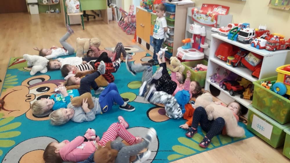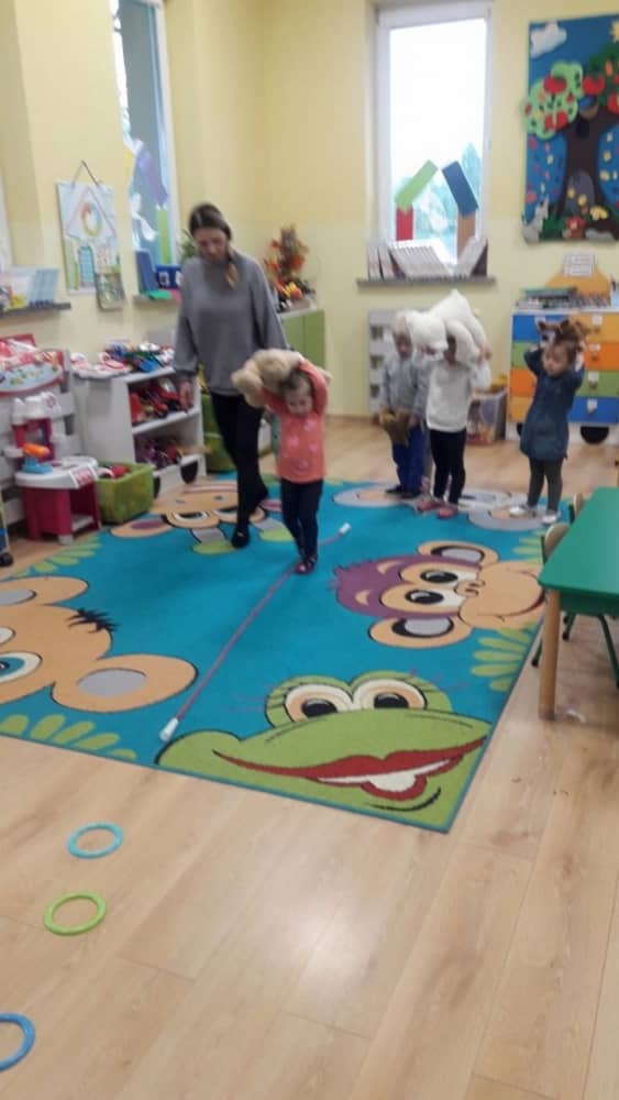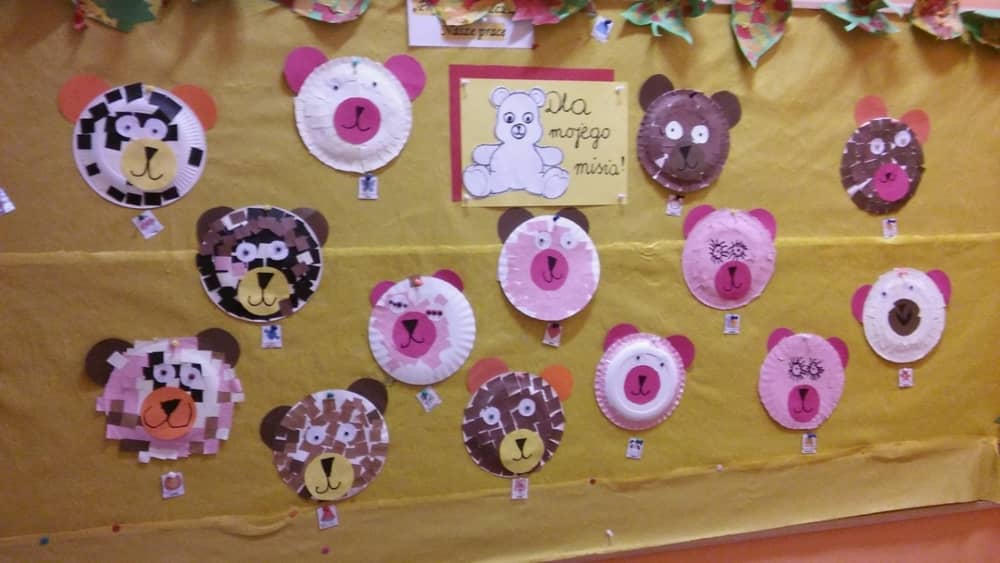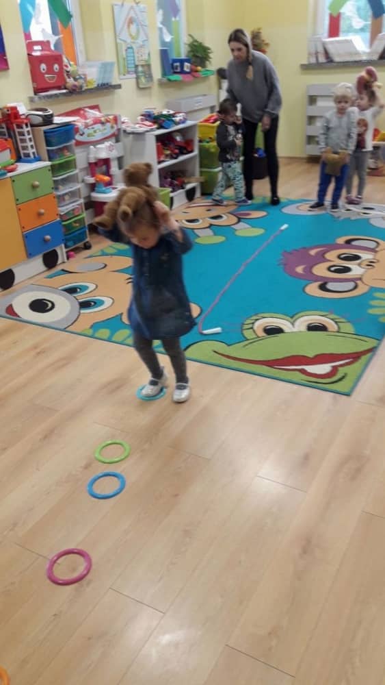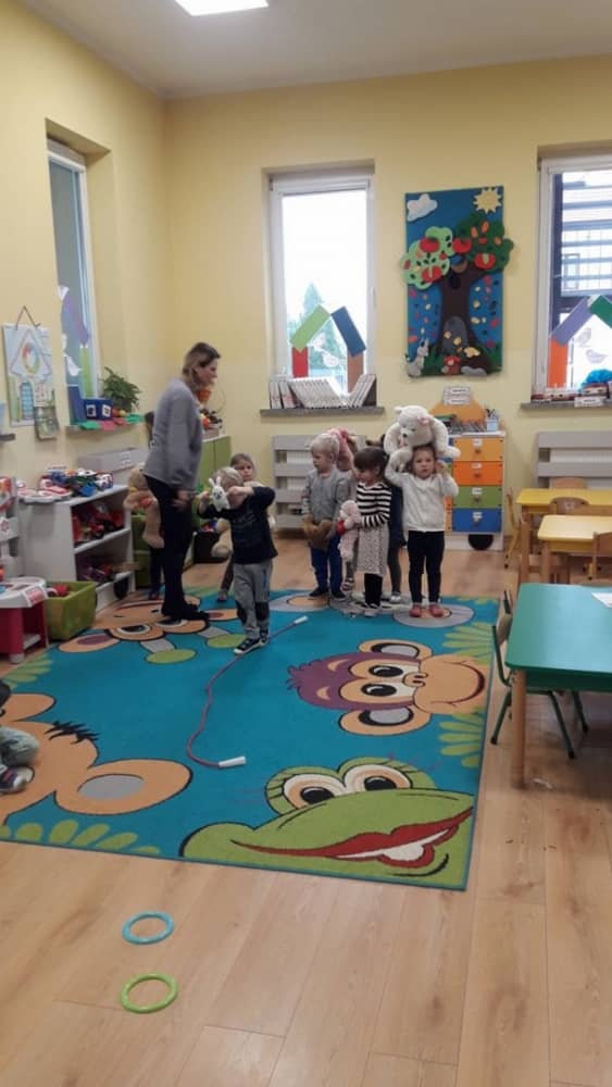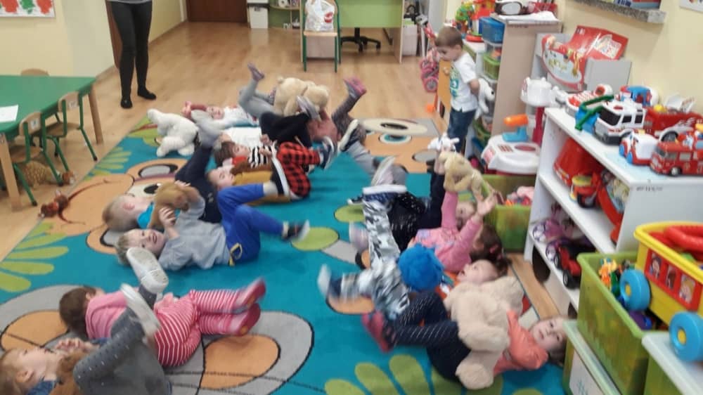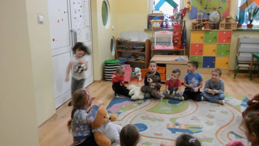Dzień 25 listopada był radosnym Dniem Pluszowego Misia - ulubieńca każdego malucha. W tym dniu wszystkie teksty literackie, piosenki, zabawy dydaktyczne, ćwiczenia ruchowe i prace plastyczne dotyczyły głównego bohatera dnia. Dzieci zabrały do przedszkola swoje ulubione pluszaki, aby wspólnie z nimi bawić się przez cały dzień. W tym dniu realizowałyśmy również scenariusz "Pluszowy miś" z Akcji Zdrowo i Sportowo. Były takie ćwiczenia gimnastyczne jak: Berek Miś, Marsz misiów, Mis akrobata, Znajdź swojego misia oraz Miś siłacz, mające na celu rozwijanie sprawności ruchowej, wzmocnienie mięśni brzucha, doskonalenie równowagi ciała.
