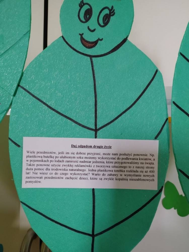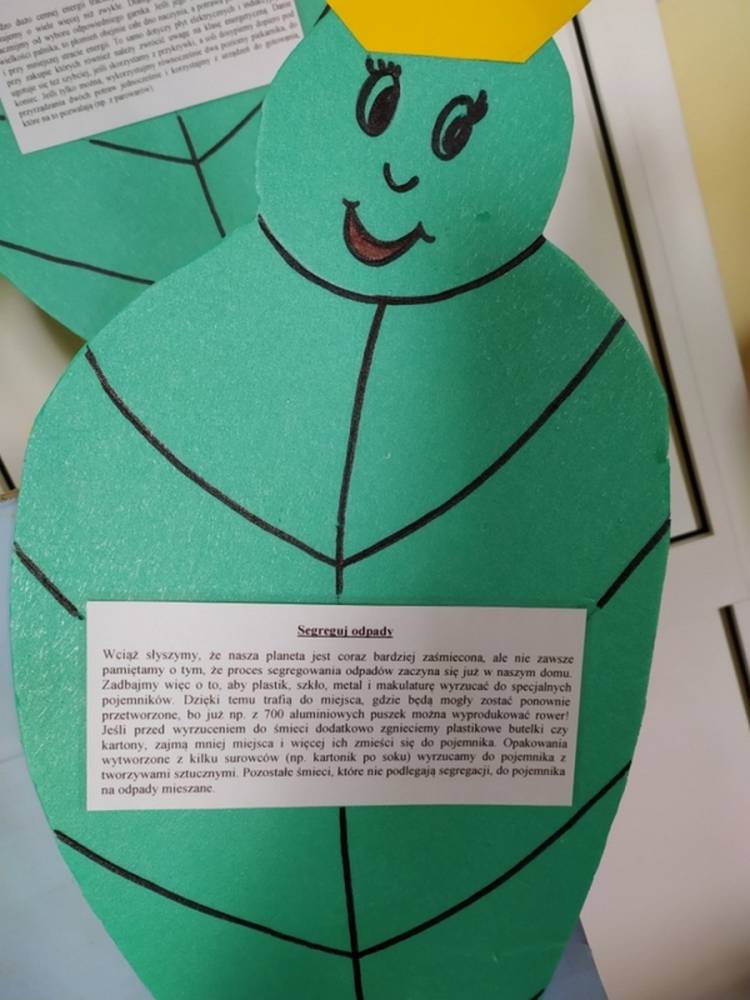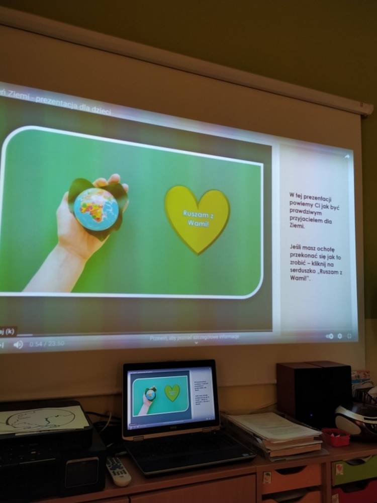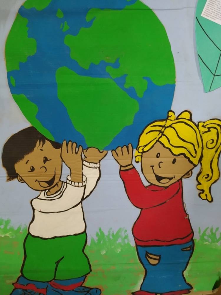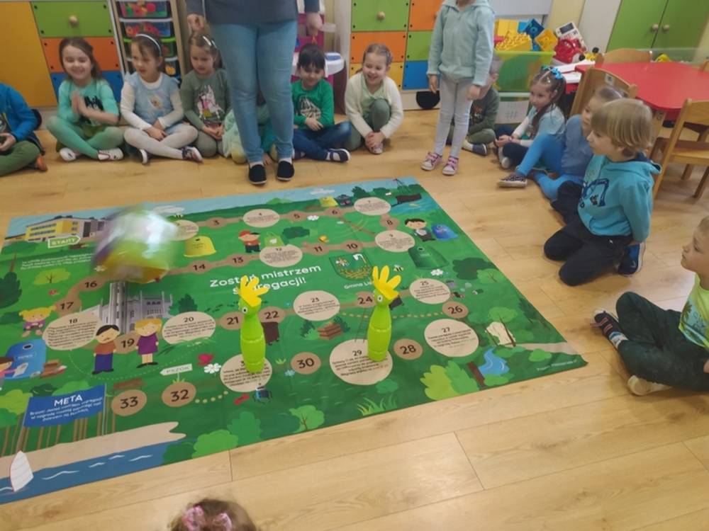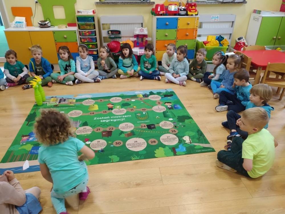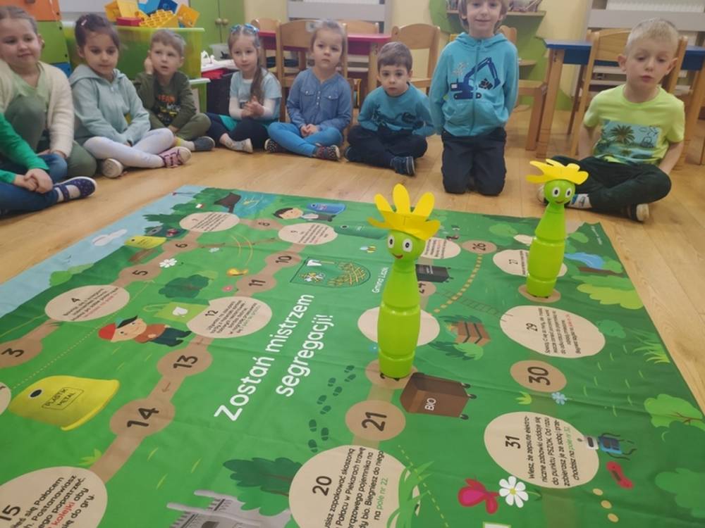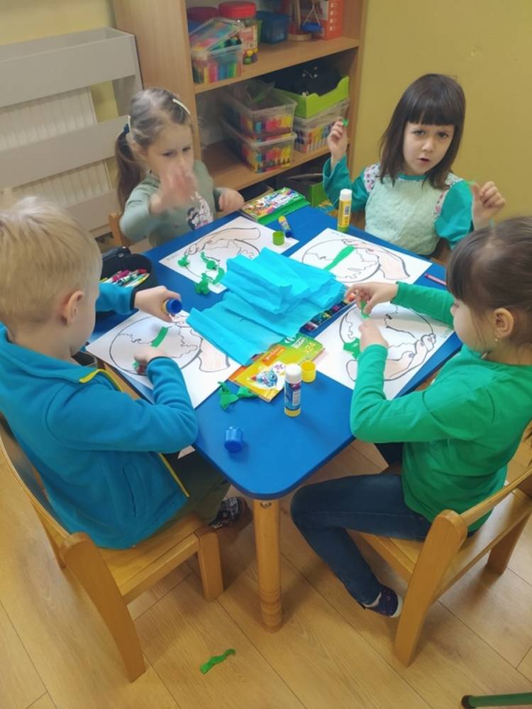 W dniu 22.04.2021 obchodziliśmy w przedszkolu Dzień Ziemi. Z tej okazji wszystkie dzieci przyszły ubrane w kolorach niebieskich i zielonych. Przed wejściem do przedszkola ustawiony został Eko- plakat zawierający cenne porady ekoludków. Na zajęciach dzieci poznały wszystkie zasady dotyczące ekologicznego sposobu życia. Obejrzały również bardzo wartościowy film ukazujący zagrożenia dla planety Ziemi i to, w jaki sposób nawet najmłodsze dzieci mogą się o nią troszczyć. Następnie dzieci z obu grup zagrały w planszową grę edukacyjną związaną z segregacją śmieci. Rywalizacja drużyn skończyła się remisem. Zwieńczeniem zajęć była praca plastyczna wyrażająca potrzebę dbania o naszą planetę Ziemię.