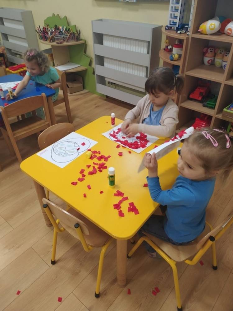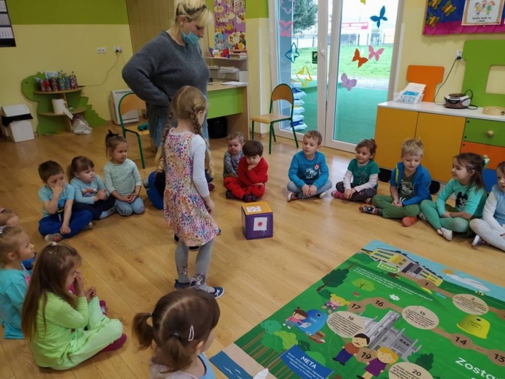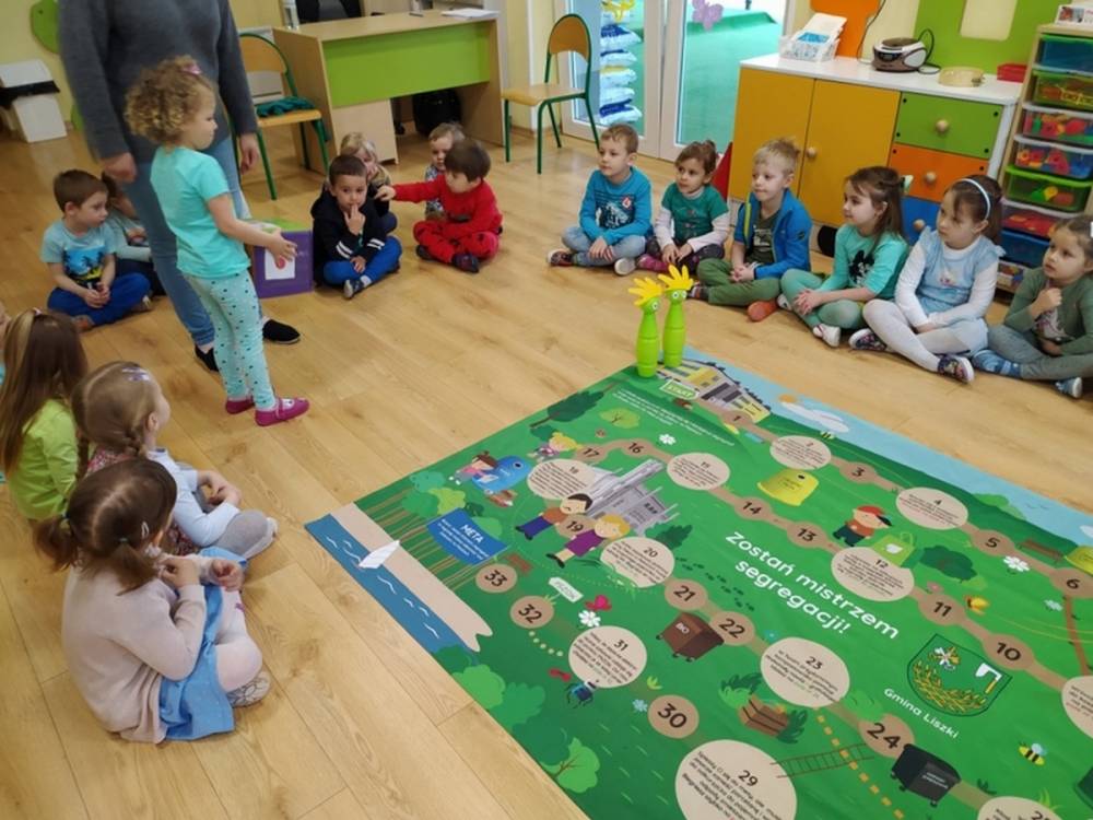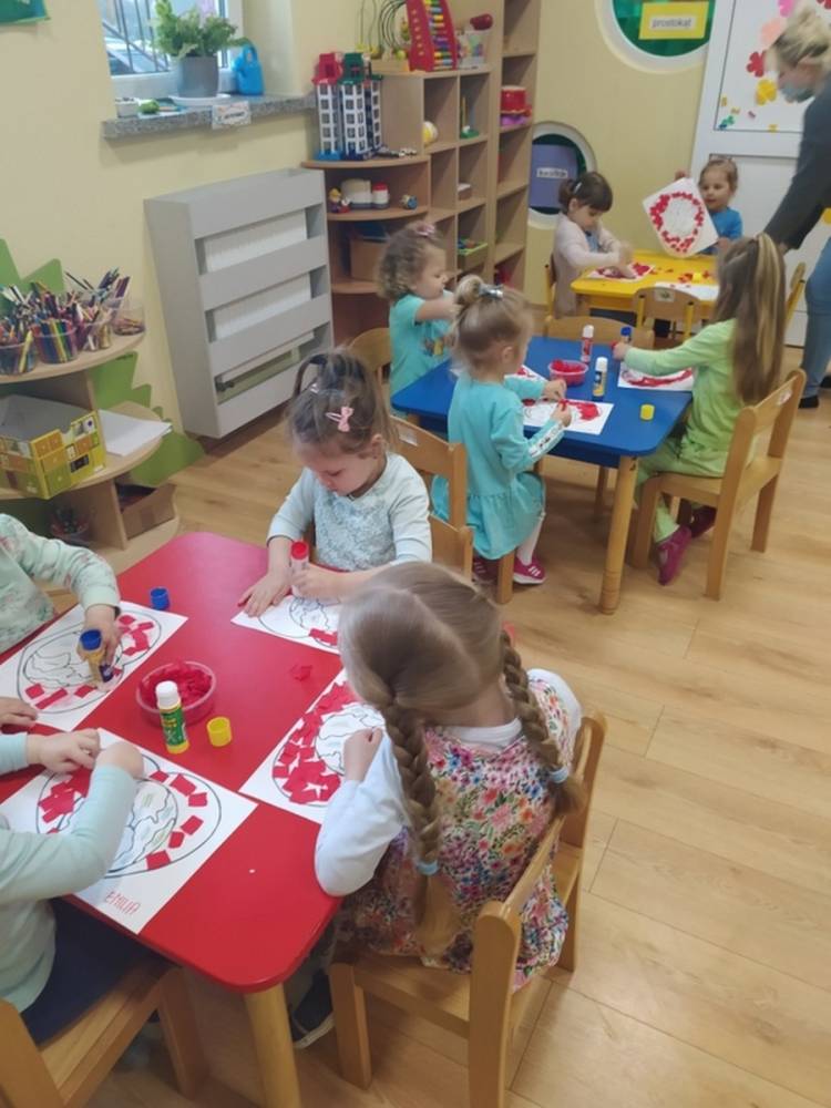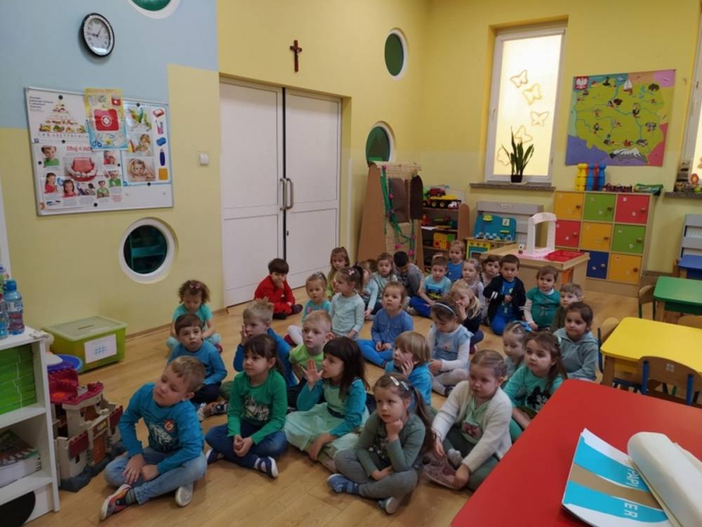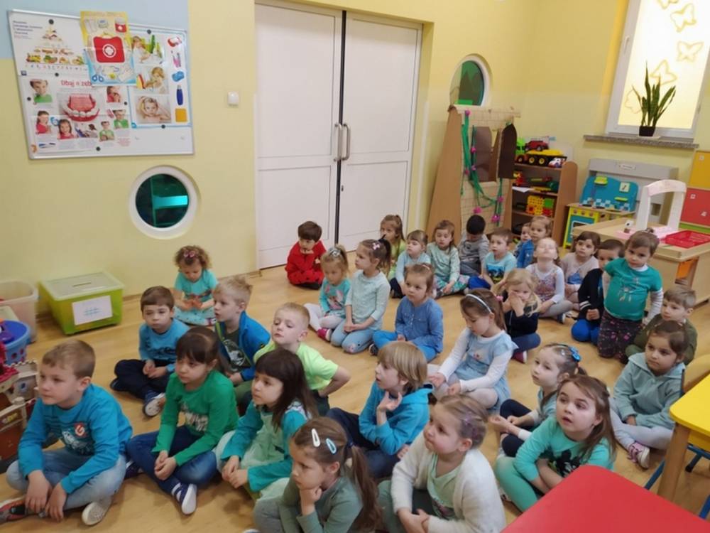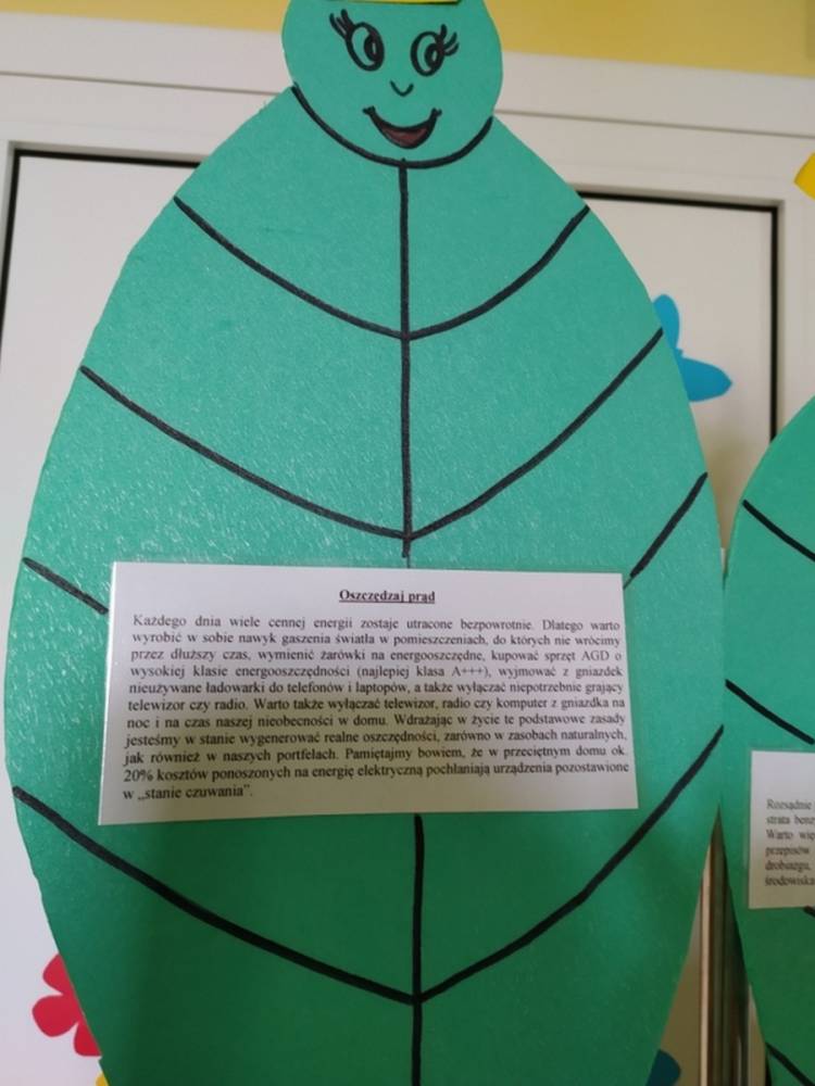 W dniu 22.04.2021 obchodziliśmy w przedszkolu Dzień Ziemi. Z tej okazji wszystkie dzieci przyszły ubrane w kolorach niebieskich i zielonych. Przed wejściem do przedszkola ustawiony został Eko- plakat zawierający cenne porady ekoludków. Na zajęciach dzieci poznały wszystkie zasady dotyczące ekologicznego sposobu życia. Obejrzały również bardzo wartościowy film ukazujący zagrożenia dla planety Ziemi i to, w jaki sposób nawet najmłodsze dzieci mogą się o nią troszczyć. Następnie dzieci z obu grup zagrały w planszową grę edukacyjną związaną z segregacją śmieci. Rywalizacja drużyn skończyła się remisem. Zwieńczeniem zajęć była praca plastyczna wyrażająca potrzebę dbania o naszą planetę Ziemię.