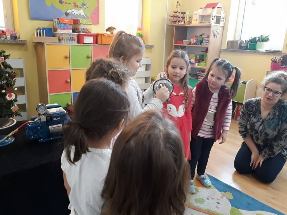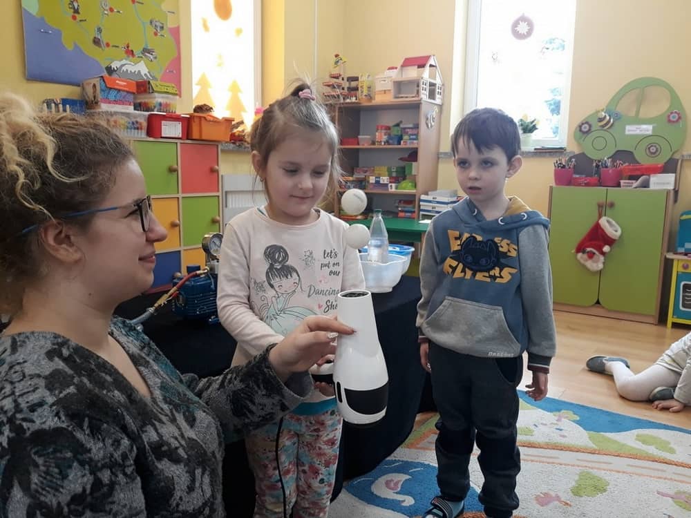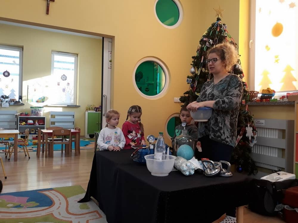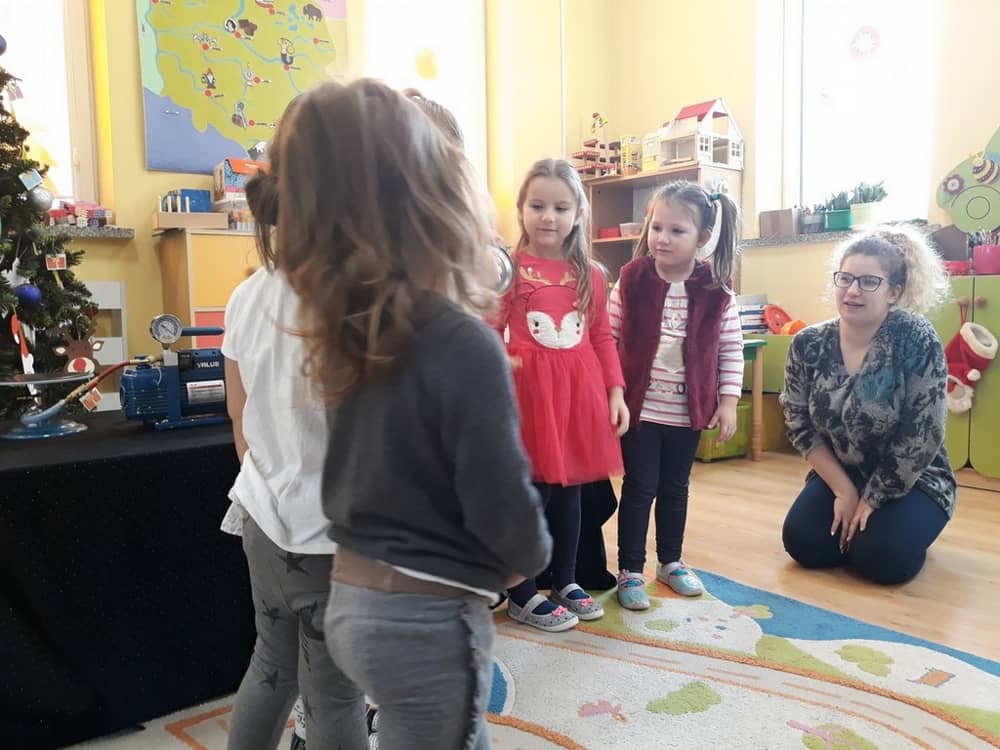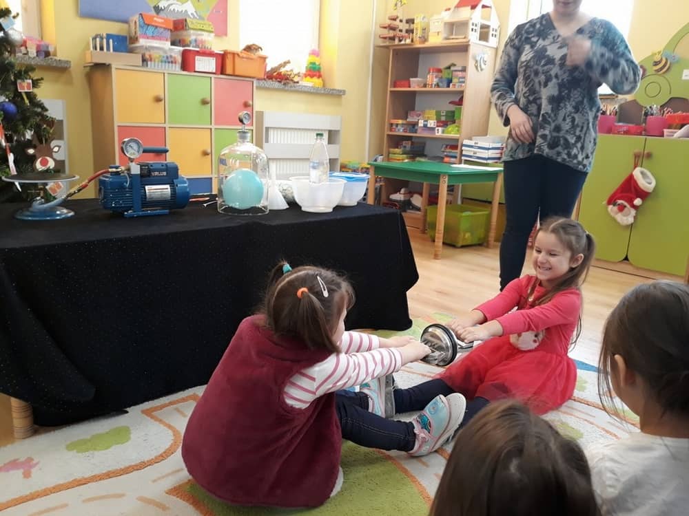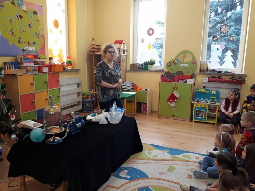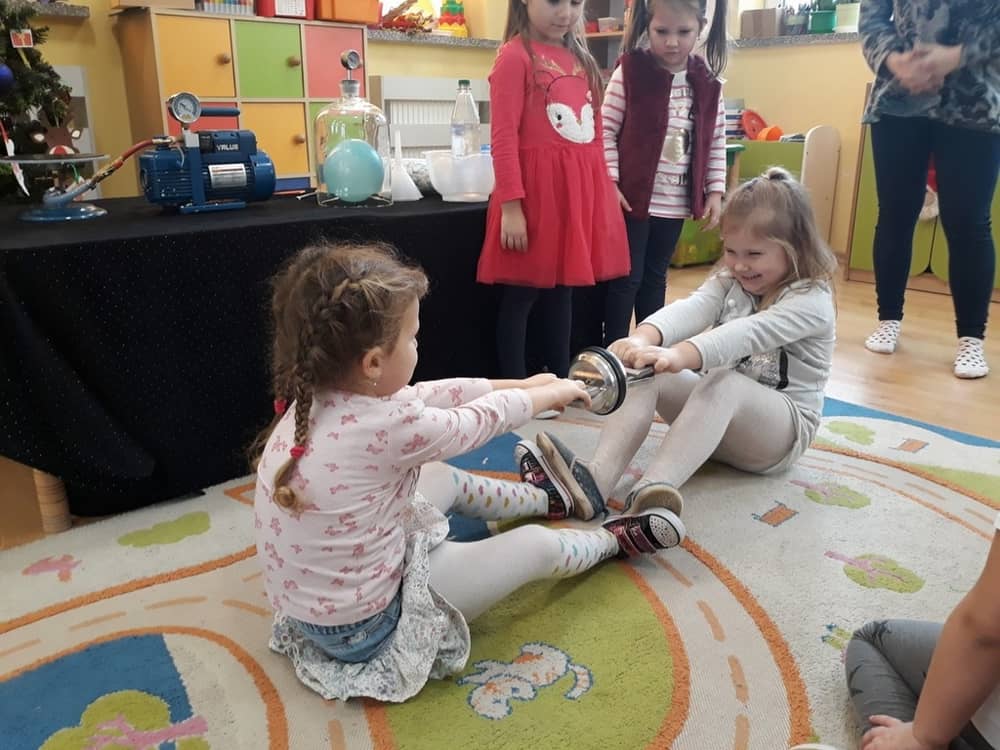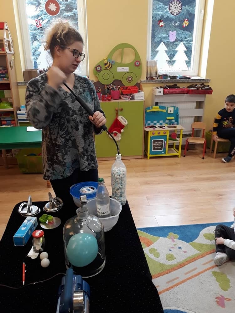 W dniu 04.01.2019 w naszym przedszkolu odbyły się zajęcia z Fizyki dotyczące tajemnic powietrza. W czasie spotkania przeprowadzono z dziećmi kilkanaście eksperymentów z wykorzystaniem specjalnych edukacyjnych zestawów. Dzieci poznały m.in. właściwości powietrza i jego składniki. Przekonały się ile waży powietrze, co to jest ciśnienie atmosferyczne oraz jak powstaje smog. Wszystkie dzieci były zaangażowane w pokaz oraz aktywnie uczestniczyły w zajęciach. Fizyka dla Smyka okazała się być niezwykle interesująca i zaskakująca dla dzieci.