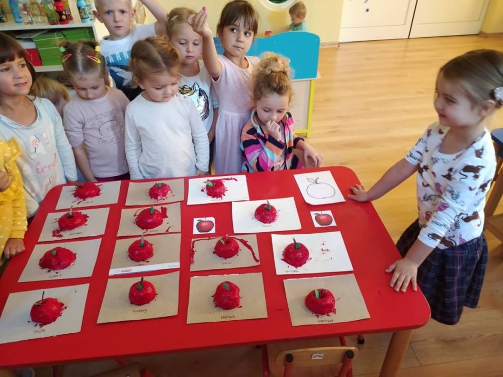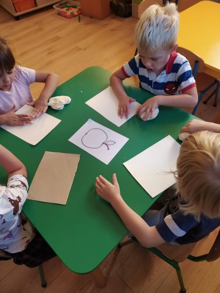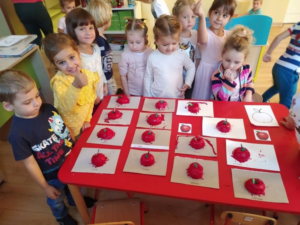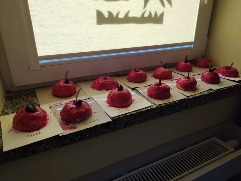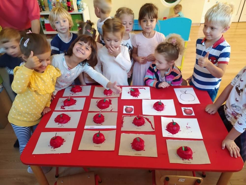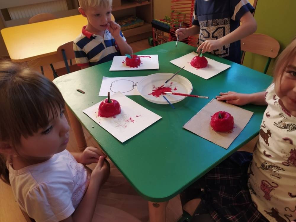 Dzień 25.09.2020 okazał się być naprawdę pracowitym dniem dla „Pracowitych Pszczółek”. Oprócz zajęć sportowych, odbyły się zajęcia plastyczne w trakcie, których dzieci miały okazję lepić z masy solnej piękne rumiane jabłuszka. Efekty ich pracy były wyśmienite- jabłuszka jak malowane, bo właśnie takie były i oczywiście nie zabrakło im ani ogonka, ani listeczka.