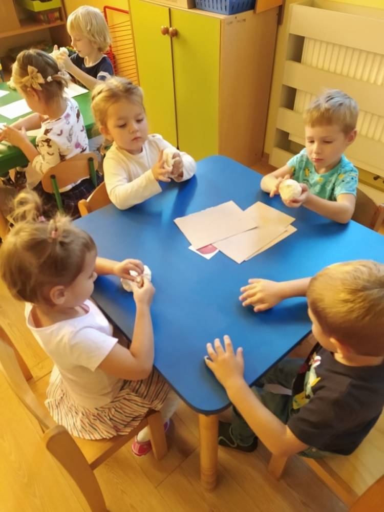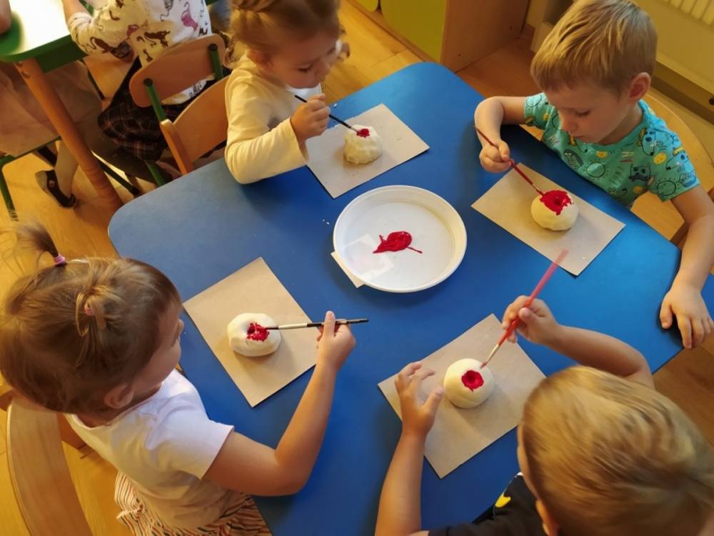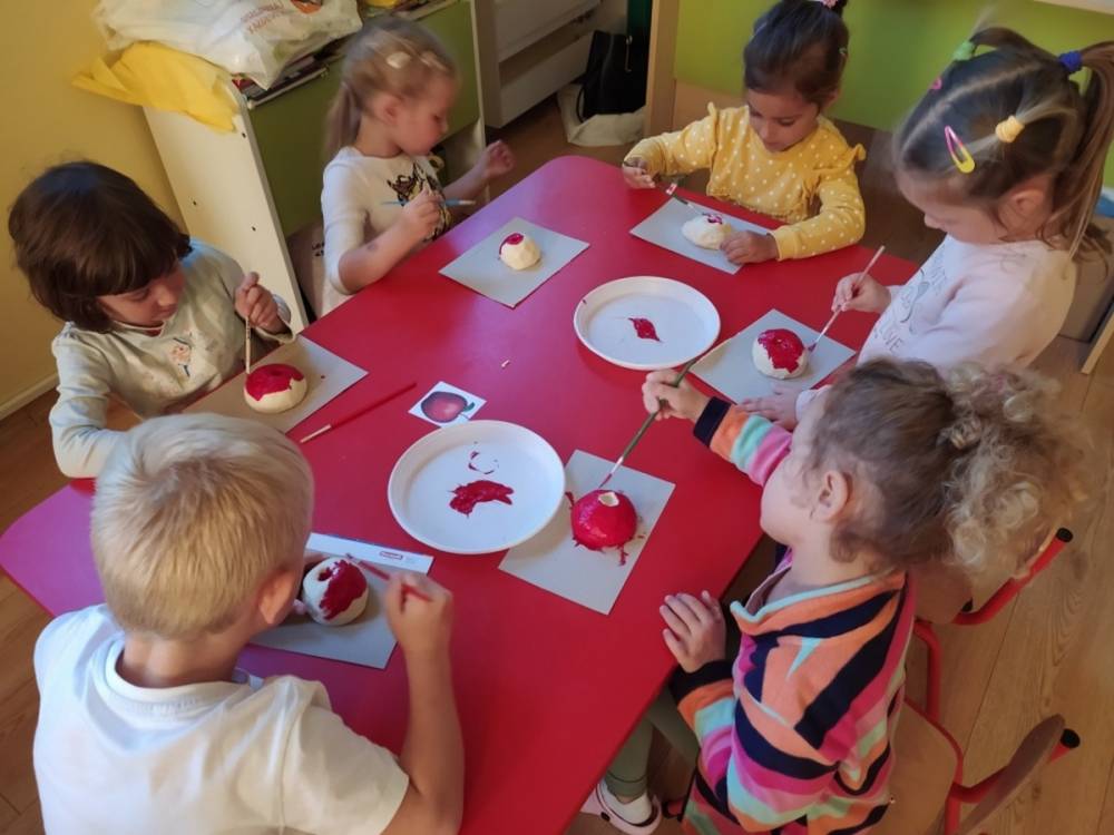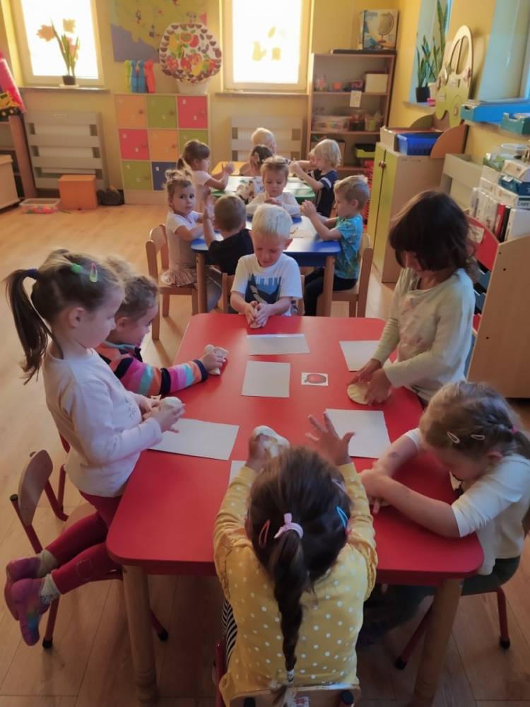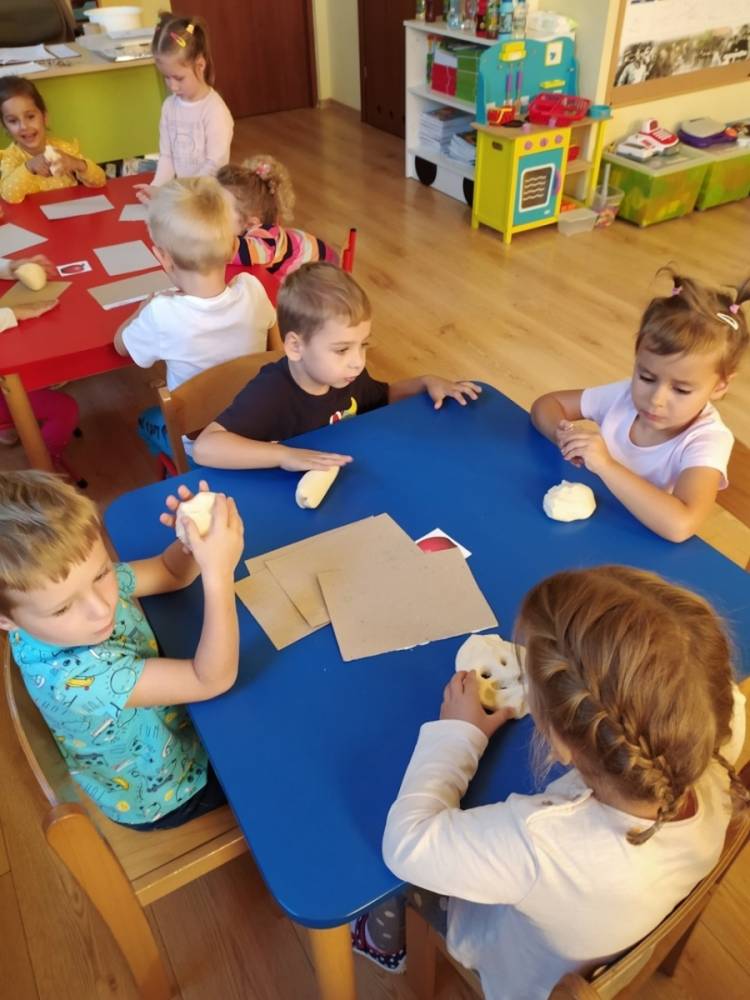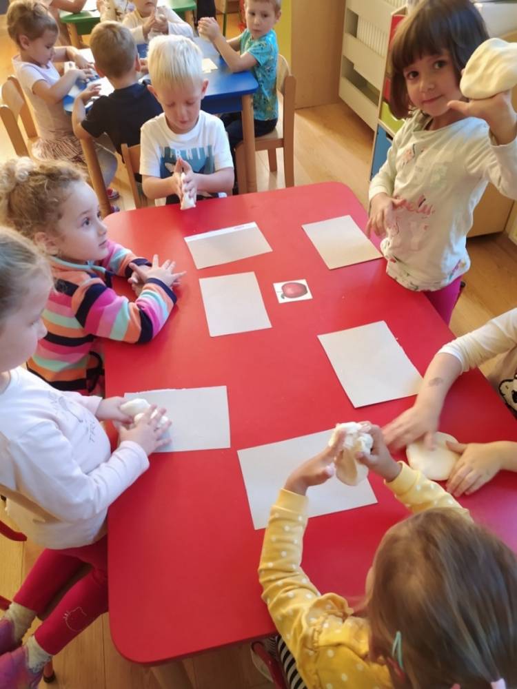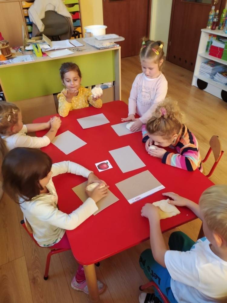 Dzień 25.09.2020 okazał się być naprawdę pracowitym dniem dla „Pracowitych Pszczółek”. Oprócz zajęć sportowych, odbyły się zajęcia plastyczne w trakcie, których dzieci miały okazję lepić z masy solnej piękne rumiane jabłuszka. Efekty ich pracy były wyśmienite- jabłuszka jak malowane, bo właśnie takie były i oczywiście nie zabrakło im ani ogonka, ani listeczka.