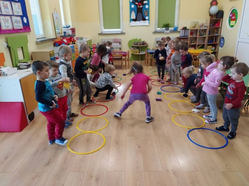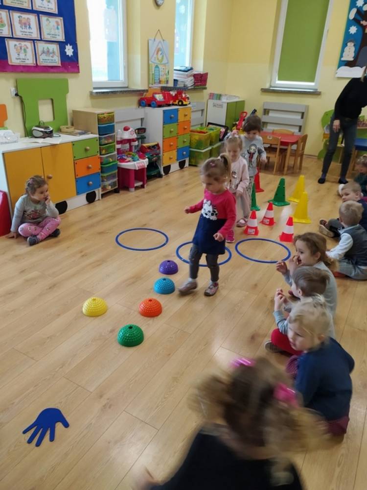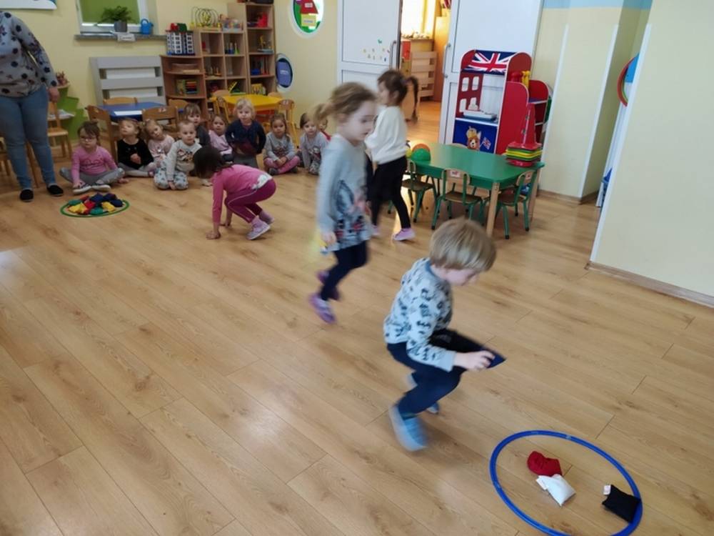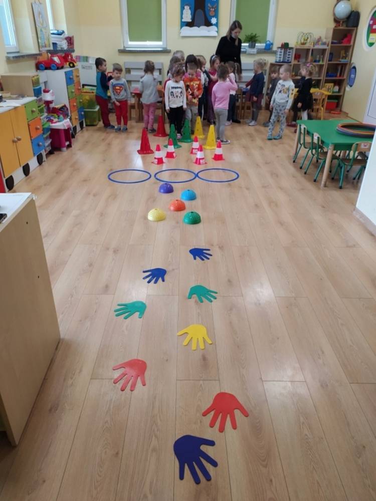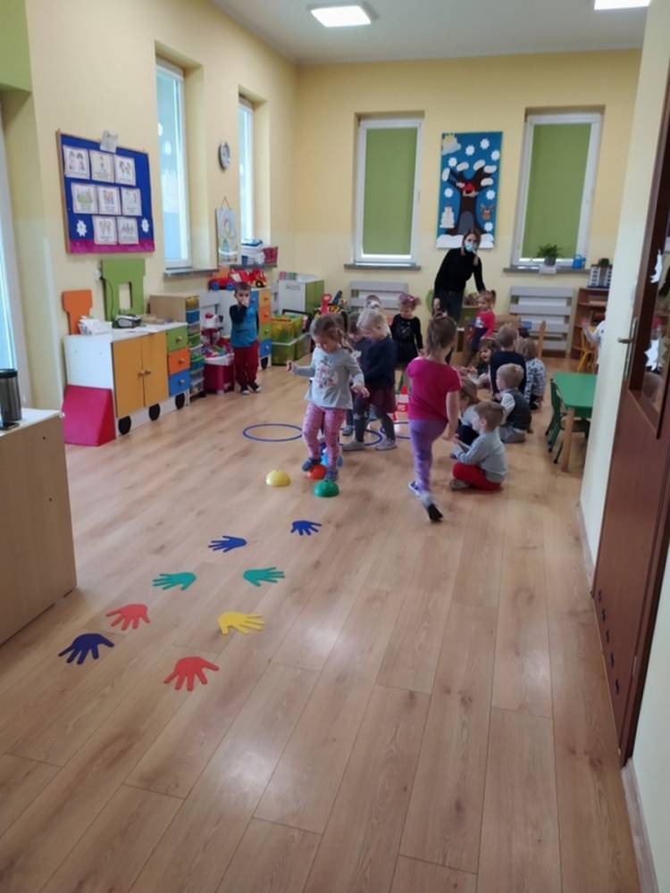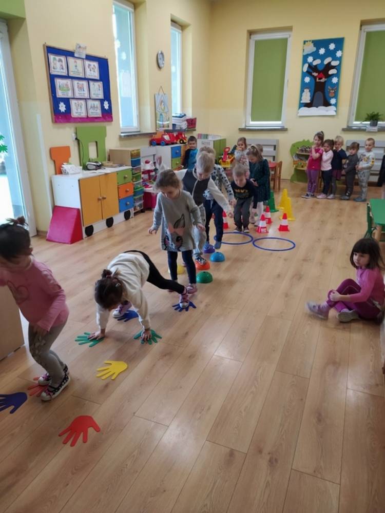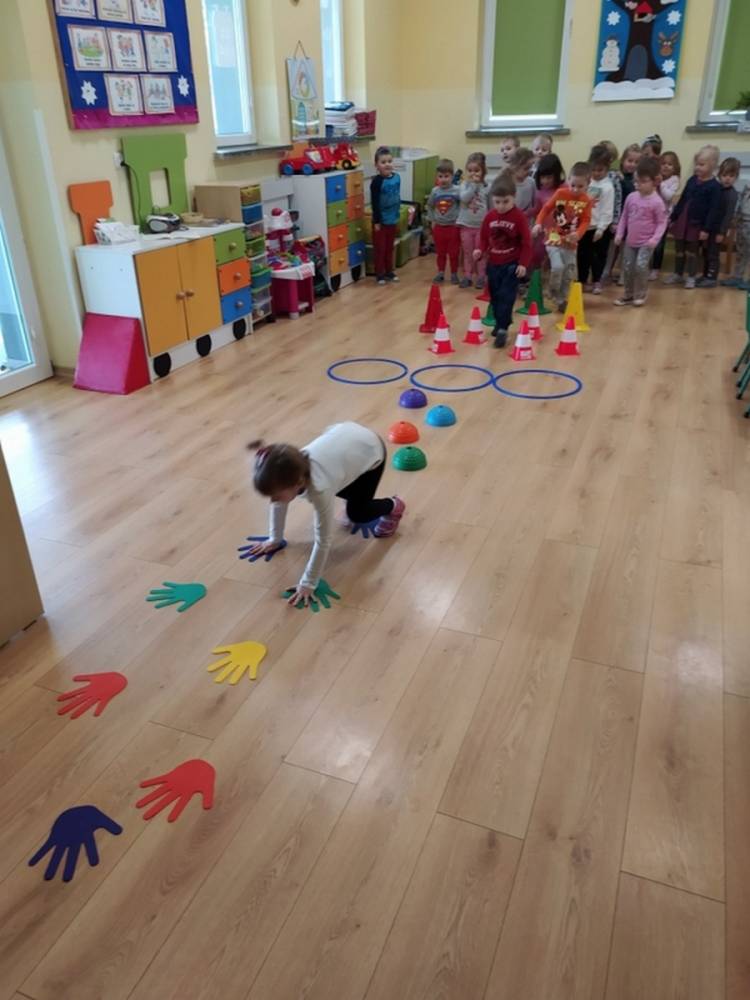 Kolejne zajęcia ruchowe w ramach Akcji „Zdrowo i Sportowo” odbyły się w dniu 25.02.2021. Dzieci tym razem odkrywały krajobrazy Polski. Ćwiczenia i zabawy ruchowe nawiązywały do ciekawych krain geograficznych. Były ćwiczenia wzmacniające mięśnie nóg i rąk, balans ciała i koordynację wzrokowo-ruchową. Każdy przedszkolak dzielnie pokonywał przeszkody i starał się ćwiczyć na miarę swoich możliwości.