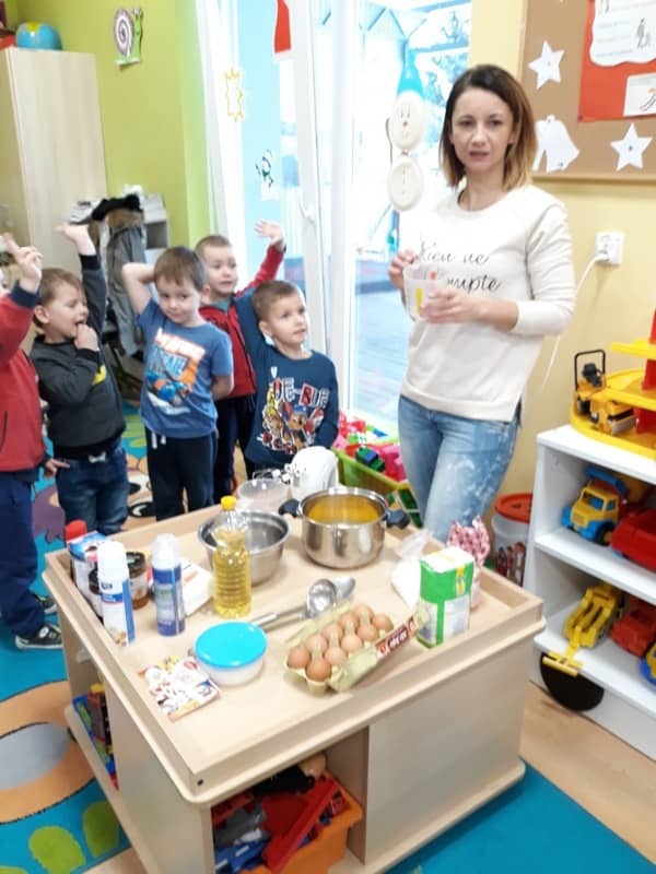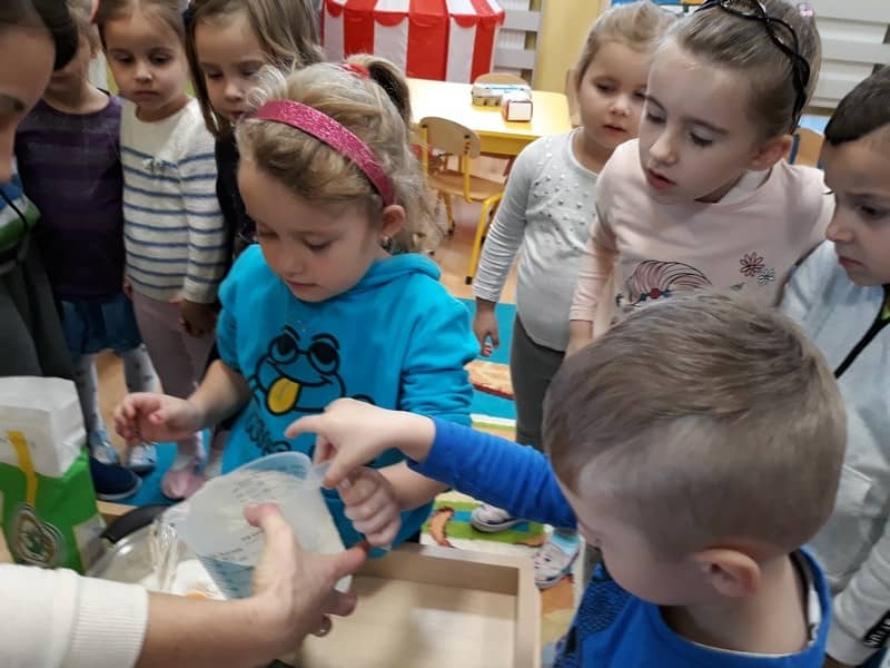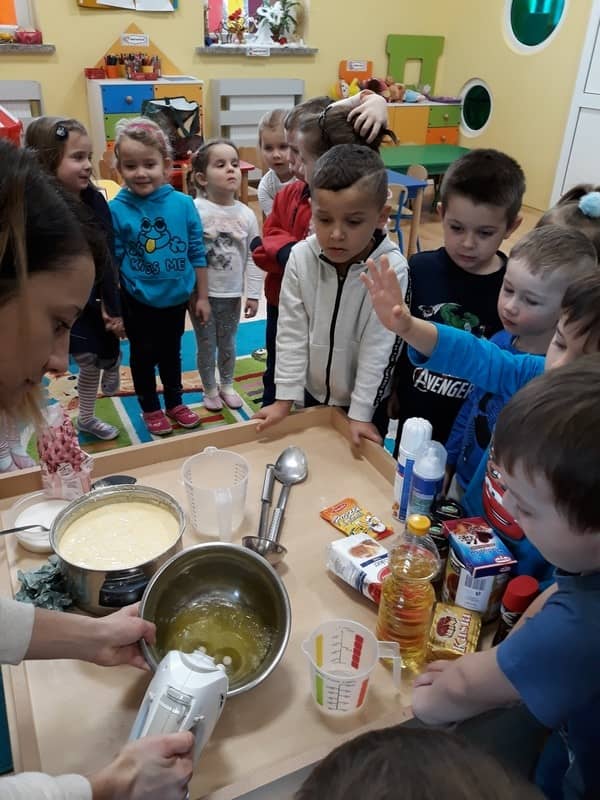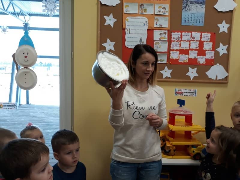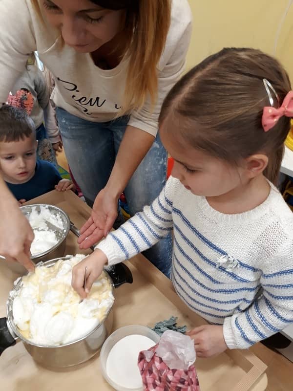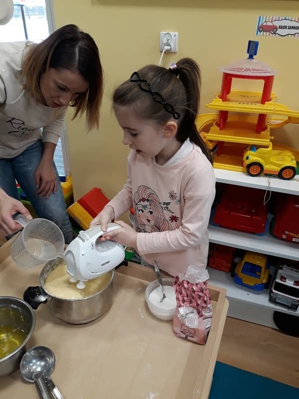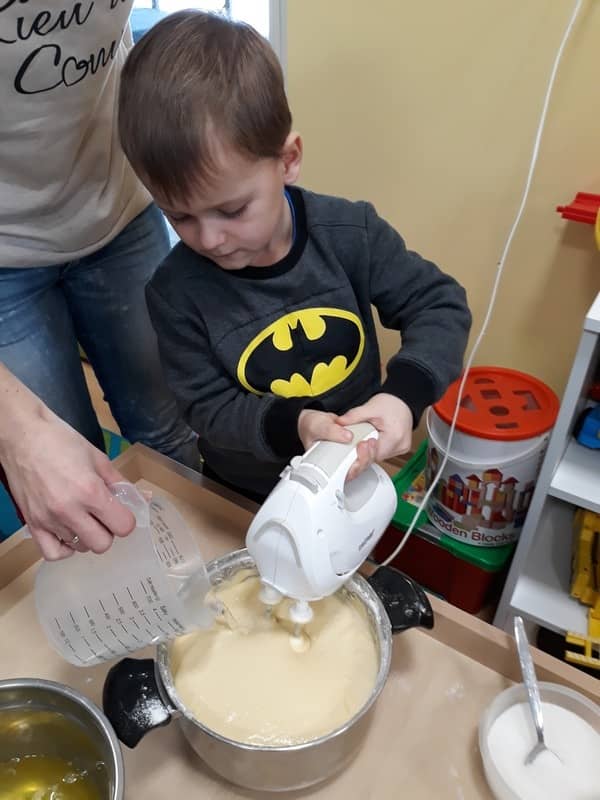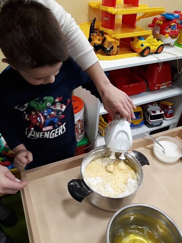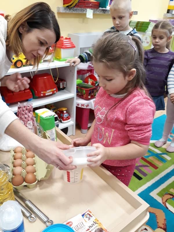 Dzieci z grupy „Tygryski” oraz „Pracowite pszczółki” zamieniły się w kucharzy. Przedszkolaki z pomocą pań przygotowały pyszne gofry. Dzieci chętnie pomagały w przygotowaniu ciasta na gofry, następnie oczekiwały aż gofry upieką się w gofrownicy. Przedszkolaki samodzielnie ozdabiały swoje gofry bitą śmietaną, cukrem pudrem, polewami oraz owocami. W tym dniu było bardzo pysznie.