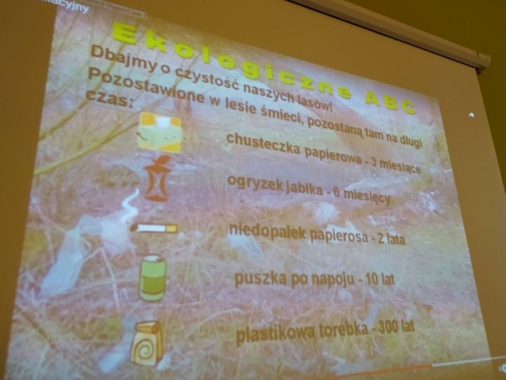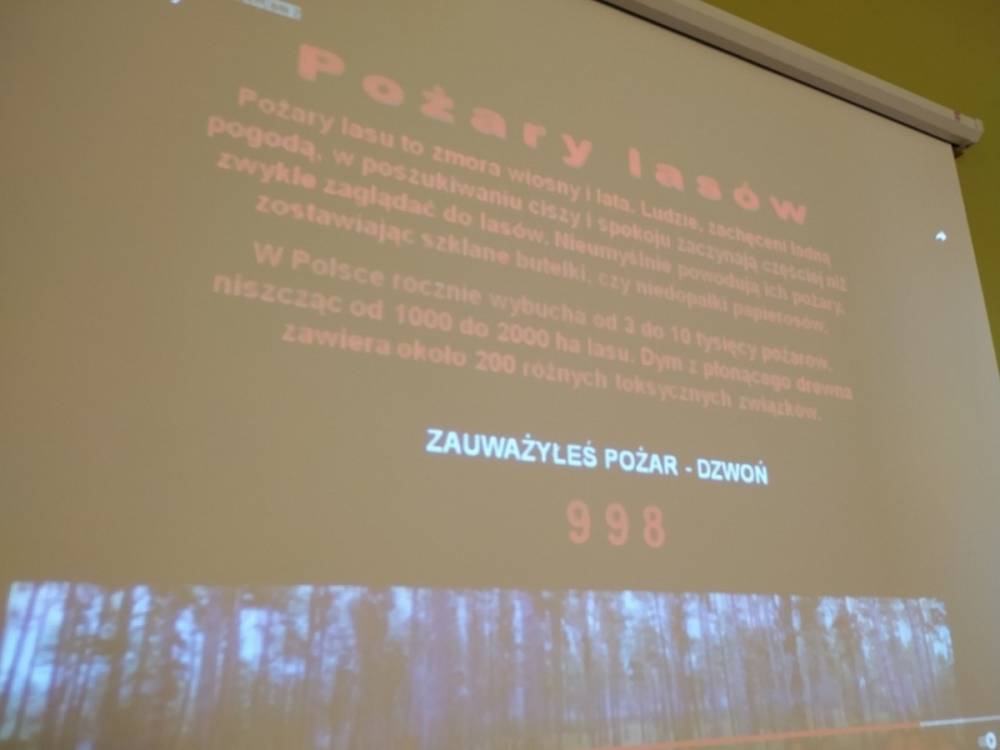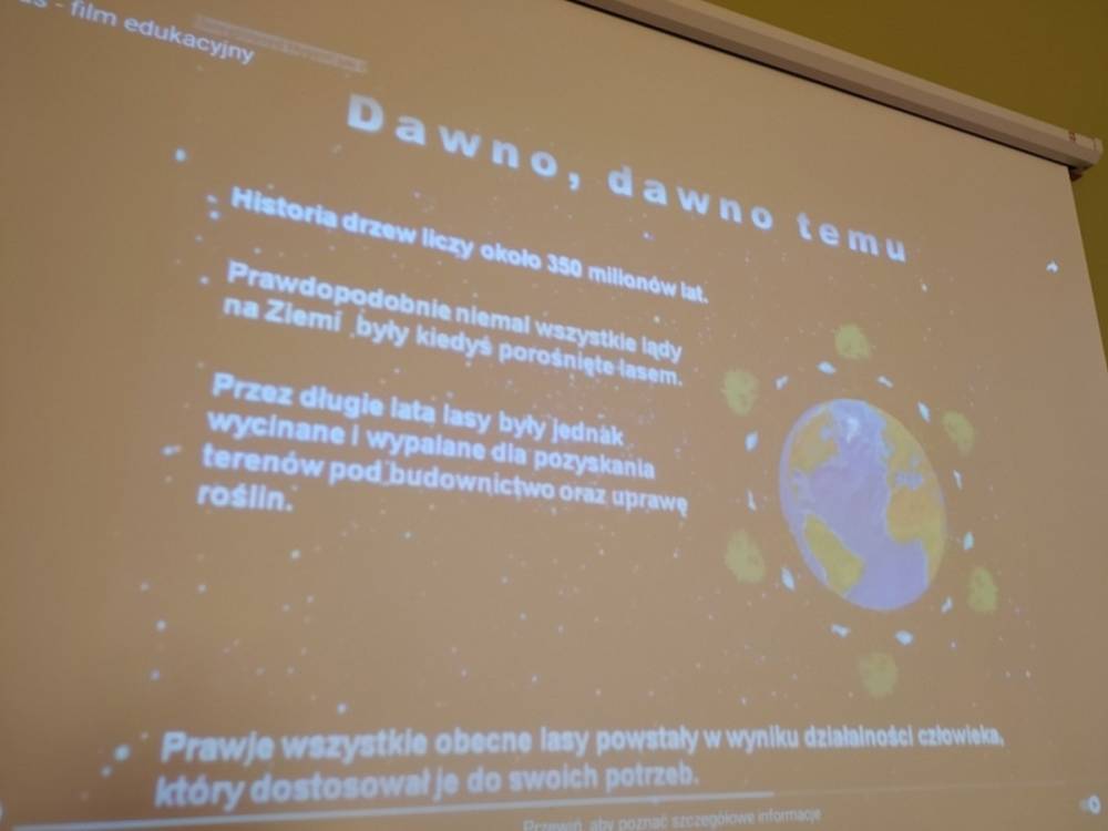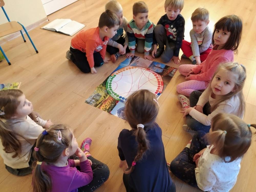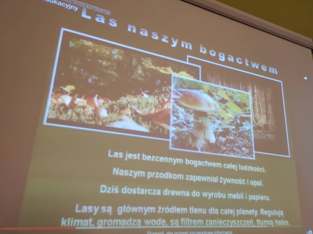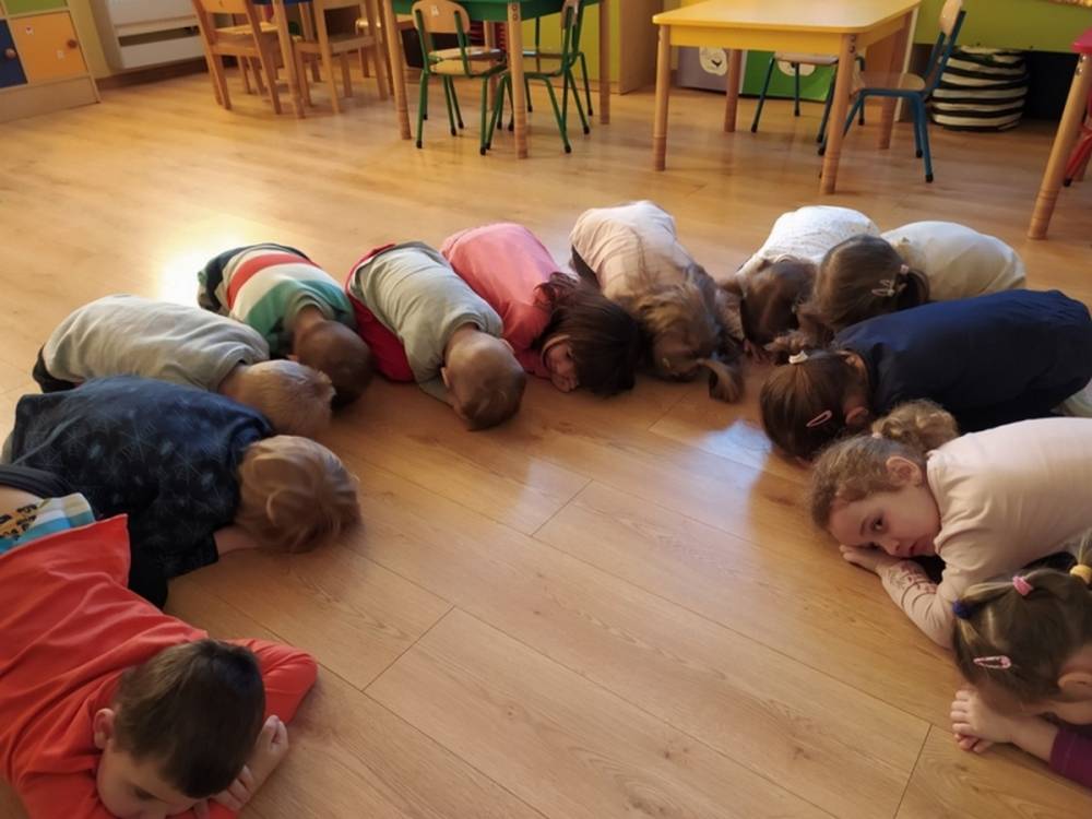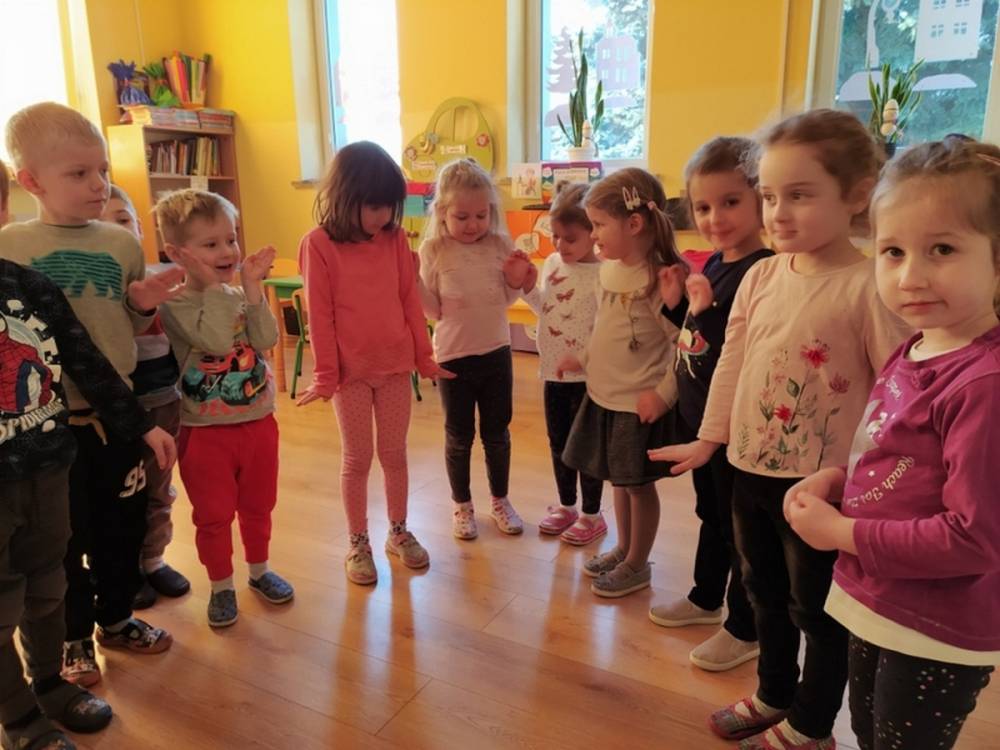 Las o każdej porze roku jest urokliwym miejscem dla odwiedzających go ludzi. Dlatego nie zważając na zimową pogodę, dzieci uczestniczyły w zajęciach poświęconym tematyce lasu. By docenić znaczenie lasu dzieci obejrzały interesujący film edukacyjny, poprzez który dowiedziały się, że las jest nie tylko domem zwierząt i roślin, ale także miejscem odpoczynku i krystalicznego powietrza. Ponadto dzieci zrozumiały, że las gwarantuje nam tlen, jest surowcem budowlanym i należy się o niego troszczyć. Dzieci wysłuchały również wiersza Pani Agnieszki Karcz pt. „Las”. Dodatkowo uczestniczyły w zabawie ruchowej i ilustrowały opowiadaną historię drzew. Na końcu podjęły artystyczne wyzwanie i w grupach malowały duże arkusze prezentujące kontury lasu i jego mieszkańców.