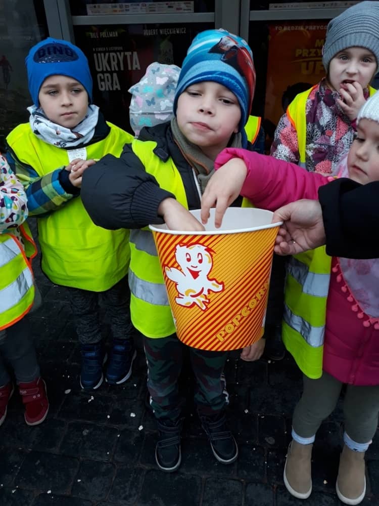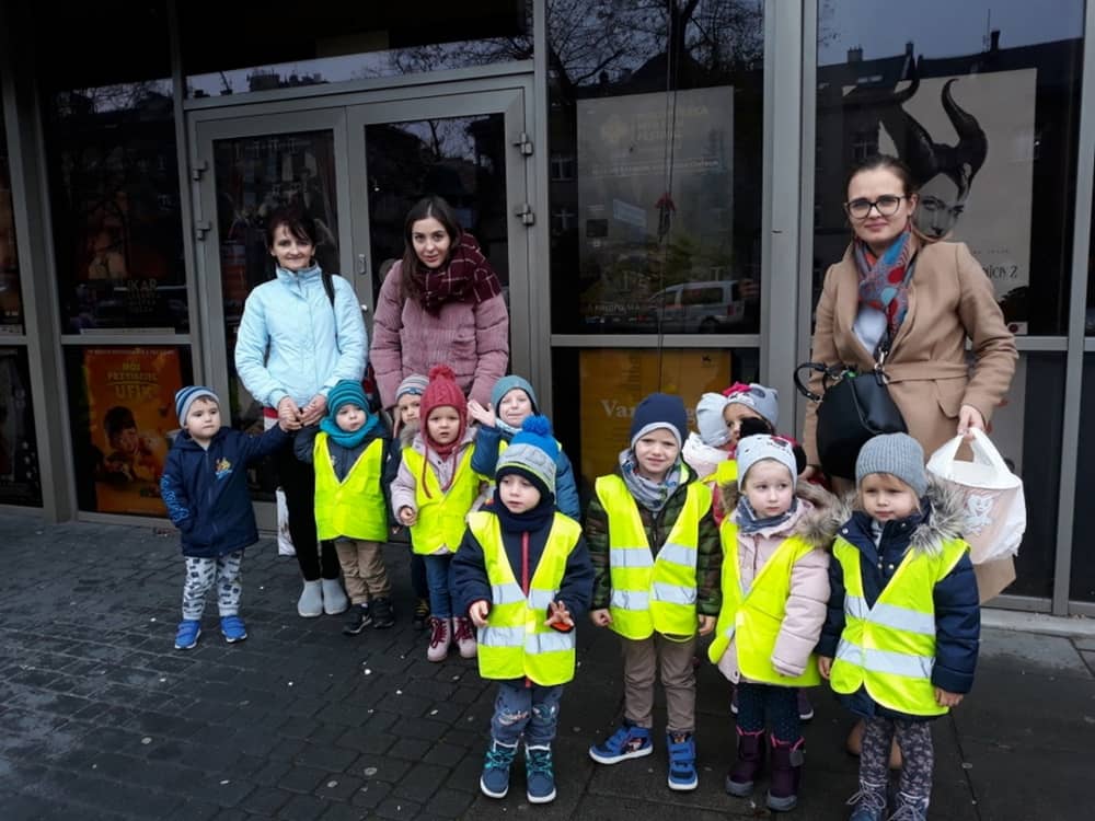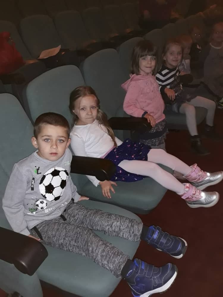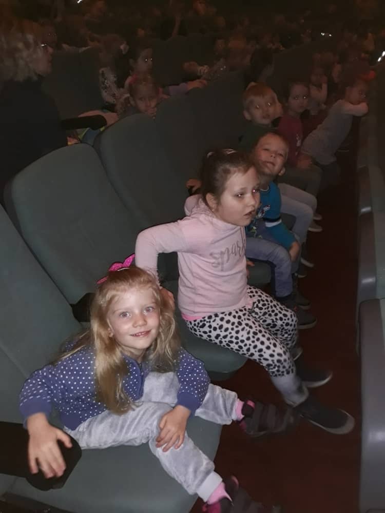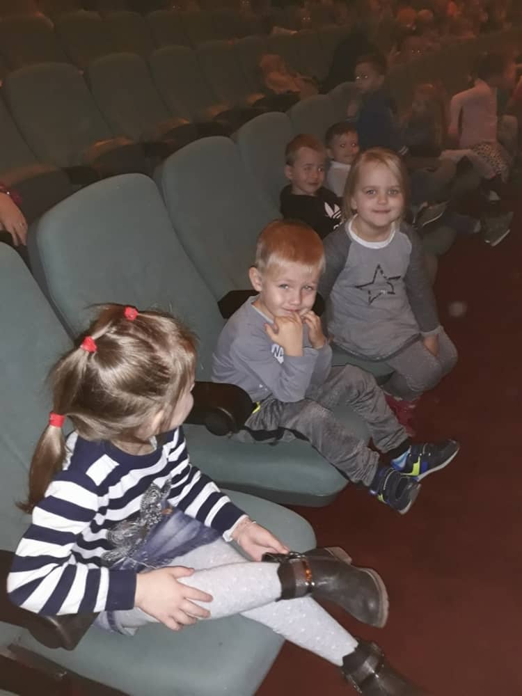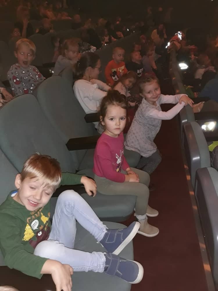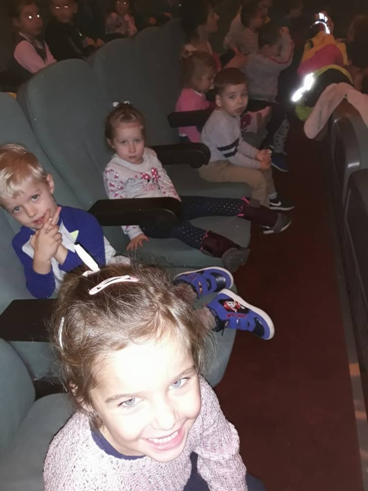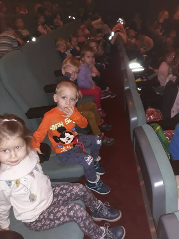 W dniu 13.11.2019 wybraliśmy się całym przedszkolem na wycieczkę do Kina Kijów. Celem naszej podróży był udział w spektaklu teatralnym pt. „Doktor i jego zwierzęta”. Gdy bezpiecznie dotarliśmy do kina, wygodnie zasiedliśmy na widowni i wcieliliśmy się rolę widza. Spektakl był pełen emocji i humoru. Dzieci z zainteresowanie oglądały przygody głównego bohatera. Na końcu aktorzy wspólnie z widownią śpiewali piosenki i rymowanki, które były elementem przedstawienia. Tuż przed wyjazdem do przedszkola, czekała na dzieci wielka niespodzianka- słona przekąska- popcorn. Wszyscy w dobrym nastroju wróciliśmy do przedszkola, w który niebawem zjedliśmy smaczny obiad.