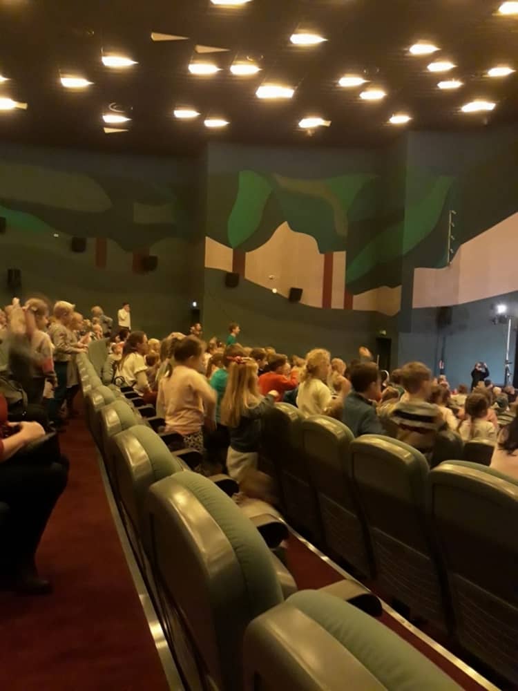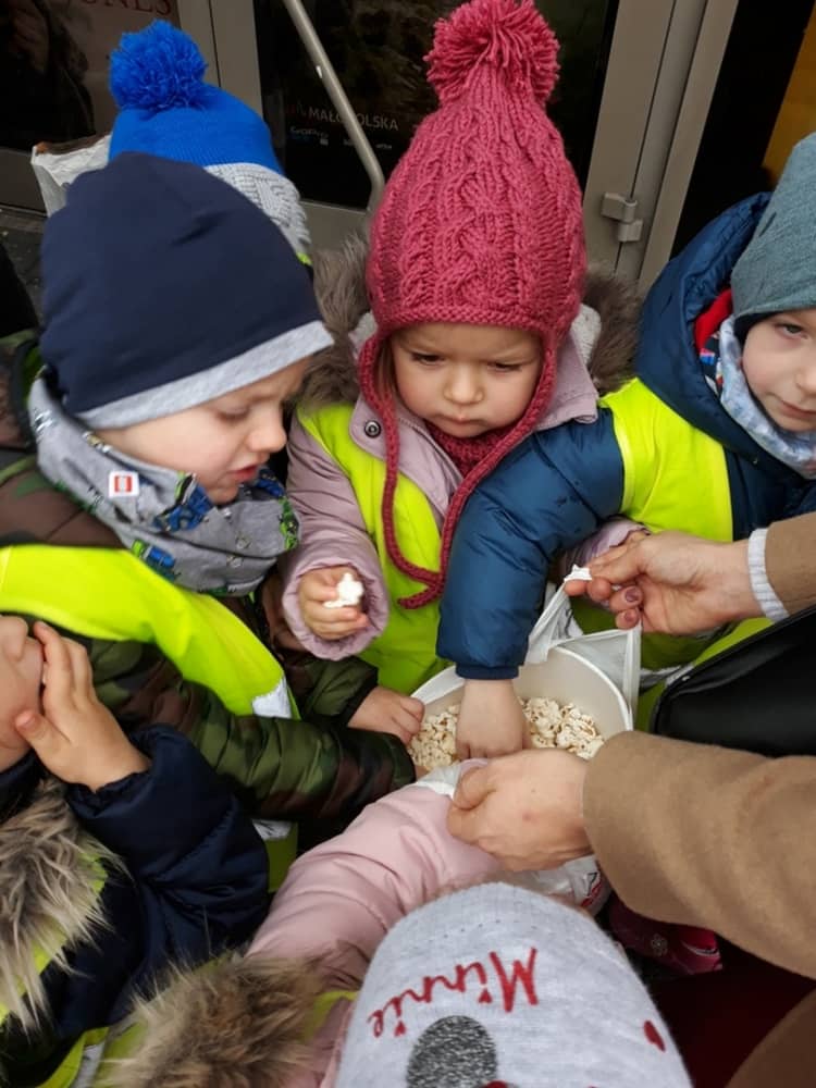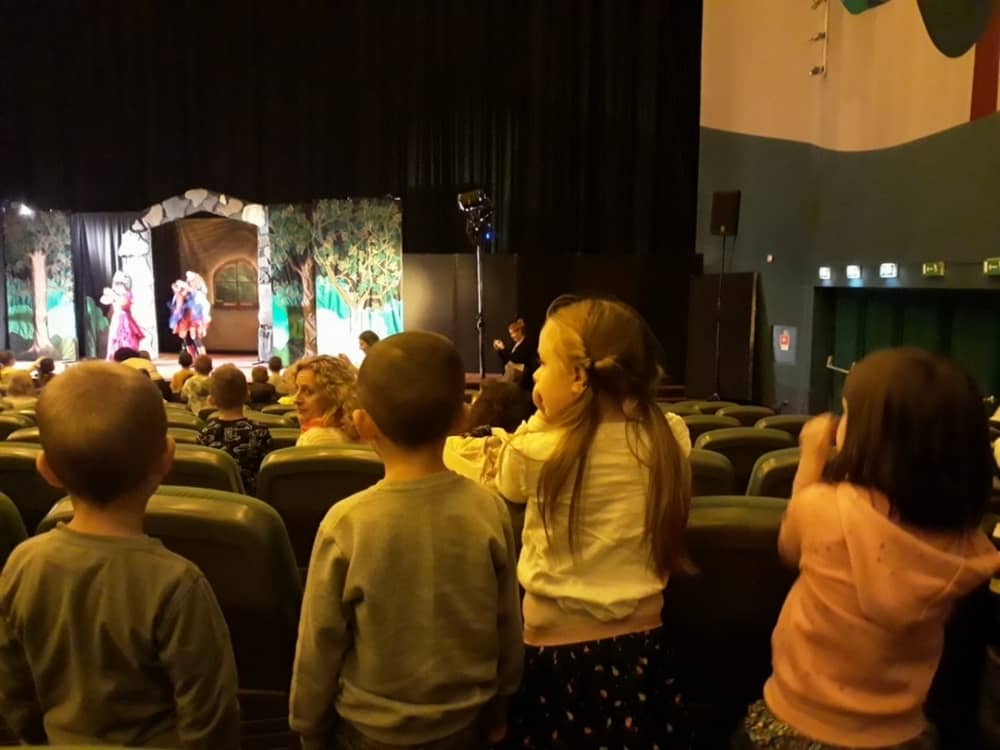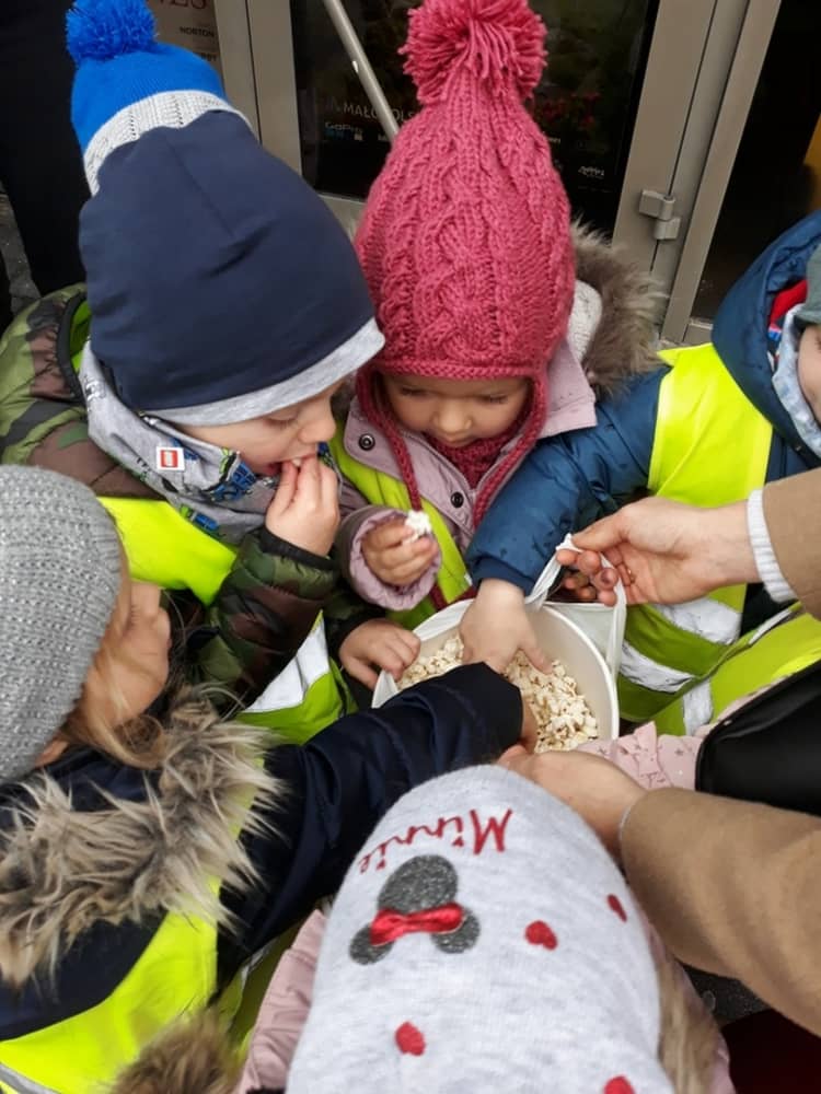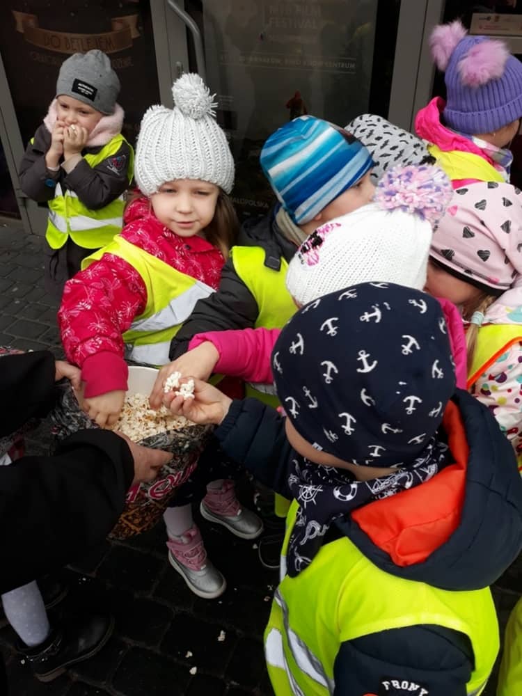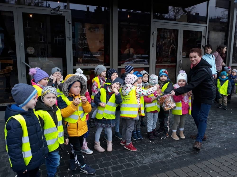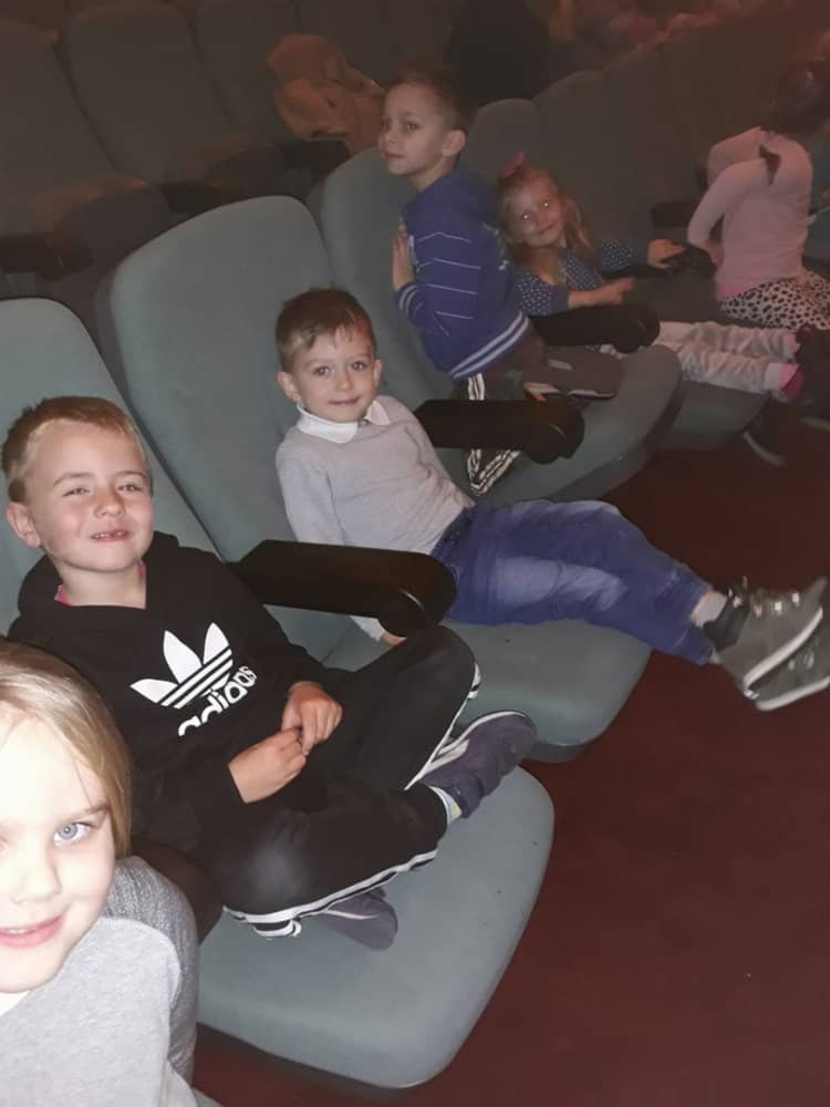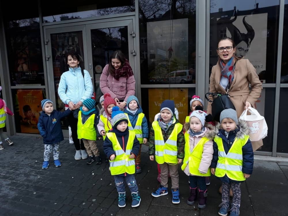 W dniu 13.11.2019 wybraliśmy się całym przedszkolem na wycieczkę do Kina Kijów. Celem naszej podróży był udział w spektaklu teatralnym pt. „Doktor i jego zwierzęta”. Gdy bezpiecznie dotarliśmy do kina, wygodnie zasiedliśmy na widowni i wcieliliśmy się rolę widza. Spektakl był pełen emocji i humoru. Dzieci z zainteresowanie oglądały przygody głównego bohatera. Na końcu aktorzy wspólnie z widownią śpiewali piosenki i rymowanki, które były elementem przedstawienia. Tuż przed wyjazdem do przedszkola, czekała na dzieci wielka niespodzianka- słona przekąska- popcorn. Wszyscy w dobrym nastroju wróciliśmy do przedszkola, w który niebawem zjedliśmy smaczny obiad.