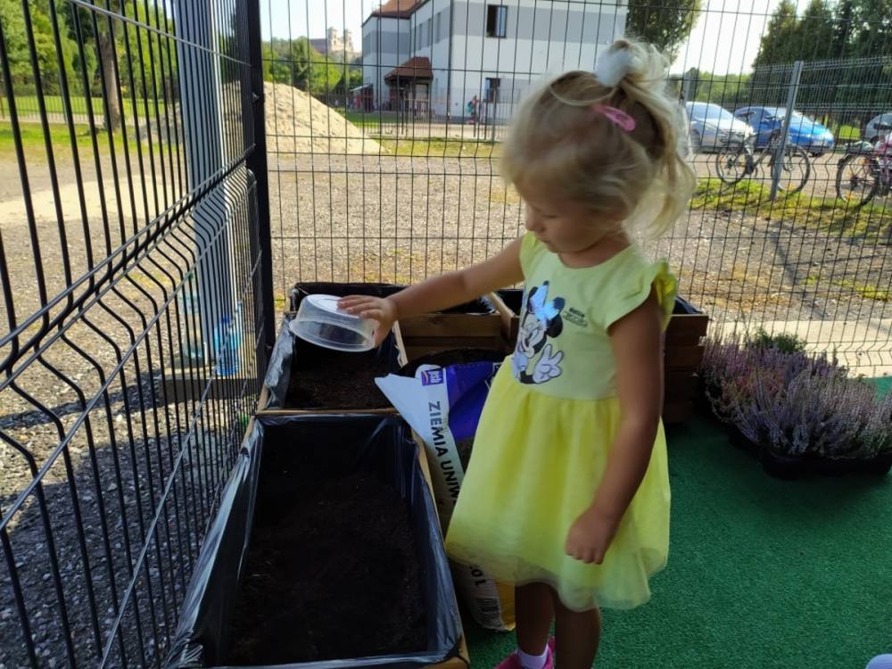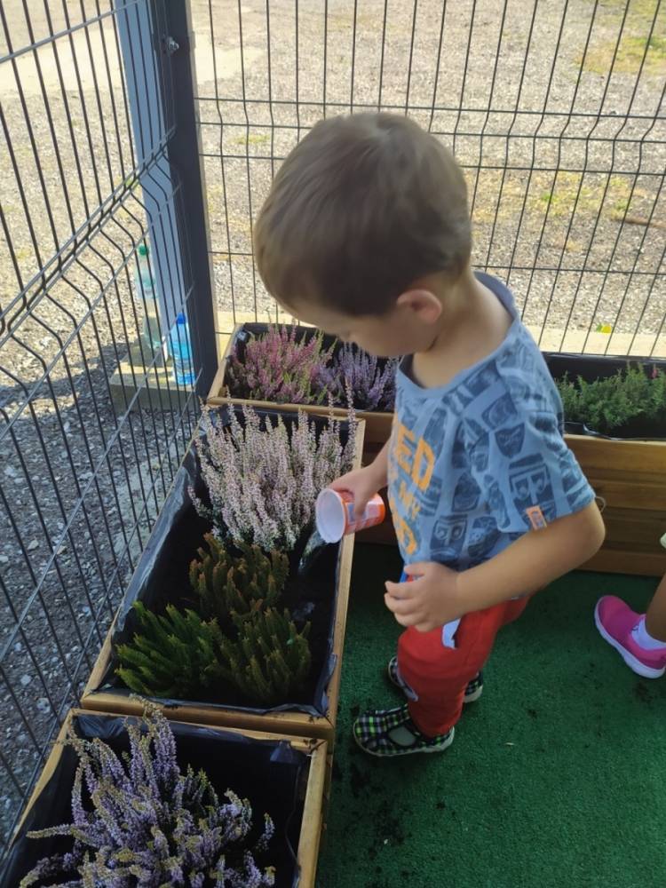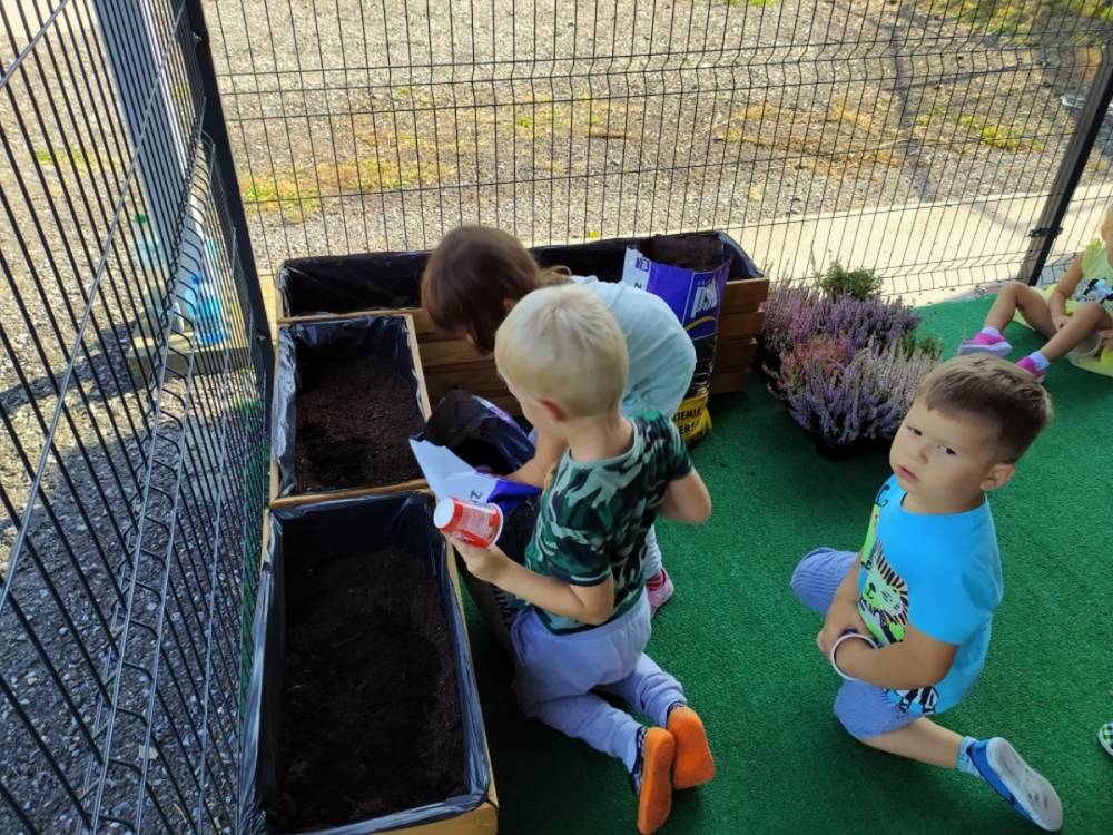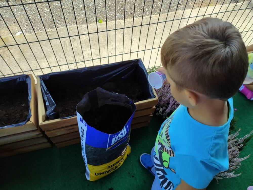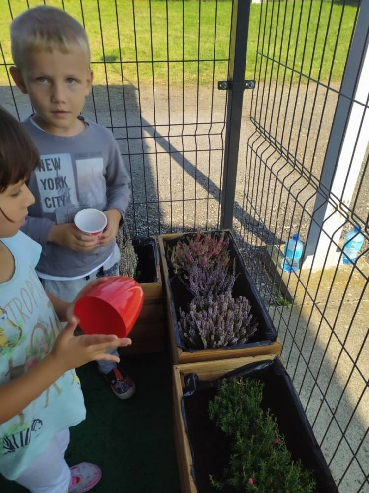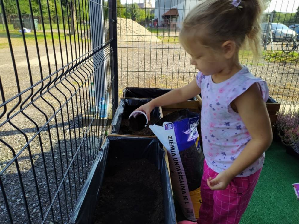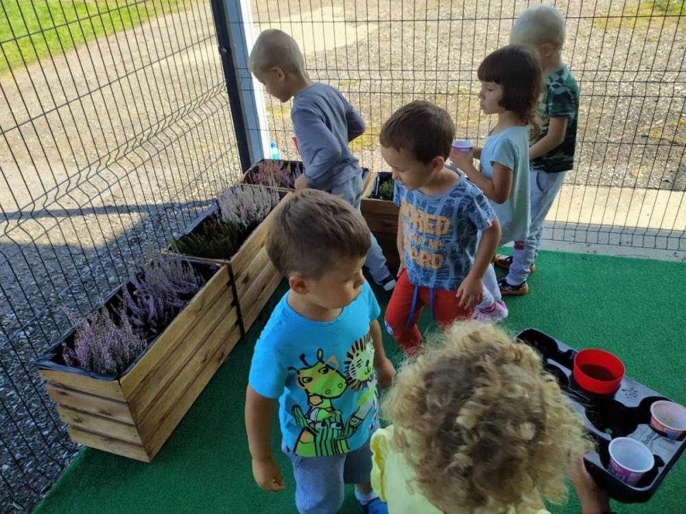 Nasz przedszkolny taras, nazywany przez dzieci „zieloną trawką”, zyskał nowych jesiennych mieszkańców. W dniu 14.09.2020 Przedszkolaki wspólnie z nauczycielkami, w godzinach popołudniowych, przygotowały niespodziankę dla wszystkich dzieci- mini ogródek pełen barwnych wrzosów i wrzośców. Dzieci dzielnie pracowały, dosypując ziemię, a na końcu podlewając rośliny. Radości i satysfakcji z dokonanych działań było, co niemiara. Cieszymy się z naszego kawałeczka zielni i wierzymy, że będzie w nim zawsze tak kolorowo.