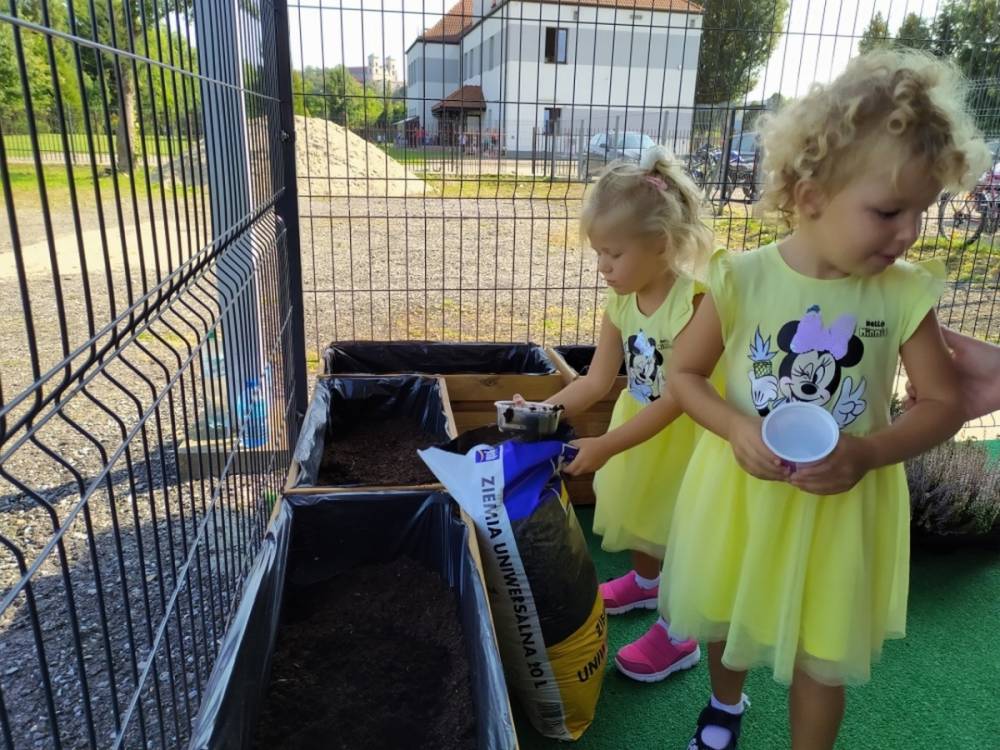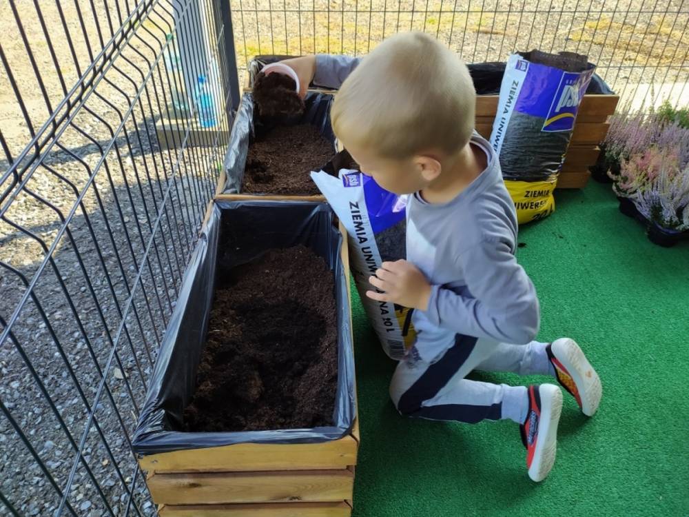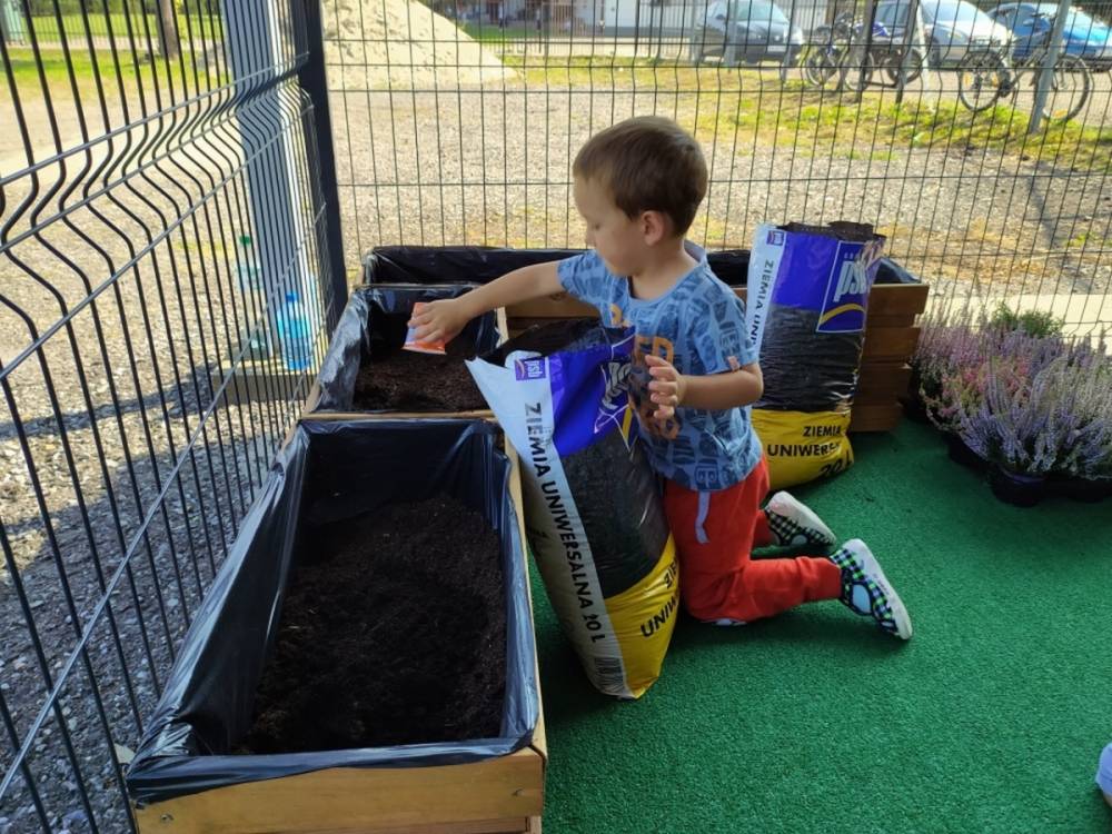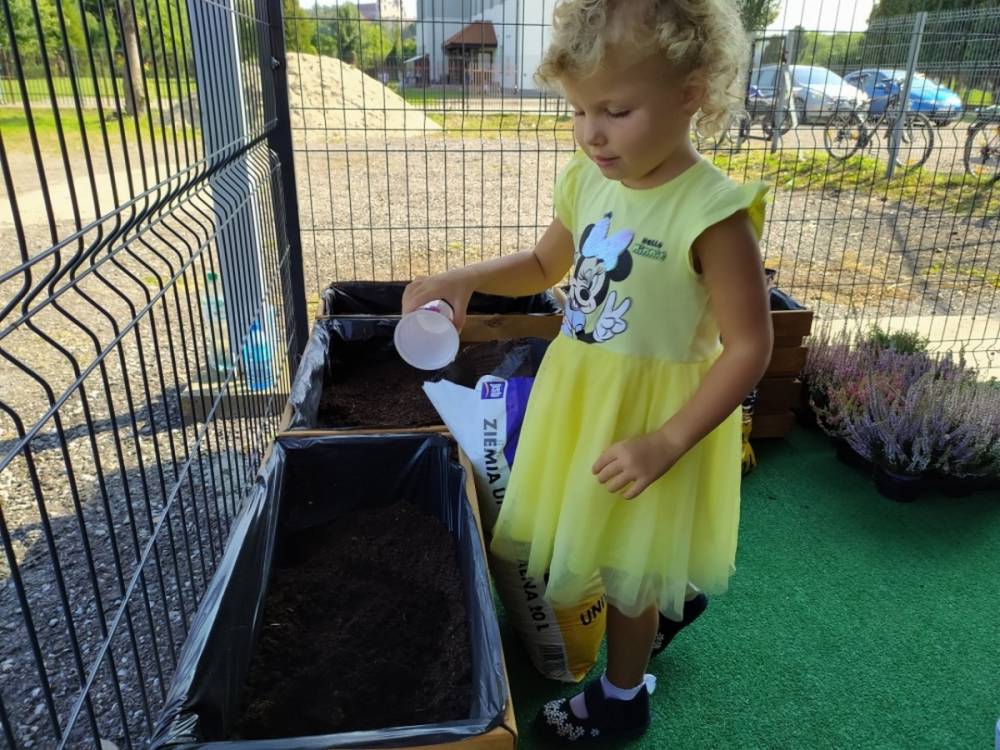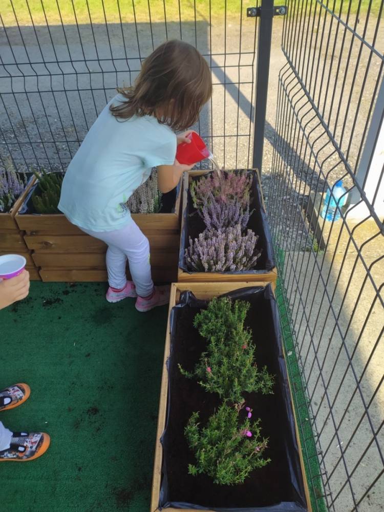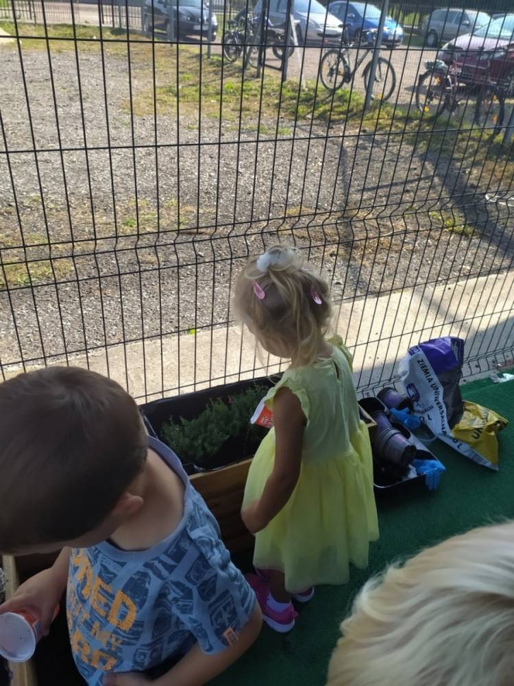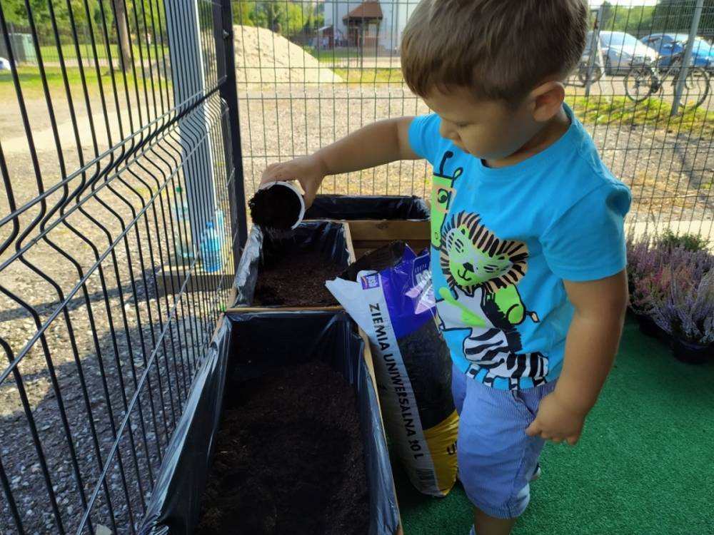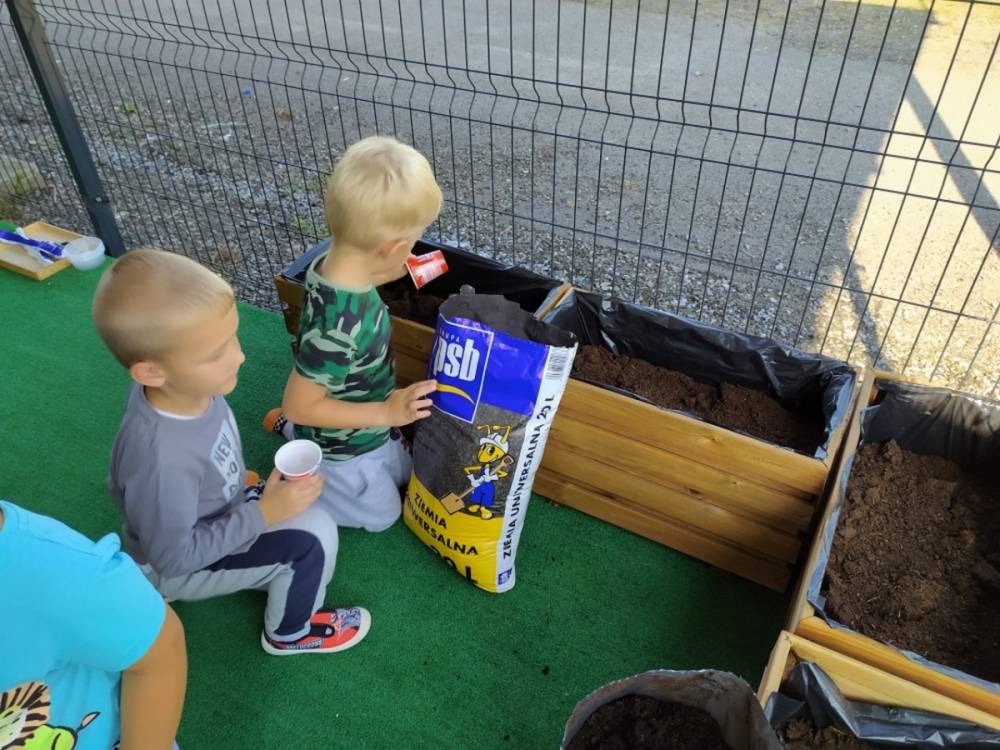 Nasz przedszkolny taras, nazywany przez dzieci „zieloną trawką”, zyskał nowych jesiennych mieszkańców. W dniu 14.09.2020 Przedszkolaki wspólnie z nauczycielkami, w godzinach popołudniowych, przygotowały niespodziankę dla wszystkich dzieci- mini ogródek pełen barwnych wrzosów i wrzośców. Dzieci dzielnie pracowały, dosypując ziemię, a na końcu podlewając rośliny. Radości i satysfakcji z dokonanych działań było, co niemiara. Cieszymy się z naszego kawałeczka zielni i wierzymy, że będzie w nim zawsze tak kolorowo.