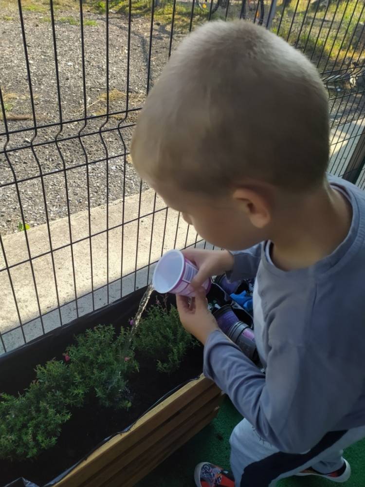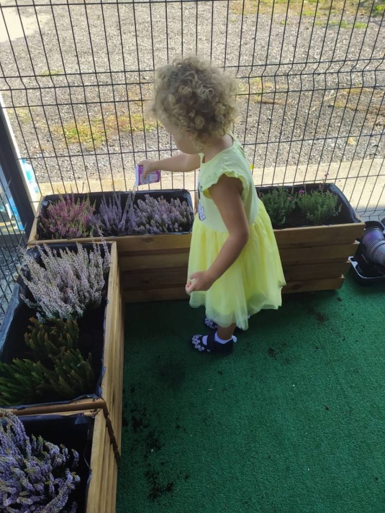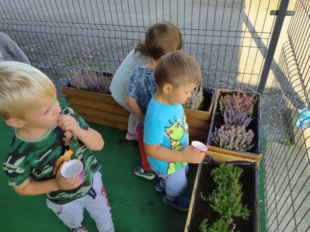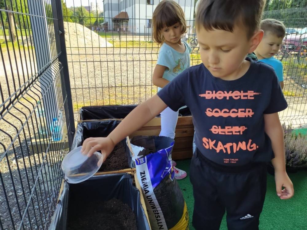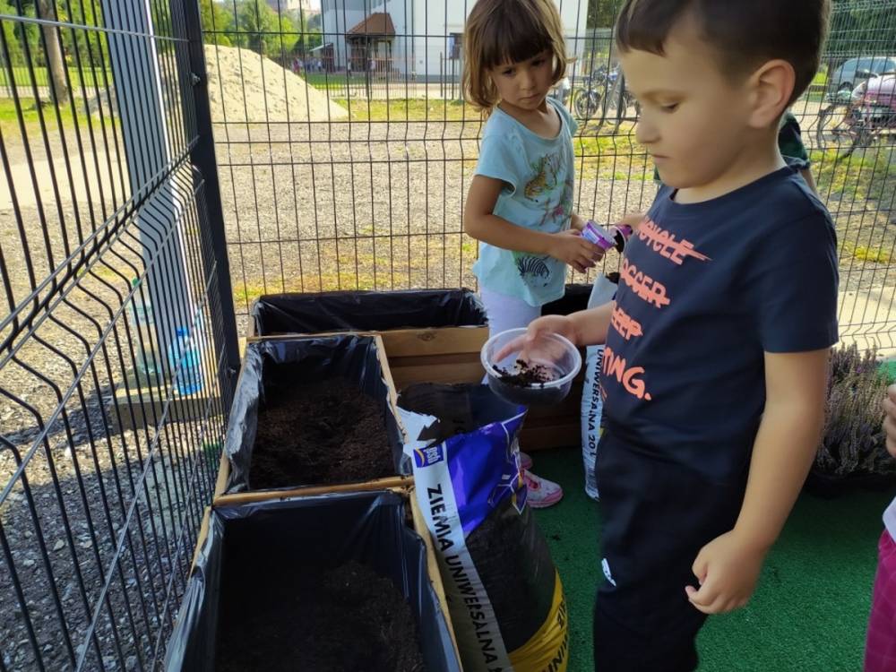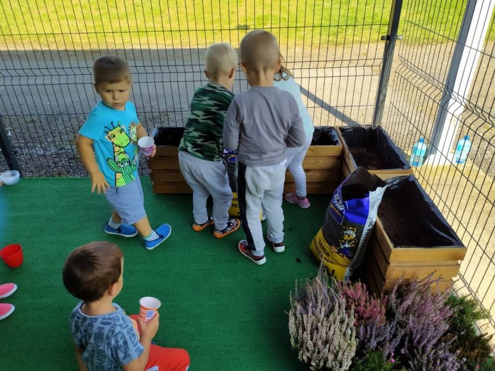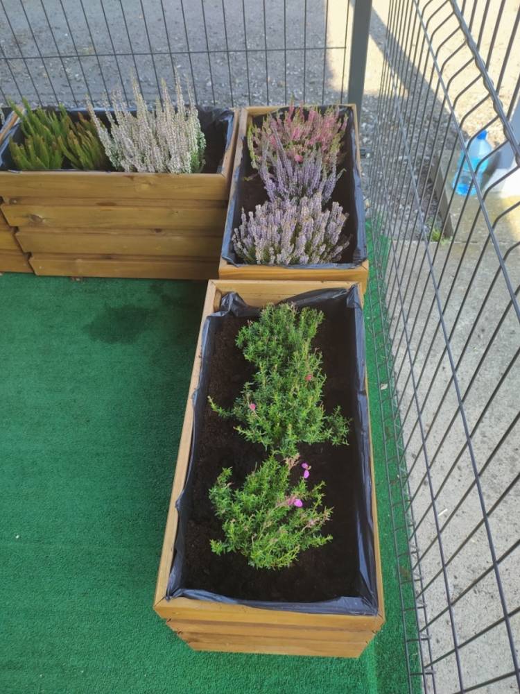 Nasz przedszkolny taras, nazywany przez dzieci „zieloną trawką”, zyskał nowych jesiennych mieszkańców. W dniu 14.09.2020 Przedszkolaki wspólnie z nauczycielkami, w godzinach popołudniowych, przygotowały niespodziankę dla wszystkich dzieci- mini ogródek pełen barwnych wrzosów i wrzośców. Dzieci dzielnie pracowały, dosypując ziemię, a na końcu podlewając rośliny. Radości i satysfakcji z dokonanych działań było, co niemiara. Cieszymy się z naszego kawałeczka zielni i wierzymy, że będzie w nim zawsze tak kolorowo.