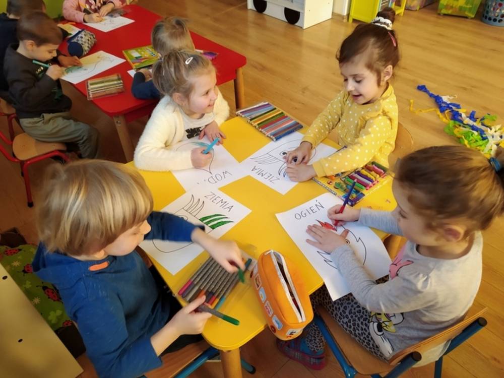 Dziś przedszkolaki poznały niezwykłe cztery żywioły Ziemi. Pomógł im w tym wiersza Pani Agnieszki Karcz. Rozmowa na temat jego treści pozwoliła odkryć i scharakteryzować cztery żywioły. Dopełnieniem był pokaz multimedialny ukazujący siłę żywiołów. Zabawa ruchowa przysporzyła dużo radości i zmotywowała do ekspresji. Zwieńczeniem zajęć była praca plastyczna w oparciu o różne materiały plastyczne. Żywioły były dla dzieci inspiracją do pracy twórczej.