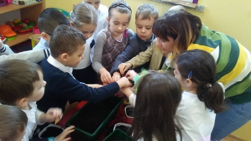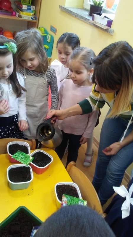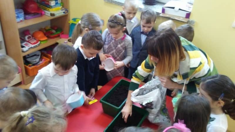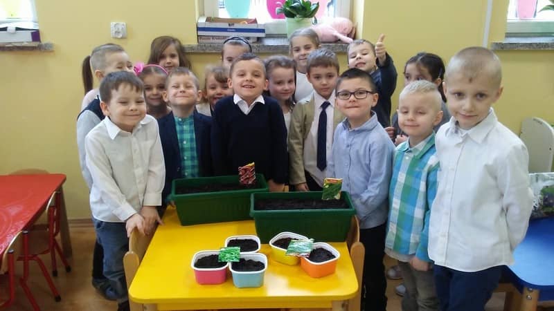 W związku z nadejściem kalendarzowej wiosny starszaki rozpoczęły wiosenne przebudzenie w kącikach przyrody - pomagały i same sadziły nasiona ziół, dymkę na szczypiorek, rzodkiewkę i siały kwiatki. Wszystkie dzieci mogły brać czynny udział w sadzeniu i podlewaniu nasion. Kącik przyrody jest dla dzieci doskonałym miejscem do prowadzenia częstych badań, eksperymentów i obserwacji. Dzięki bezpośredniej obserwacji dzieci mają możliwość, poznania cyklu rozwoju roślin. Ponadto uczą się systematycznej pielęgnacji podczas pełnienia codziennych dyżurów.