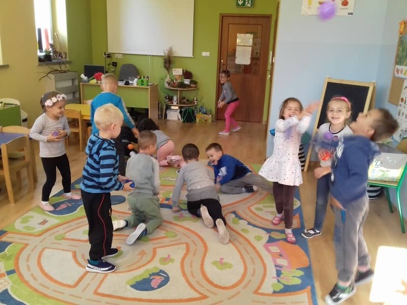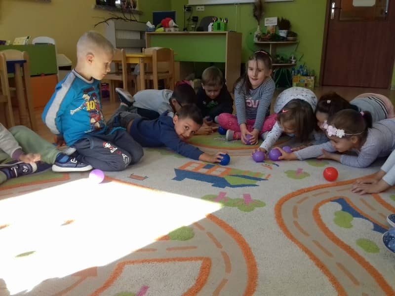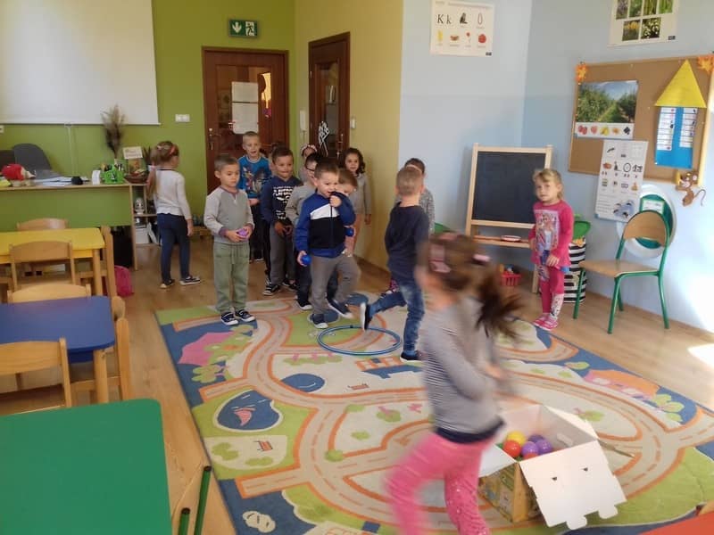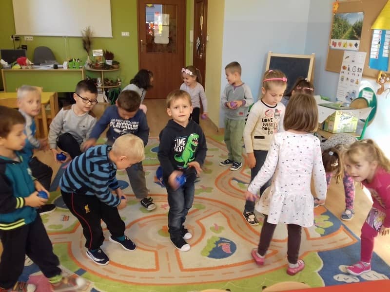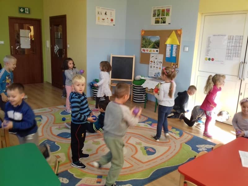 W dniu 2.10 w grupie "Pracowitych Pszczółek"- odbyła się gimnastyka z użyciem piłeczek. Dzieci turlały, rzucały, podawały, układały piłeczki i współpracowały ze sobą w trakcie zabaw. Ćwiczyły celność rzutu i sprawność ręki, a także refleks. Śmiechu było co nie miara.