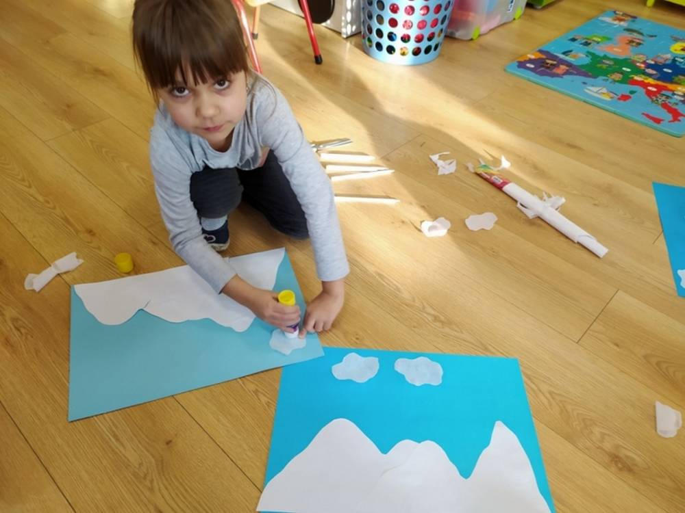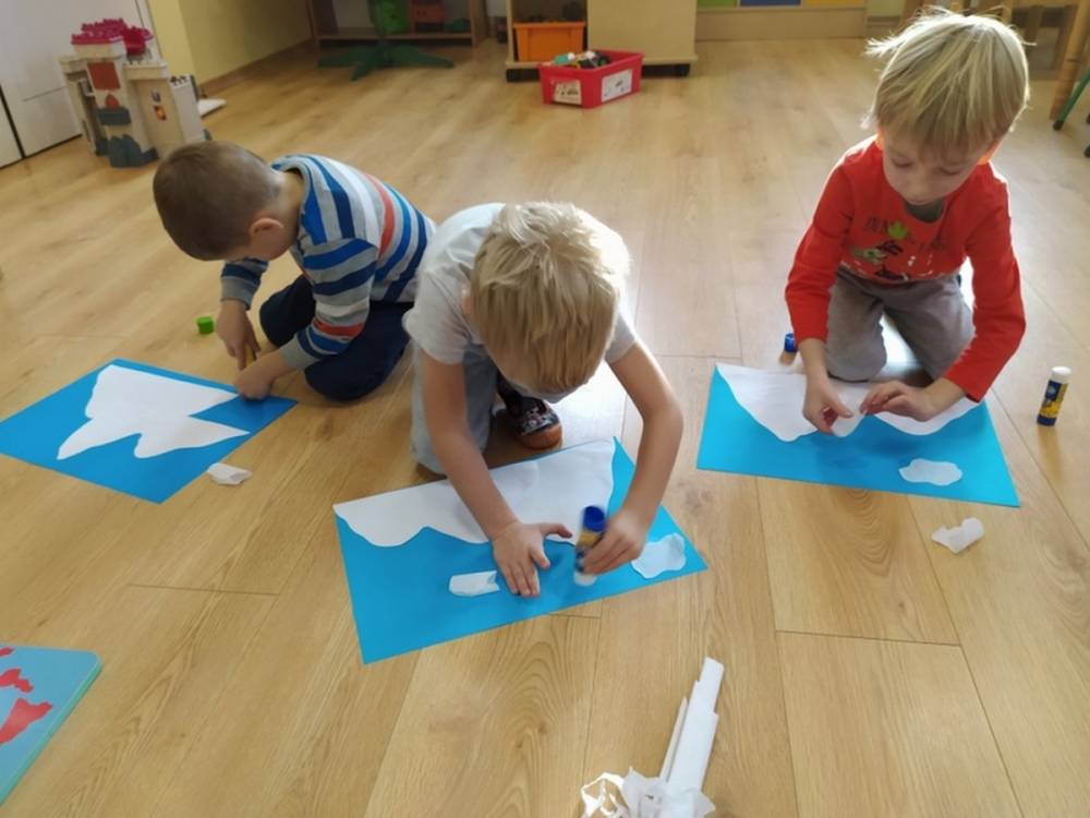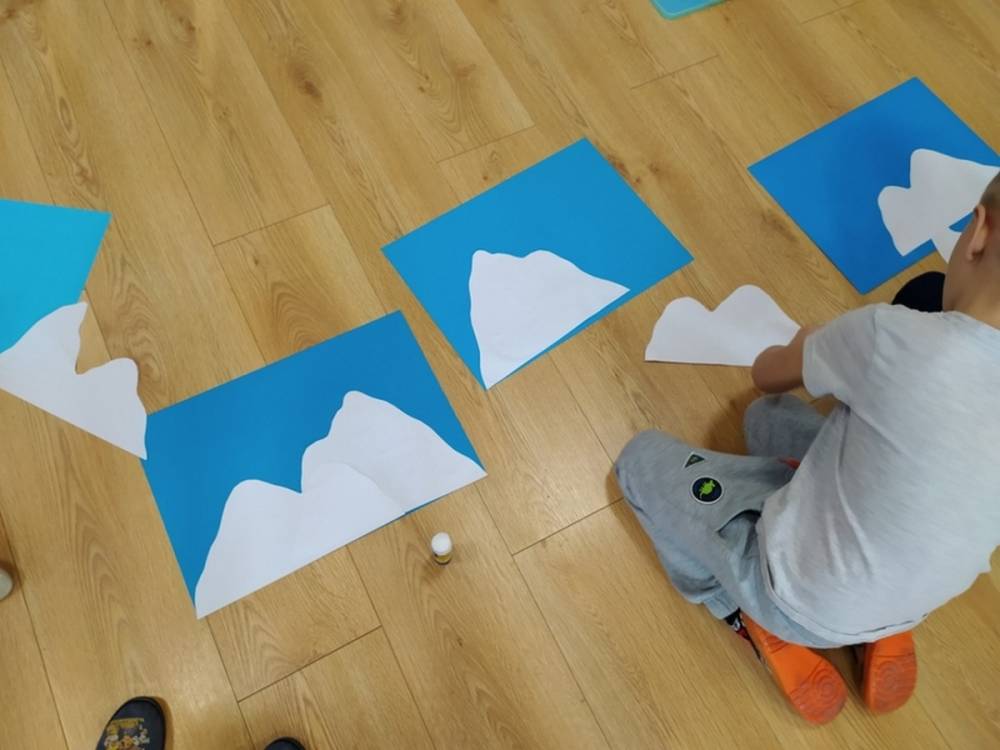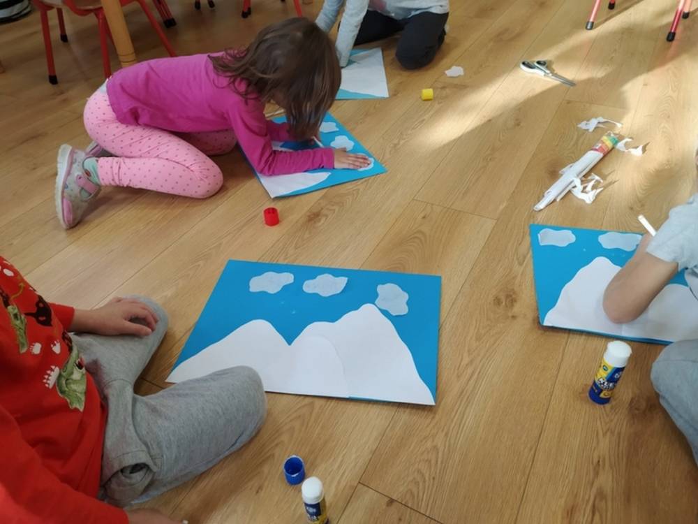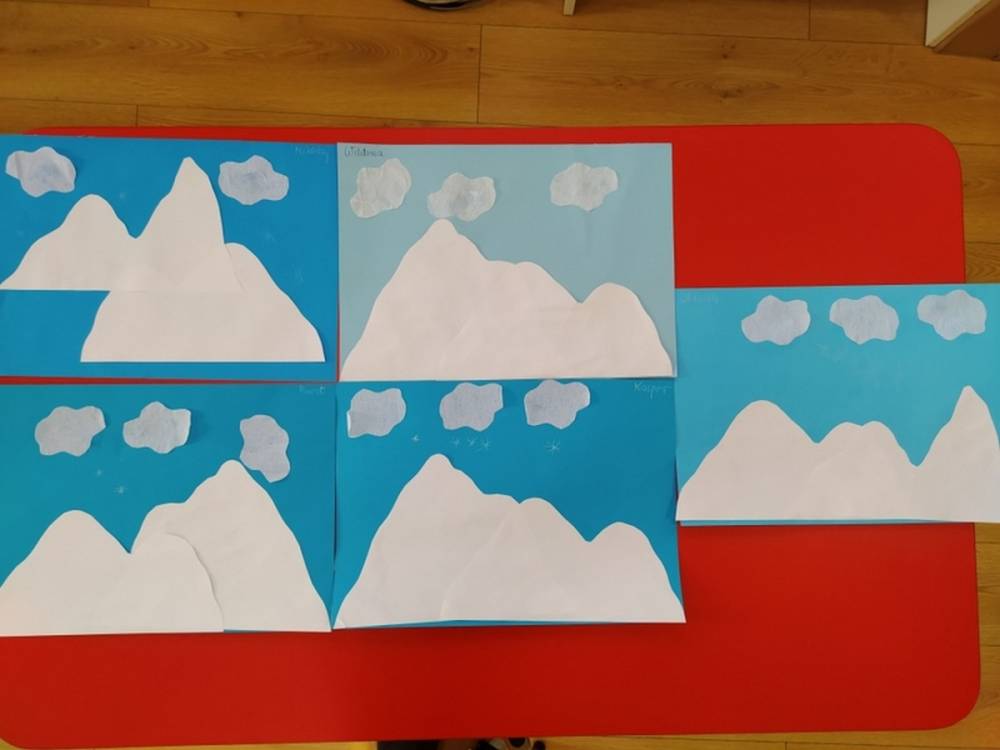 W dniu 03.12.2020 odbyły się zajęcia w ramach realizacji programu „Przyroda to przygoda” autorstwa nauczycielki Agnieszki Karcz. Dzieci zapoznane zostały z wierszem Pani Agnieszki pt. „Piękno gór”. Następnie miały możliwość dostrzec uroki i znaczenie gór w świecie przyrody. Wcieliły się także w role przewodników górskich w ramach zabawy ruchowej. Na końcu wykonały samodzielnie piękne prace plastyczne, ukazujące ośnieżone górskie szczyty.