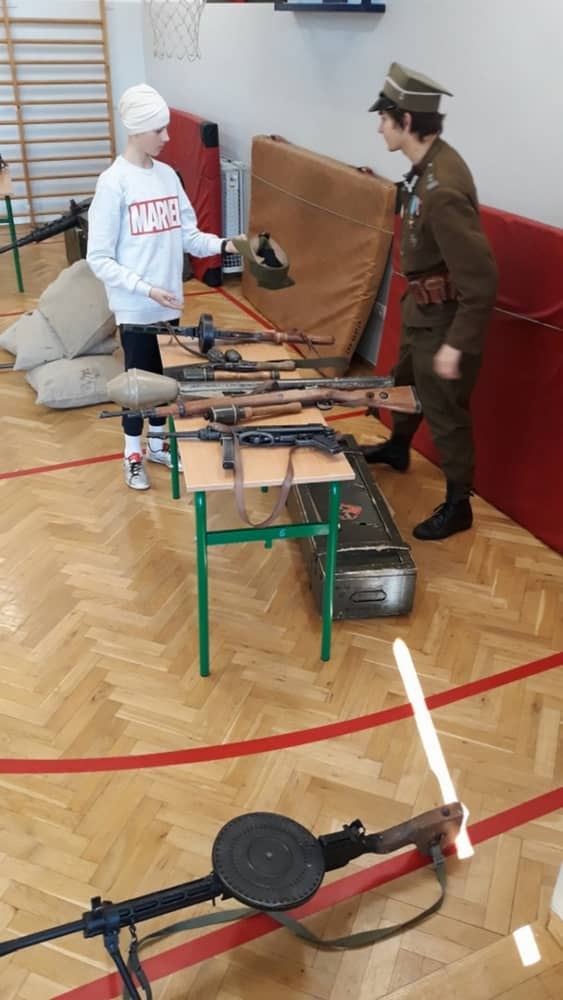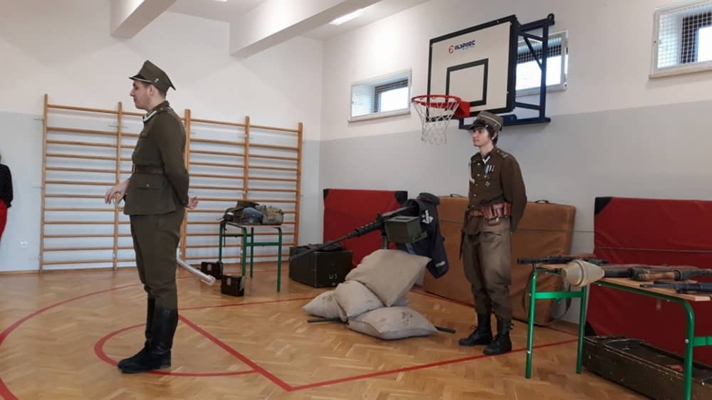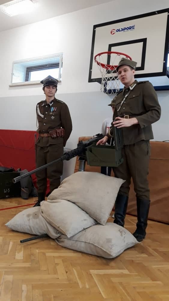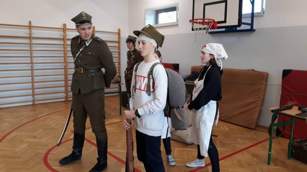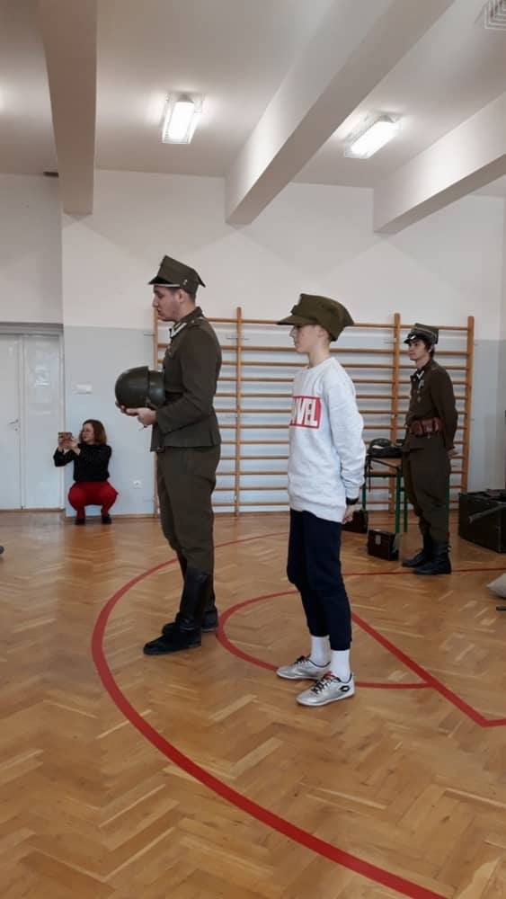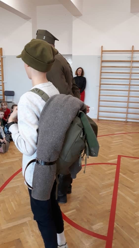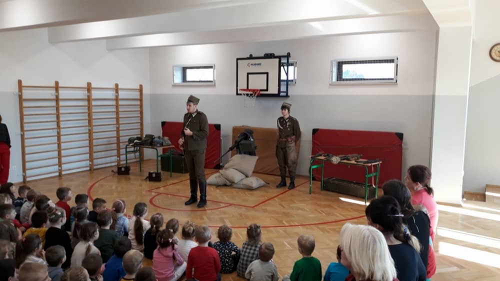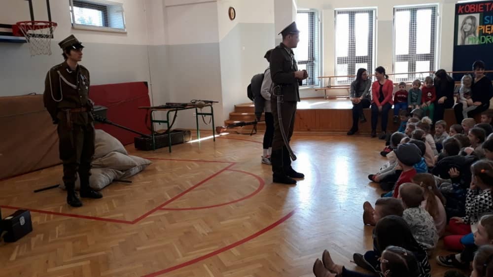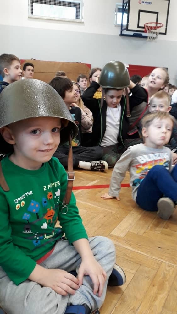W dniu 05.03.2020 przedszkolaki wzięły udział w pokazie historycznym zorganizowanym w szkole. Wysłuchały bardzo dużo informacji dotyczących historii wojska polskiego, konfliktów zbrojnych w trakcie pierwszej i drugiej wojny światowej. W ramach pokazu zaprezentowano broń, mundury, ekwipunek żołnierski. Dzieci z zainteresowaniem słuchały opowieści i angażowane były do czynnego udziału w zajęciach. Zapewne taka lekcja historii będzie przez nich zapamiętana.