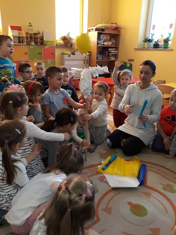 21 marca przedszkolaki z grupy „Tygryski” i „Pracowite pszczółki” powitały nową porę roku -Wiosnę. Dzieci wspólnie z paniami wykonały kukłę Marzanny , następnie piosenkami oraz wierszykiem powitały Wiosnę. Po zabawie przedszkolaki z paniami wyruszyły wesołym pochodem na spacer żeby świętować nową porę roku .