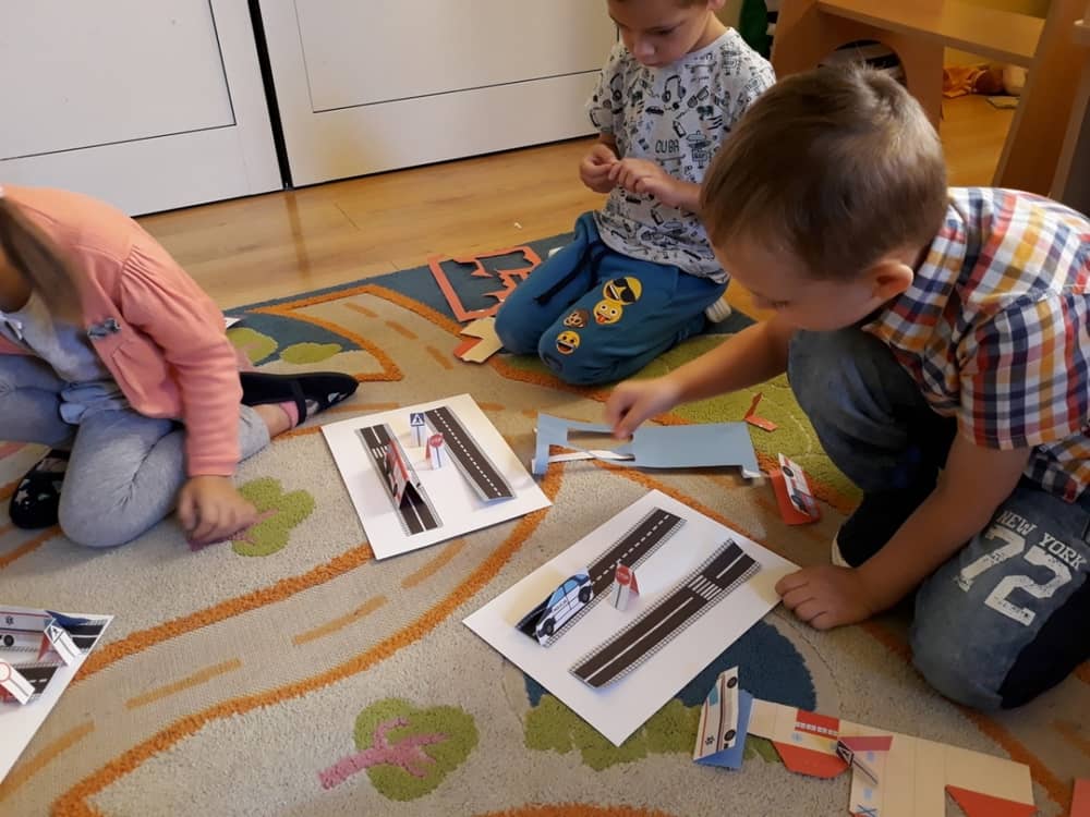 W drugim tygodniu września dzieci z grupy „Pracowitych Pszczółek” poznawały na zajęciach różne zawody m.in. zawód lekarza, ratownika medycznego, strażaka i policjanta. Wszystkie te zawody służą dobru i bezpieczeństwu ludzi i wiążą się z ogromną odpowiedzialnością. Dzieci na zajęciach utrwaliły swoją wiedzę na ich temat, a także miały okazję wcielić się w trakcie zabawy w rolę strażaka, lekarza i policjanta. Zajęcia plastyczno- techniczne zachęciły ich do wykonania makiety miasta, a praca w książeczkach przypomniała najważniejsze znaki bezpieczeństwa i telefony alarmowe. Ten tydzień zapewne każdemu dziecku uświadomił jak dbać o swoje bezpieczeństwo i jak reagować w sytuacji zagrożenia. Ta wiedza przyda się na całe życie…