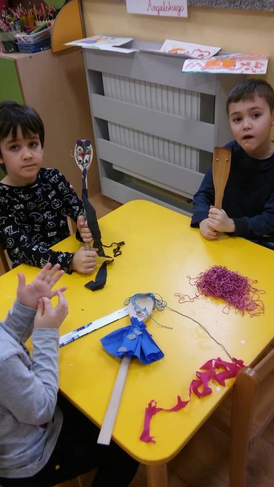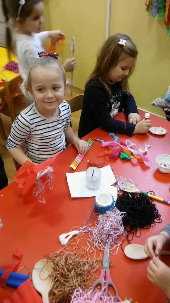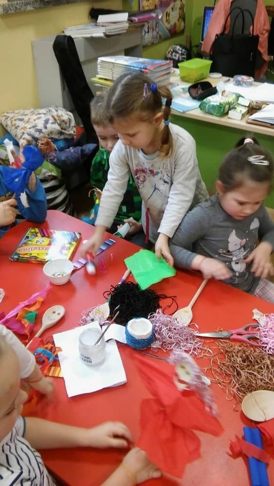 W dniach 12-14 lutego dziecięca wyobraźnia ruszyła pełną parą. W ruch poszły drewniane łyżki, krepina, bibuła, włóczka, nożyczki i kleje. Choć własnoręczne wykonanie lalki było dla wielu sporym wyzwaniem, to efekty końcowe nagrodziły dziecięcą pracę. Każdy stworzył niepowtarzalną kukiełkę, która otrzymała imię i wiele ról do odegrania podczas zabaw w teatrzyk.