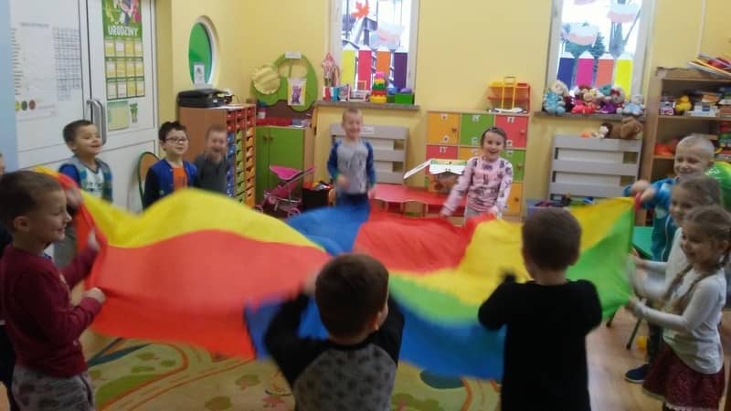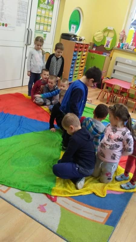„Pracowite pszczółki” postanowiły przegonić nudę bawiąc się popołudniami kolorową chustą animacyjną. Zabaw było co niemiara, we wszystkich dzieci chętnie brały udział.