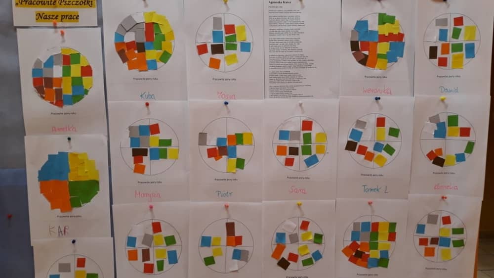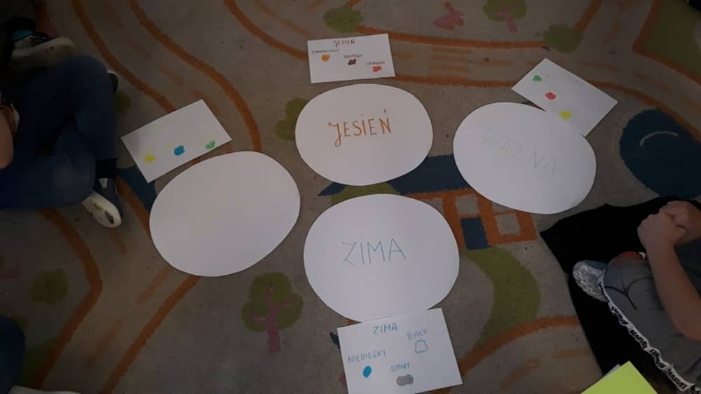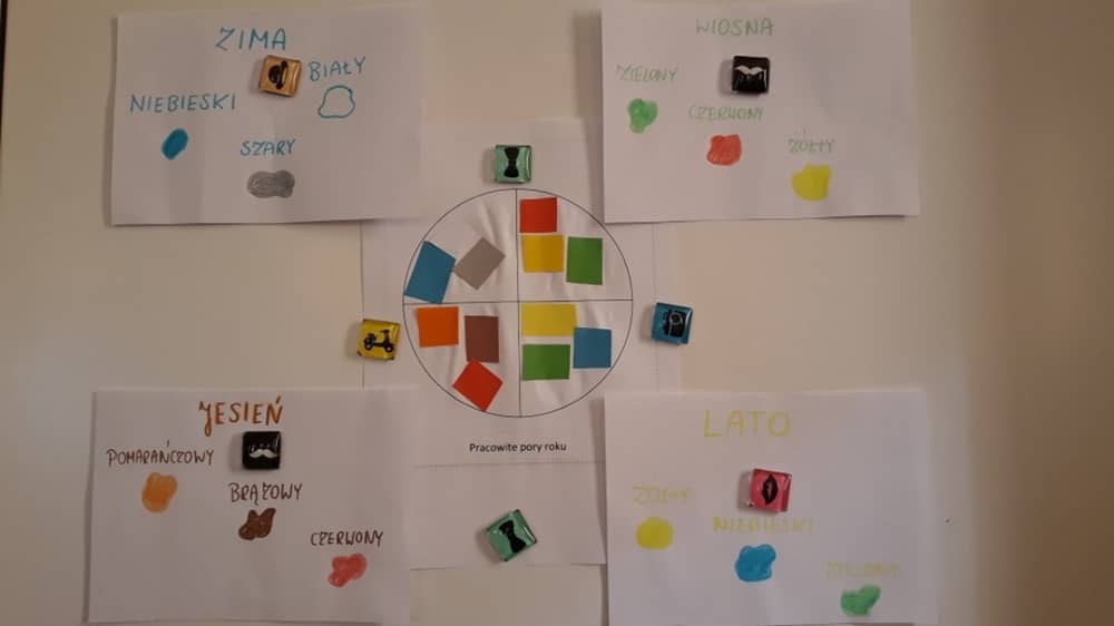 W ramach zajęć dzieci poznały nie tylko wiersz pt. „Pracowite pory roku”, ale także pracowały w oparciu o obrazy i reprodukcje. Dzieci zapoznane zostały z barwami wszystkich pór roku i wykonały prace plastyczną zgodnie z wskazówkami nauczyciela. Zabawy ruchowe połączone z improwizacją ruchową były atrakcyjnym dodatkiem do aktywności dzieci. Dzieci mogły na zajęciach wysłuchać wiersza w wersji audio- recytacji nagranej przez Panią Agatę Lewicką.