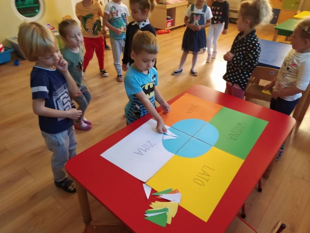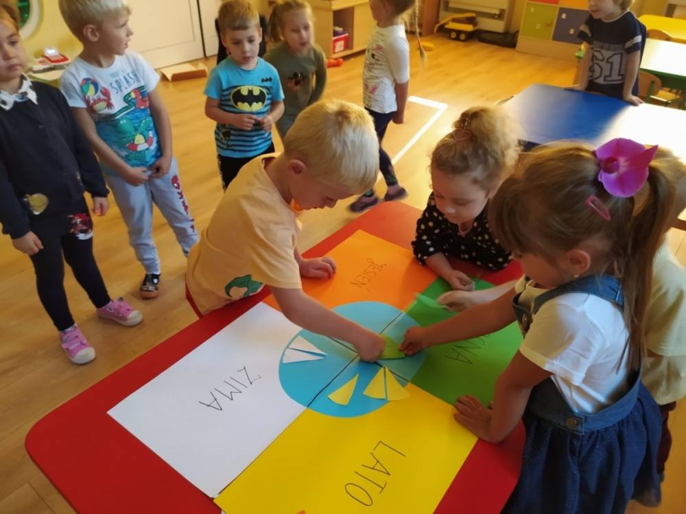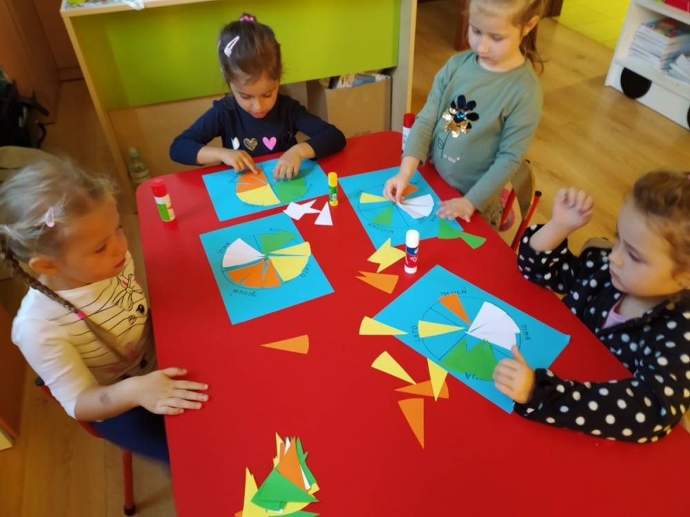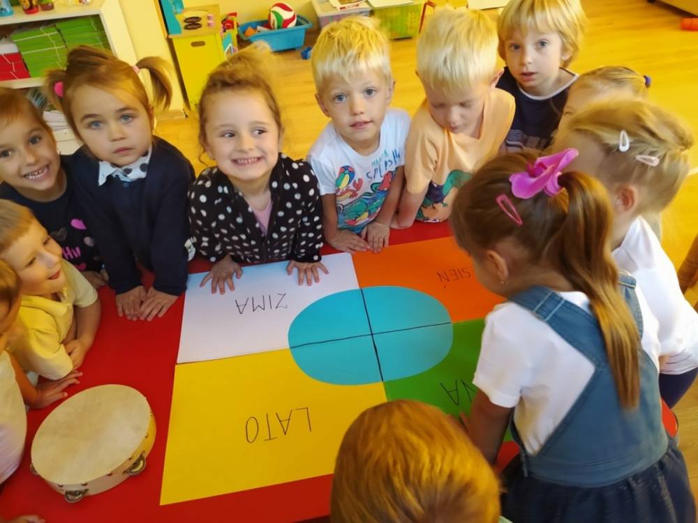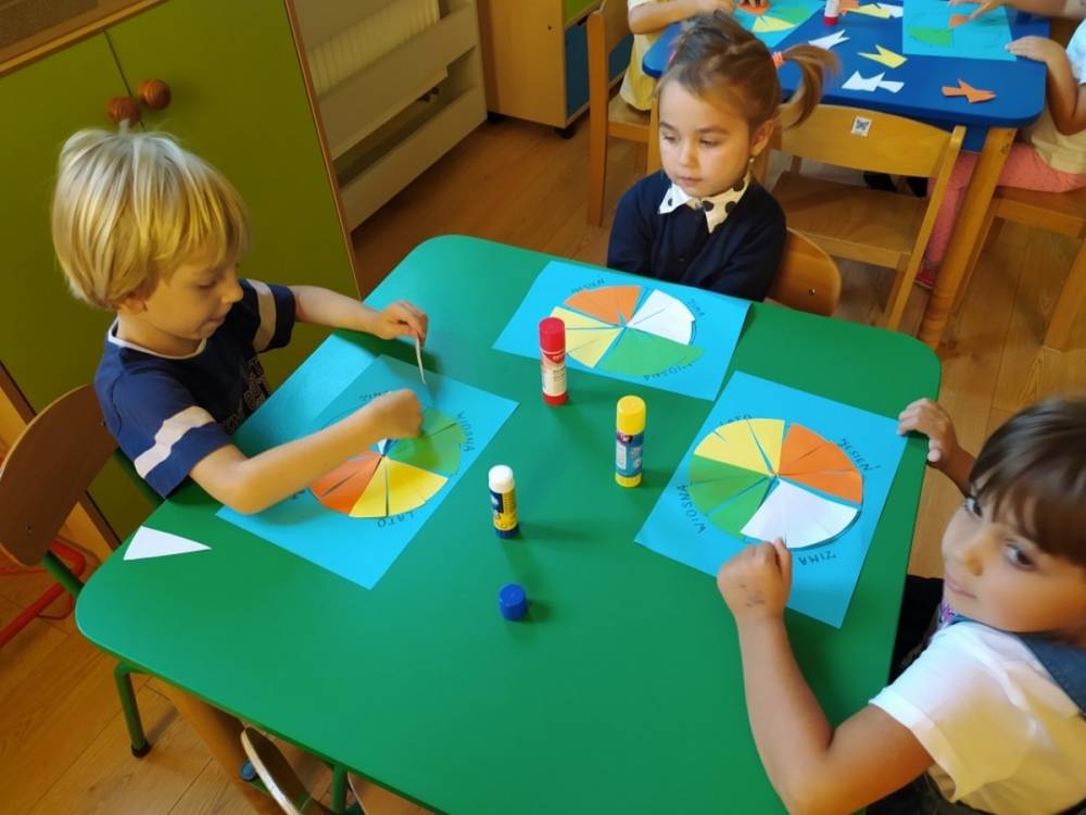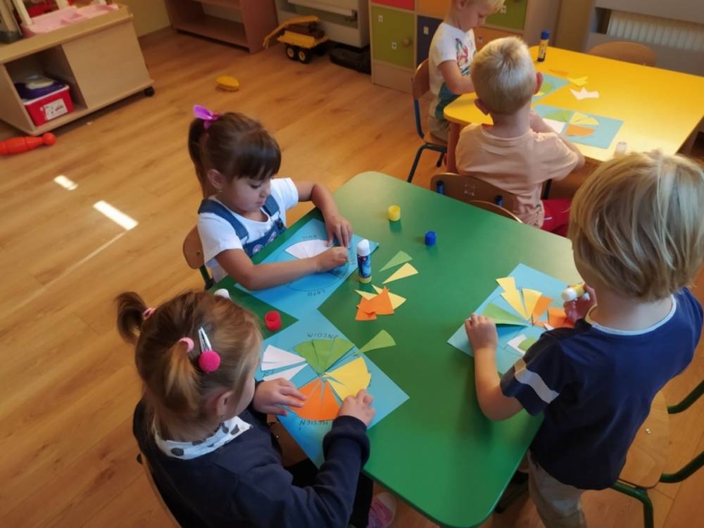 W grupie „Pracowitych Pszczółek” w dniu 23.09.2020, przeprowadzone zostały zajęcia w ramach programu „Przyroda to przygoda”, którego autorką jest Nauczycielka Agnieszka Karcz. Program ten realizuje nie tylko treści przyrodnicze, ale także zawiera 11 autorskich wierszy i zabaw ruchowych, które mają na celu rozwijać zainteresowania czytelnicze i sprawność ruchową dzieci. W ramach zajęć, dzieci zostały zapoznane z wierszem pt. „Pracowite pory roku”. Piękno zmieniających się pór roku oraz charakterystyczne dla nich elementy przyrody i barwy stały się inspiracją do zabaw ruchowych oraz prac plastycznych. Dzieci poznały także obrazy wielkich mistrzów malarstwa, które poświęcone były tej tematyce.