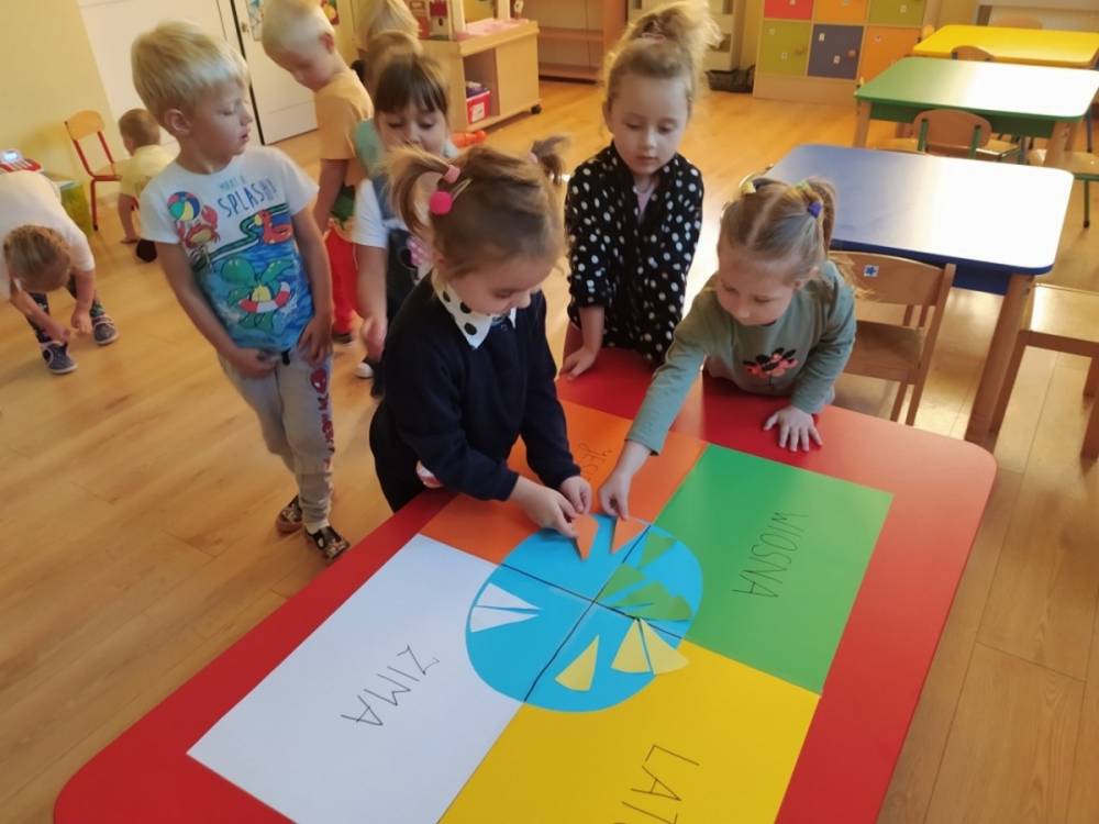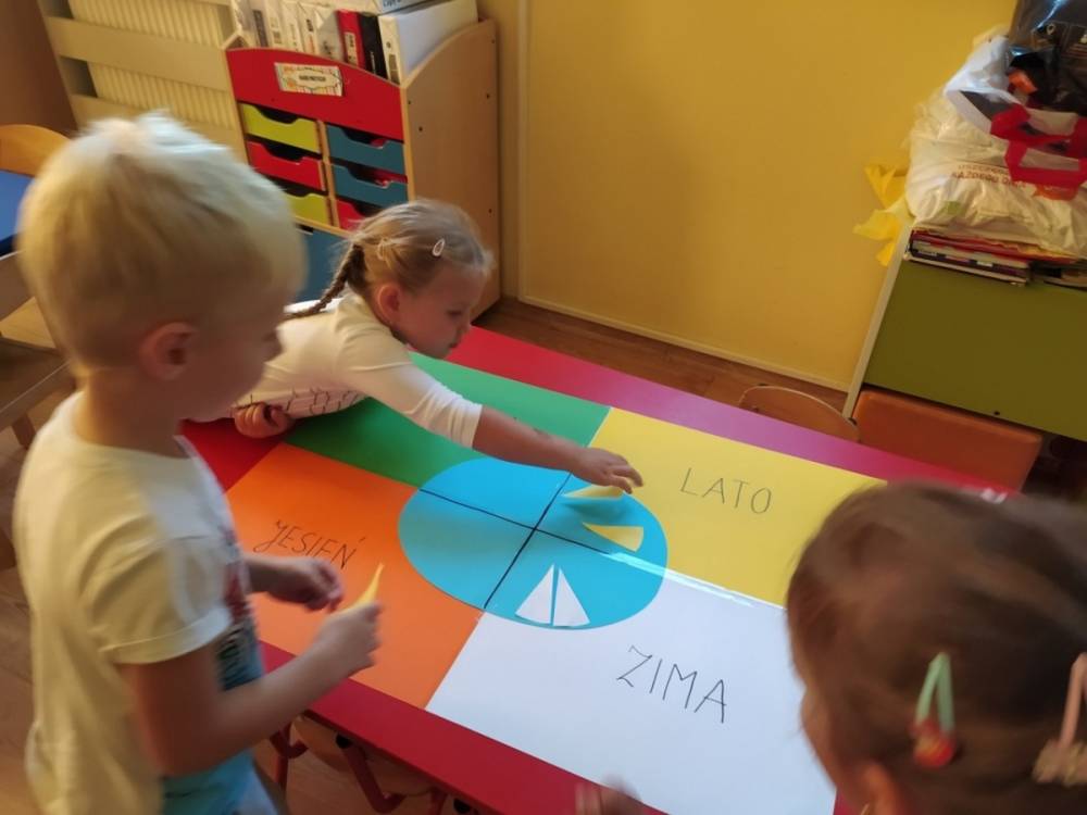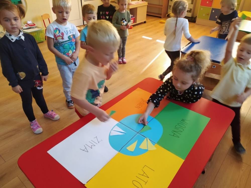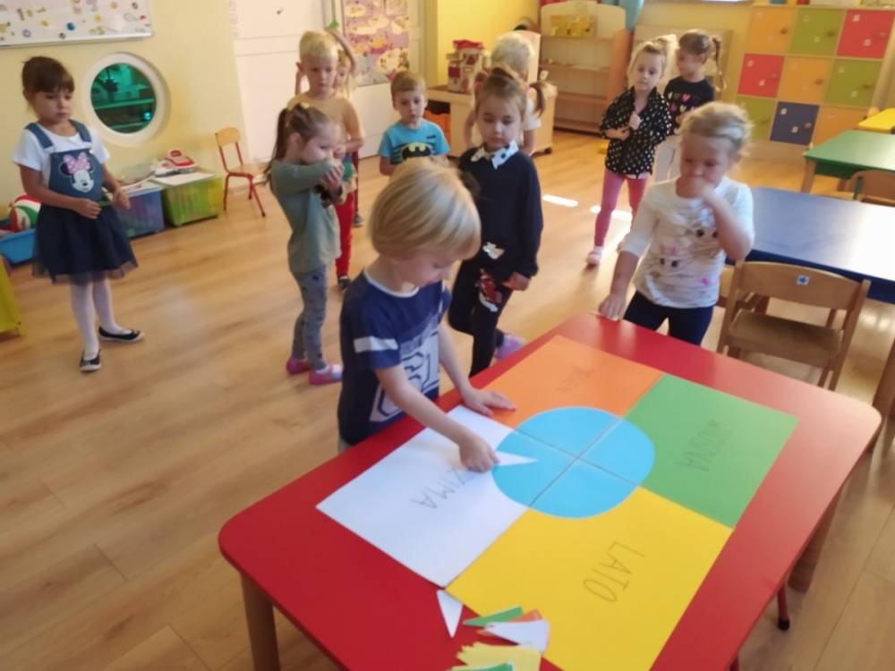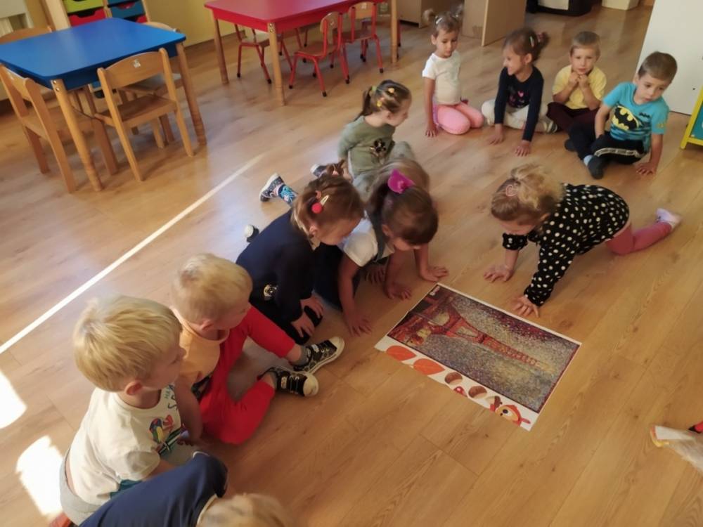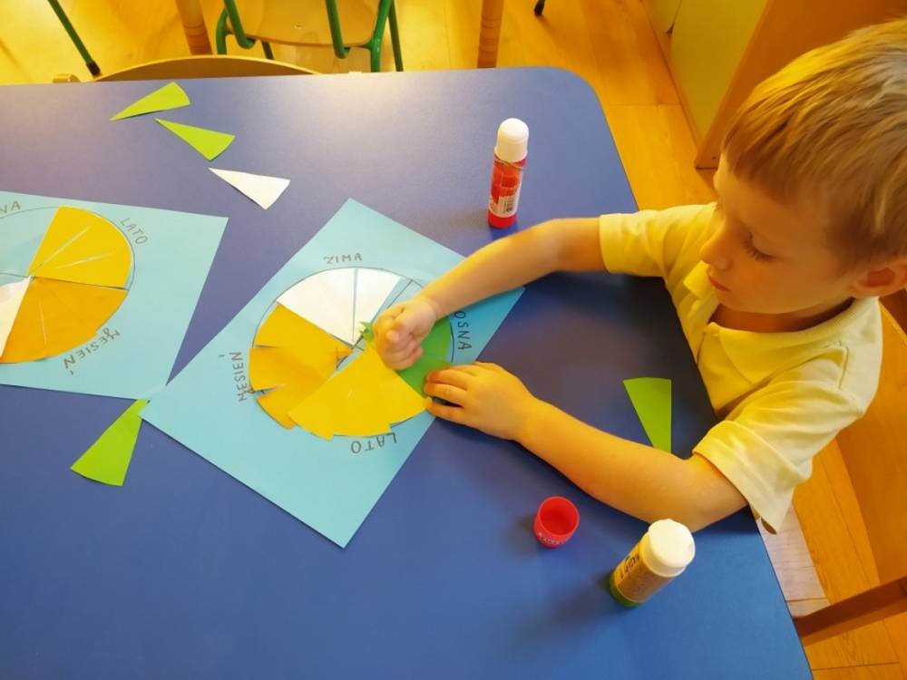 W grupie „Pracowitych Pszczółek” w dniu 23.09.2020, przeprowadzone zostały zajęcia w ramach programu „Przyroda to przygoda”, którego autorką jest Nauczycielka Agnieszka Karcz. Program ten realizuje nie tylko treści przyrodnicze, ale także zawiera 11 autorskich wierszy i zabaw ruchowych, które mają na celu rozwijać zainteresowania czytelnicze i sprawność ruchową dzieci. W ramach zajęć, dzieci zostały zapoznane z wierszem pt. „Pracowite pory roku”. Piękno zmieniających się pór roku oraz charakterystyczne dla nich elementy przyrody i barwy stały się inspiracją do zabaw ruchowych oraz prac plastycznych. Dzieci poznały także obrazy wielkich mistrzów malarstwa, które poświęcone były tej tematyce.