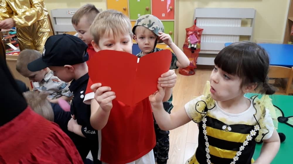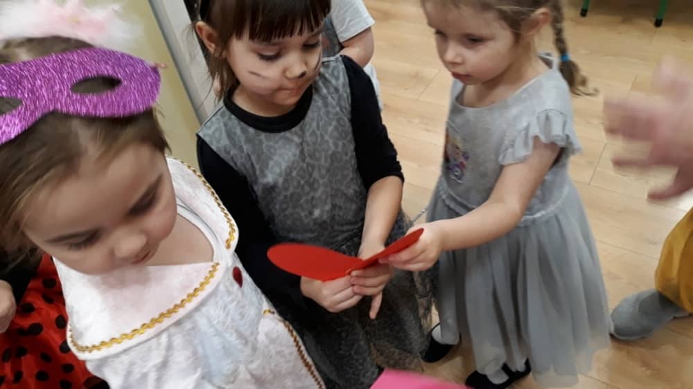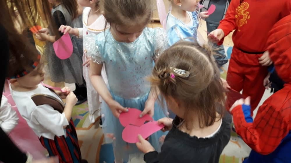 W dniu 14.02.2020 w naszym przedszkolu odbył się wspaniały bal karnawałowy z udziałem „Tygrysków” i „Pracowitych Pszczółek”. Sala przystrojona została sercami, gdyż 14 lutego był jednocześnie dniem wszystkich zakochanych. Dzieci bawiły się w rytm wesołych i tanecznych piosenek. W ramach zabawy karnawałowej zrealizowano także scenariusz z Akcji „Zdrowo i Sportowo” zatytułowany „Walentynki”. Zabawy i zadania ruchowe idealnie wpasowały się w bal. Oczywiście nie zabrakło wspaniałych strojów, nastrojów i pamiątkowych zdjęć. Na zakończenie słodkości przygotowane przez rodziców uradowały wszystkie dzieci.