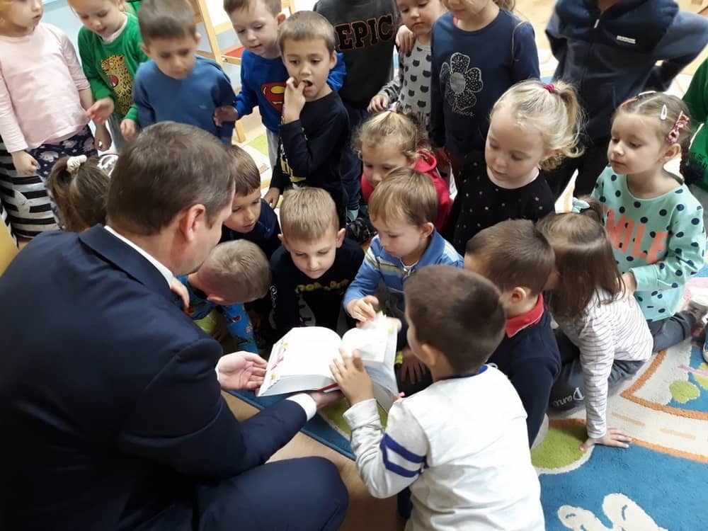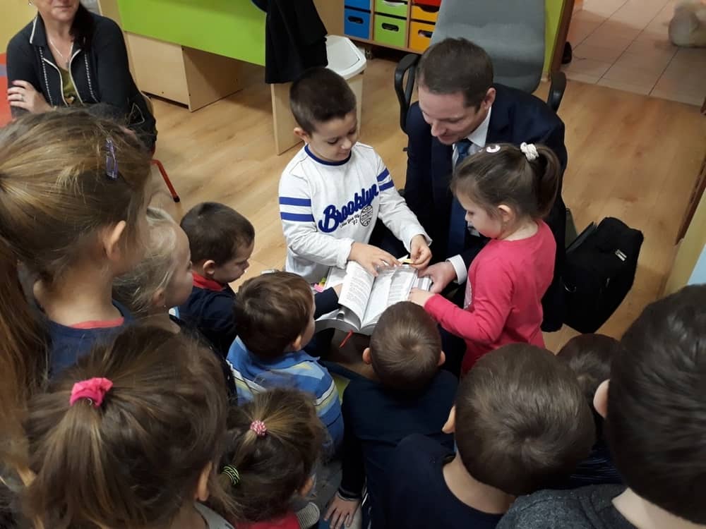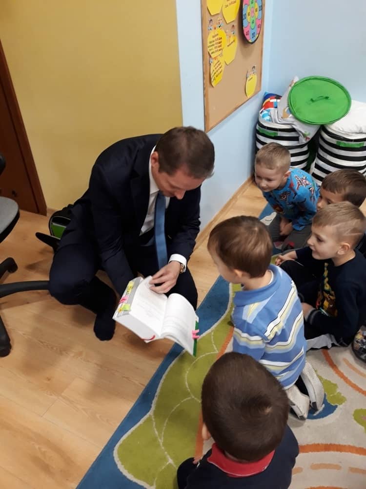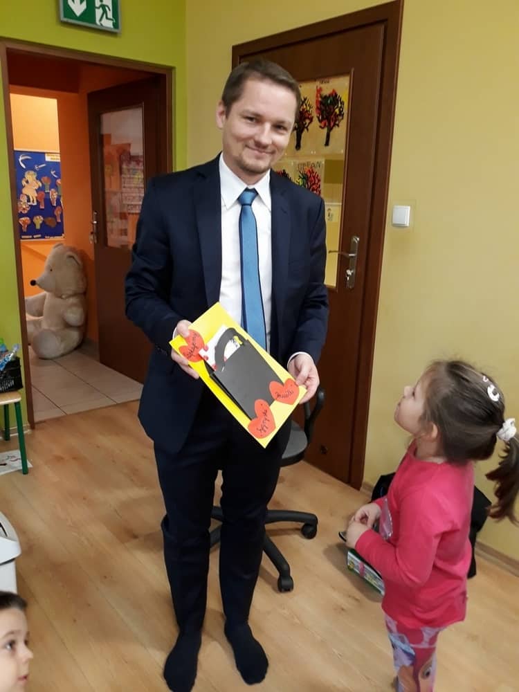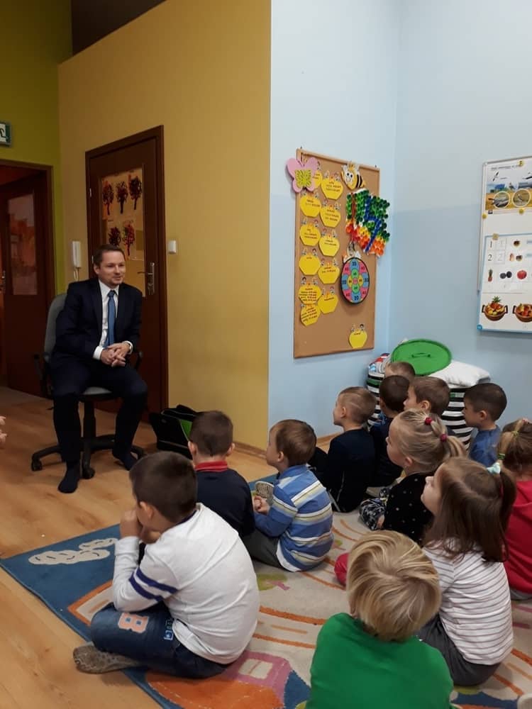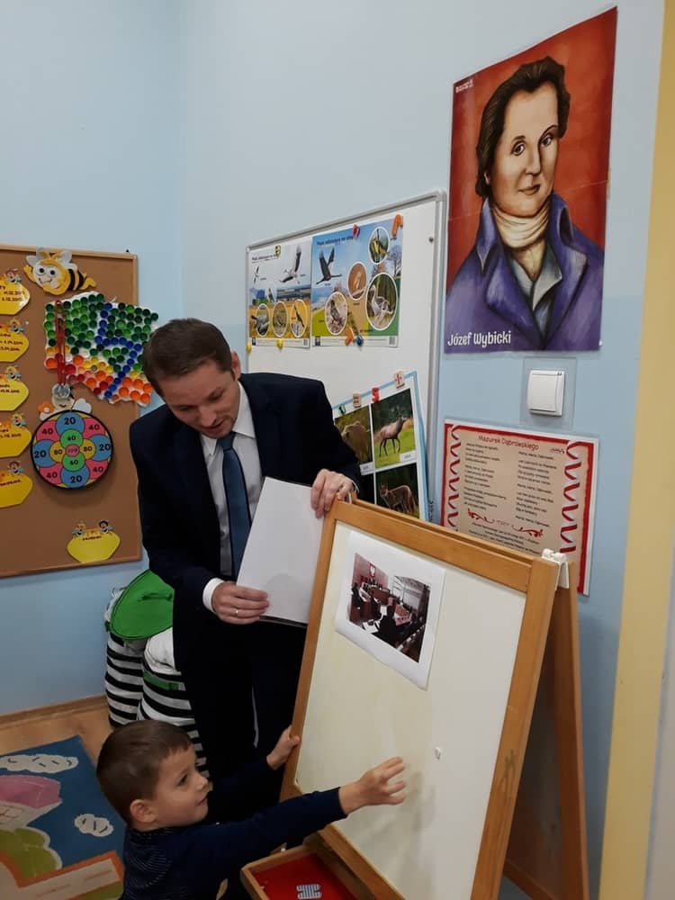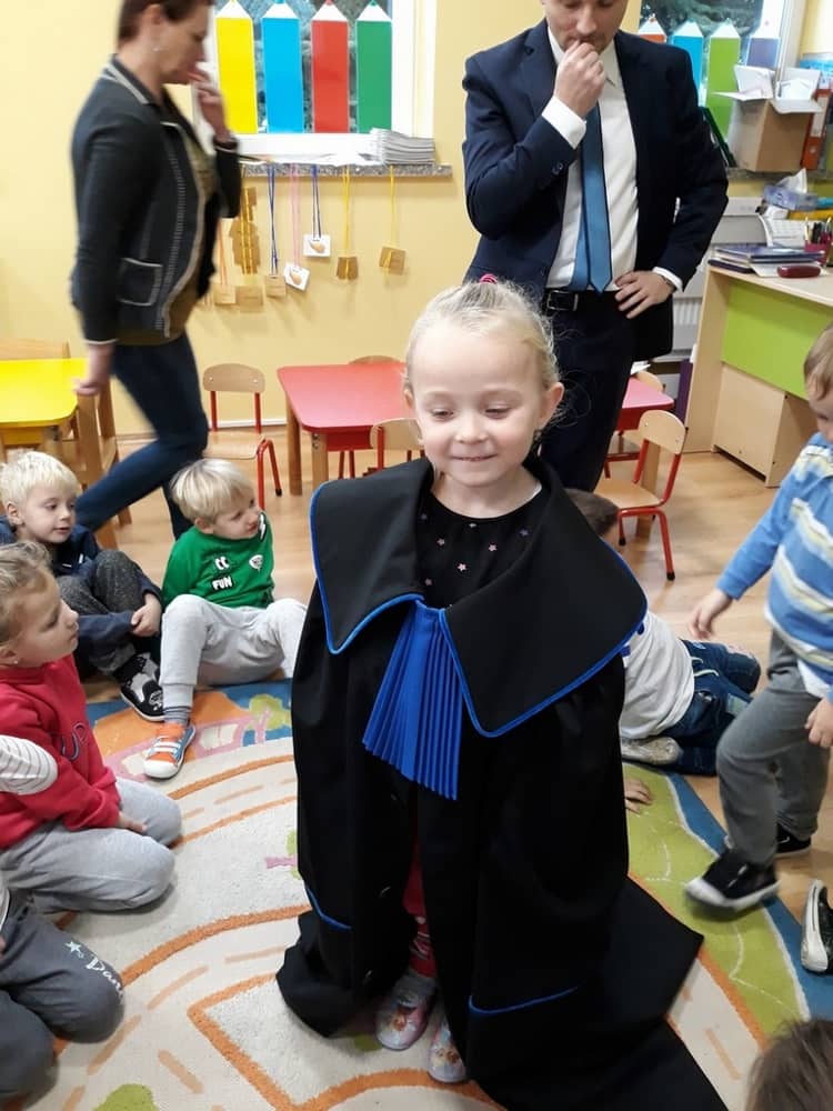 W dniu 25.10.2018 w naszym przedszkolu gościliśmy kolejnego Rodzica, który zaprezentował i zapoznał dzieci z wykonywanym przez siebie zawodem radcy prawnego. Pan prawnik opowiedział dzieciom m.in., co to są umowy i jakie konsekwencje ponosi ktoś, kto nie dotrzymuje danego słowa. Dzieci oglądały różne atrybuty związane z zawodem prawnika. Z zaciekawieniem przyglądały się księdze prawniczej pełnej przepisów, które musi znać każdy radca prawny. Największym zainteresowaniem wśród dzieci cieszyła się toga. Odważne „Tygryski” i „Pszczółki” chętnie przymierzały strój prawnika. Serdeczne podziękowania należą się naszemu Gościowi za zaangażowanie i przybliżenie dzieciom odpowiedzialnej pracy organów prawa.